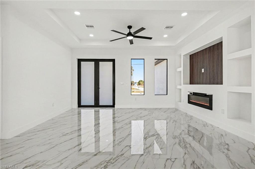 Not all new construction homes in Lehigh Acres are created equal. This upgraded corner residence stands apart from typical builder-grade options, featuring a striking designer fireplace wall, custom wood closets in all three bedrooms, and elevated finishes rarely found in this price range.
