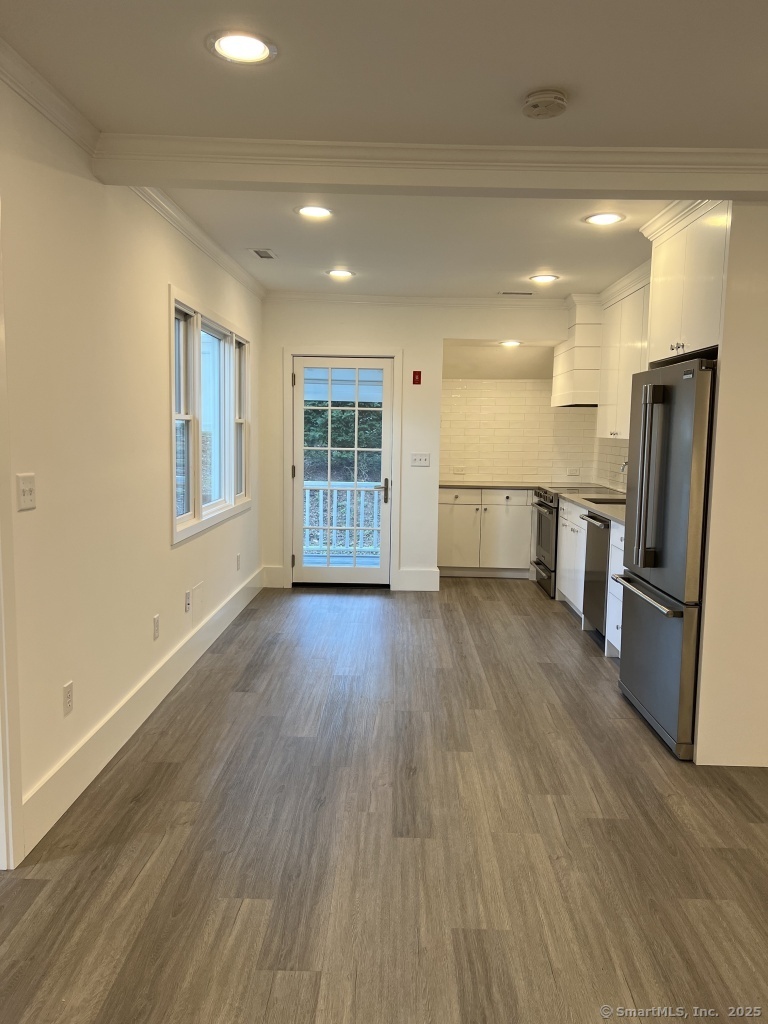 Light, bright, quiet renovated cottage tucked away at rear of 693 Post Road property. Open floor plan with updated kitchen and bath as well as washer/dryer. Walk to downtown, shopping, restaurants, RR, Farmers Market, Cherry Lawn and Tilley Pond Parks. Lease application, Credit Check. Soft Screen Application and references required. Tenant pays one months rent + two months Security Deposit upon lease signing and is responsible for all utilities: heat (propane), electric, cable / internet, and security system. No smoking, no parties. Pet Restrictions. Owner reserves right to meet applicant.