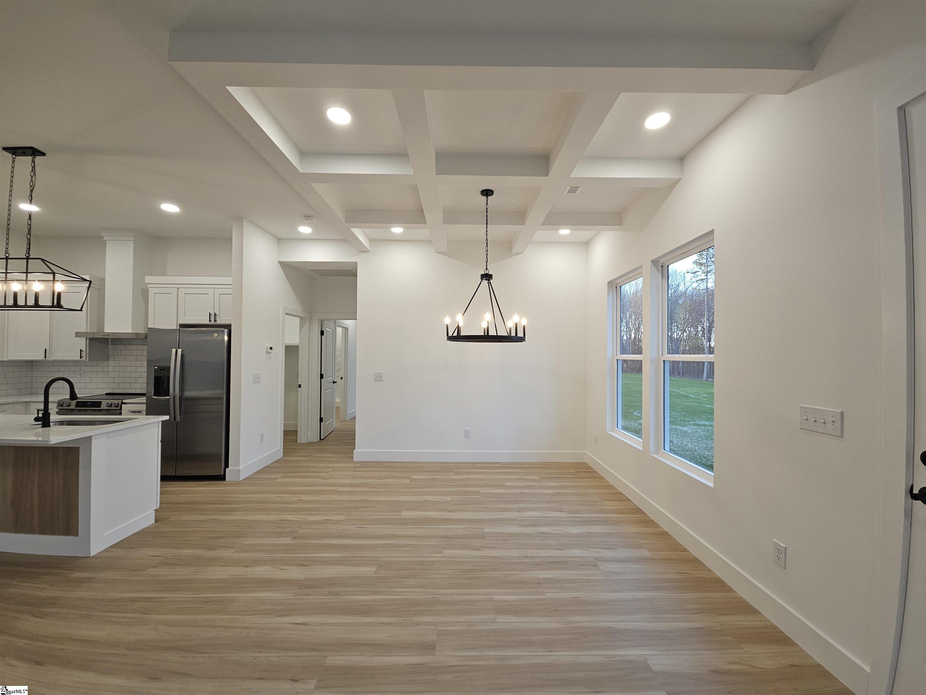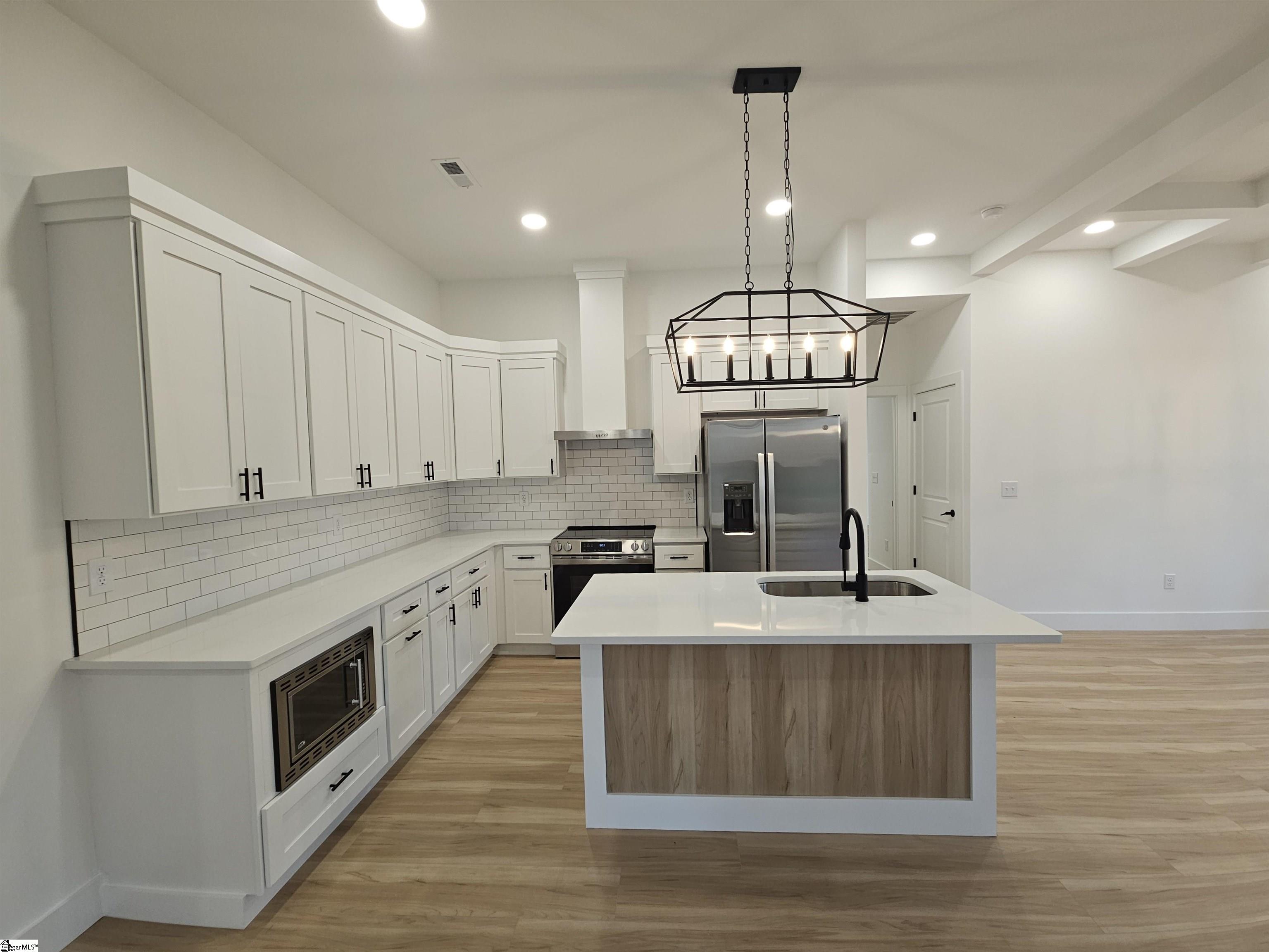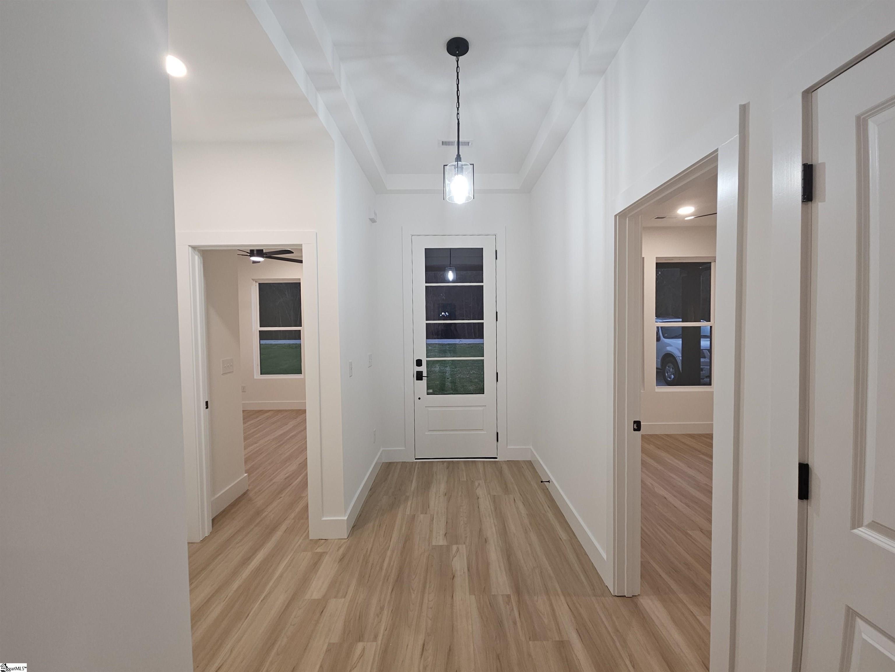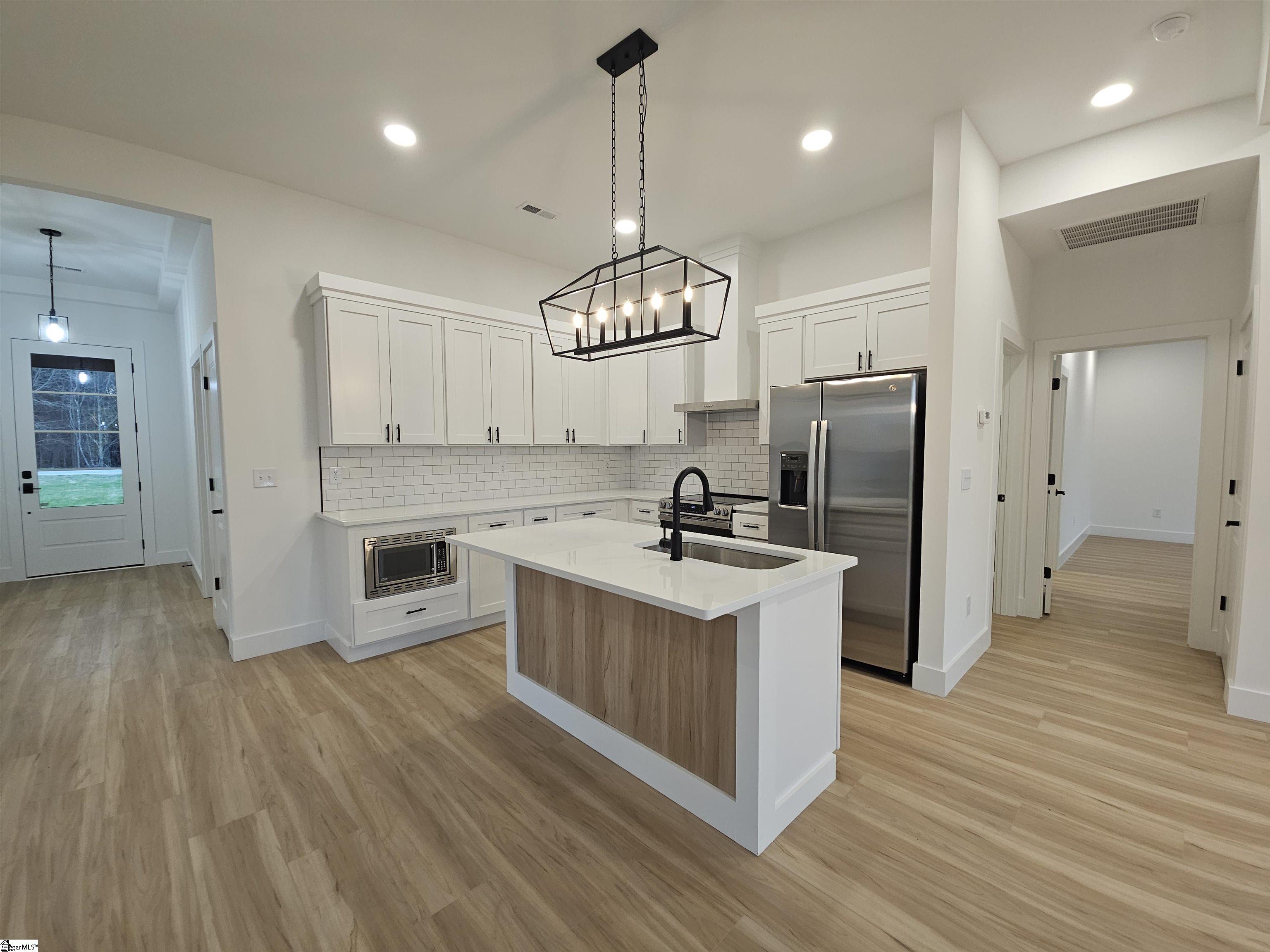 Check out this new construction home! You’ll enjoy the open concept living and split bedroom plan. This home boasts nine-foot ceilings, recessed lighting, and luxury vinyl plank flooring throughout. The kitchen offers stainless steel appliances, quartz countertops, and a subway tile backsplash. You can sit at the island for extra seating and entertainment. This home offer split bedroom plan. Owner suite offers a with a walk-in closet, a private master bath with a walk-in shower, and a water closet. Bedroom size can easily accommodate king size furniture. Secondary bedrooms are large in size with double door closets. Great storage in this home! Covered back porch over looks the private wooded yard. NO HOAs!!