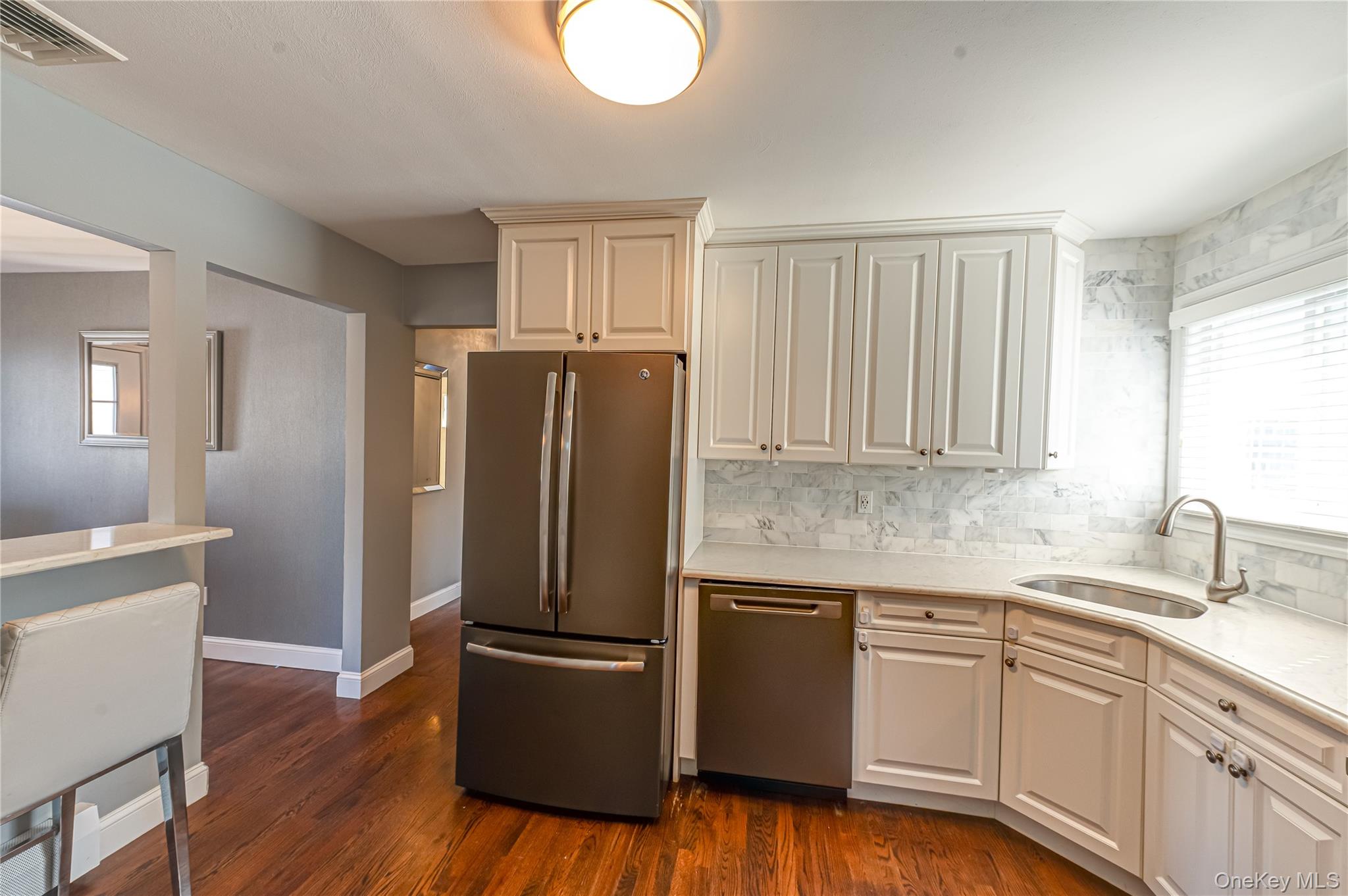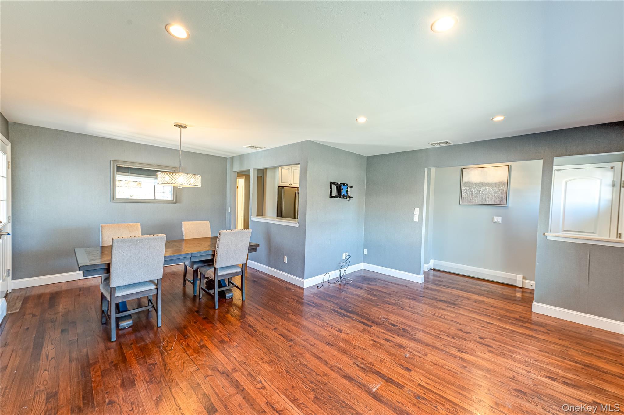 Beautifully maintained whole-house rental located just moments from Merrick's Main Street, the LIRR, and major parkways making commuting and everyday errands effortless. The home was completely renovated in 2019 and offers a bright, modern layout with quality finishes throughout. The main level features hardwood floors, a stylish kitchen with a peninsula island, and stainless steel appliances. This home offers three bedrooms and two full bathrooms, providing comfortable living space for a variety of lifestyles. The fully finished basement expands the living area and includes a large recreation space, a full bathroom, a private office or additional room, and a dedicated dining area perfect for entertaining, working from home, or extended living needs. Tenant is responsible for gas, electric, water, and irrigation. Convenient location, modern updates, and flexible living space make this Merrick rental a standout opportunity.