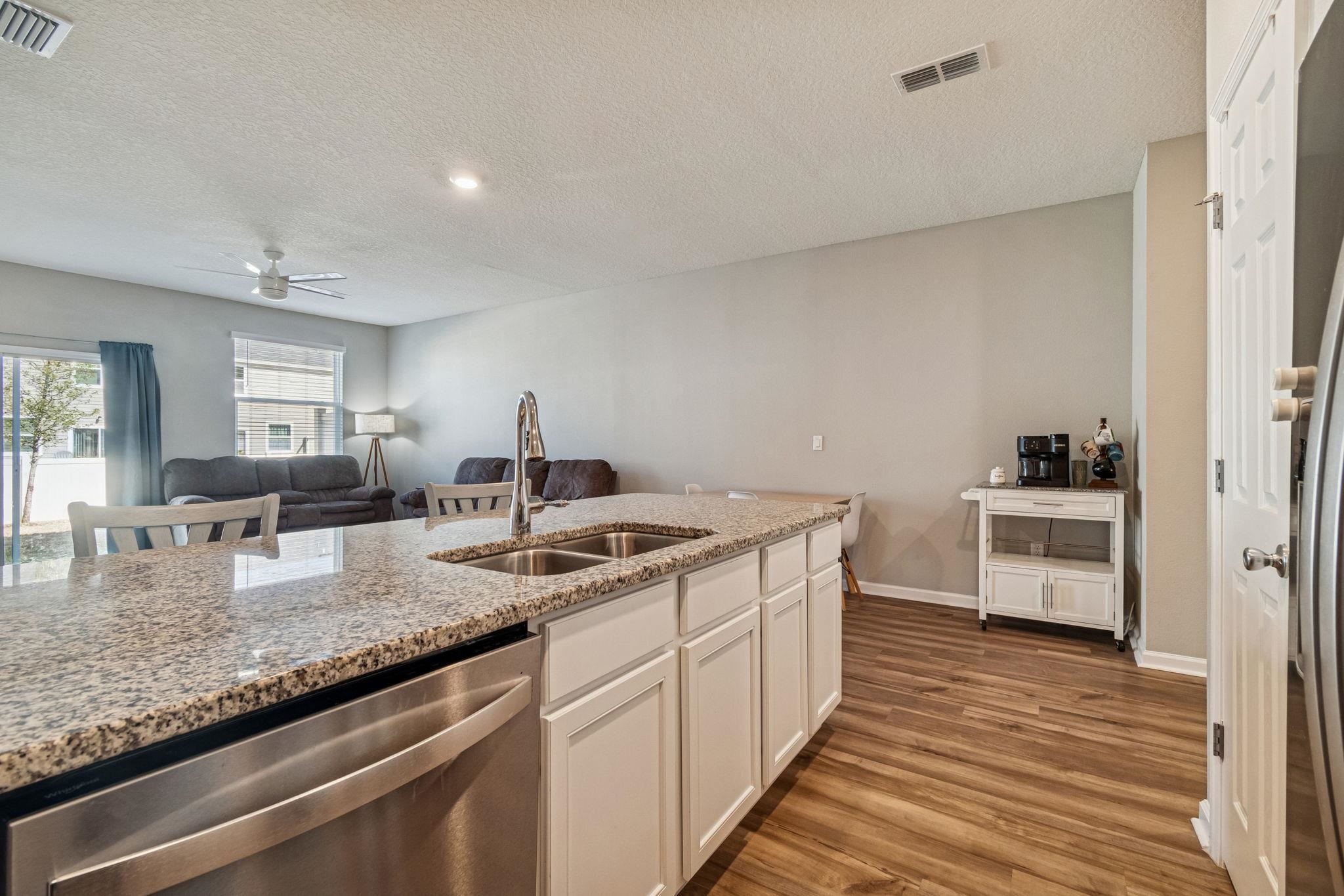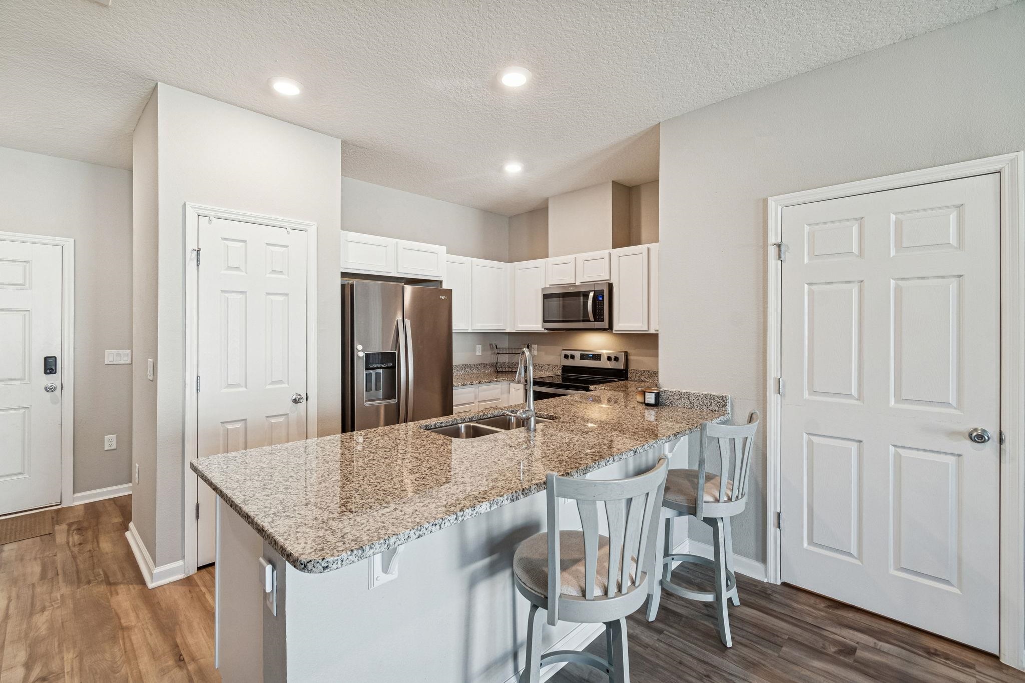 Built in 2022, this well-maintained two-story townhome offers 3 bedrooms, 2. 5 bathrooms, and a one-car garage in a convenient St. Augustine location. The first floor features an open-concept layout with durable vinyl flooring, granite countertops, stainless steel appliances (refrigerator, dishwasher, microwave & range), and a convenient half bath for guests. The kitchen flows seamlessly into the main living area, creating functional everyday living and entertaining space. Upstairs, you’ll find all three bedrooms and two full bathrooms, along with carpeted flooring throughout the second level. The primary suite offers privacy and comfort, while two additional bedrooms provide flexibility for guests, family, or a home office. A sliding glass door leads to a rear patio area, ideal for outdoor relaxation. The community offers low HOA fees and includes a playground. Conveniently located near historic downtown St. Augustine, shopping, dining, area beaches, and with quick access to I-95, this home provides easy access to everything Northeast Florida has to offer.