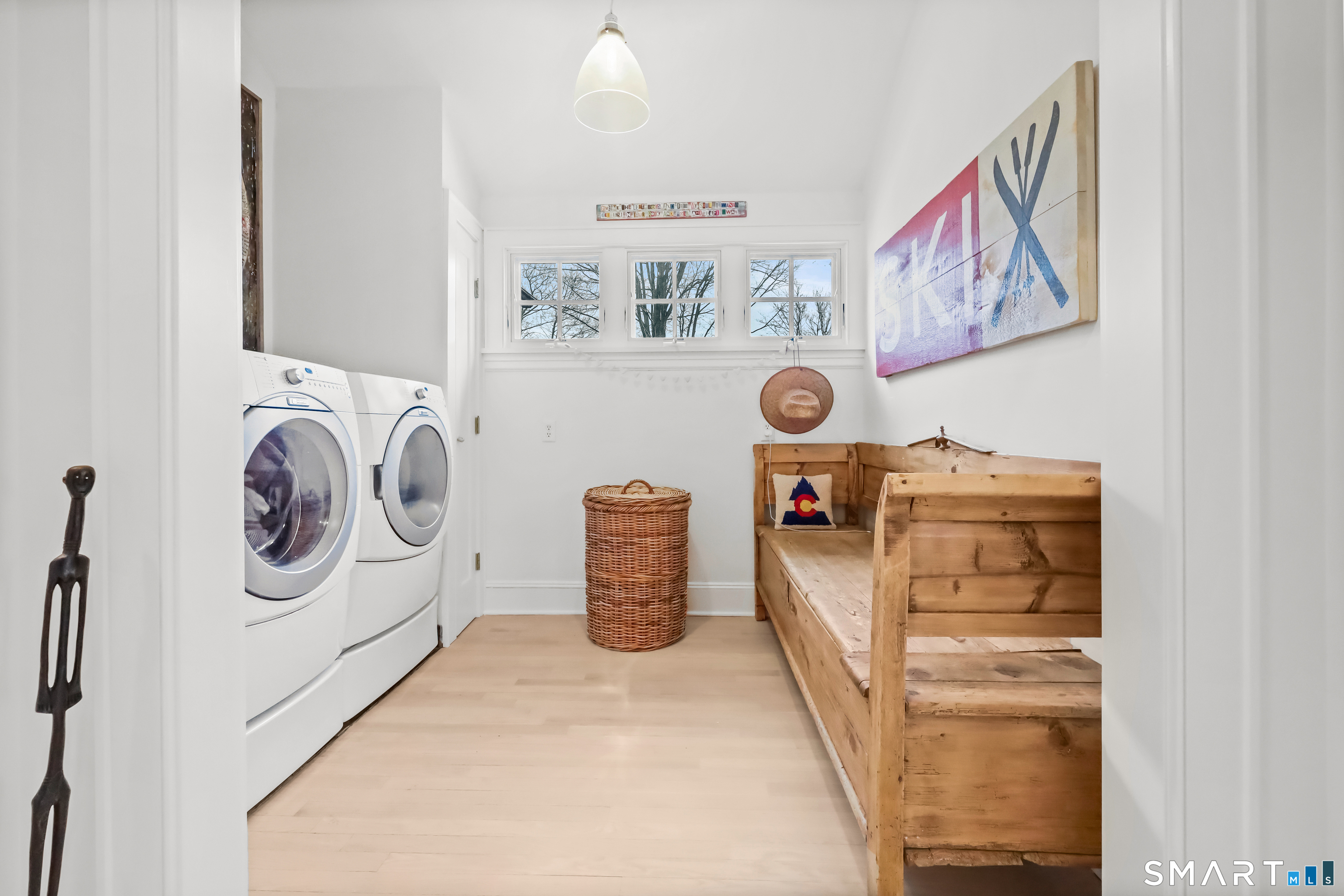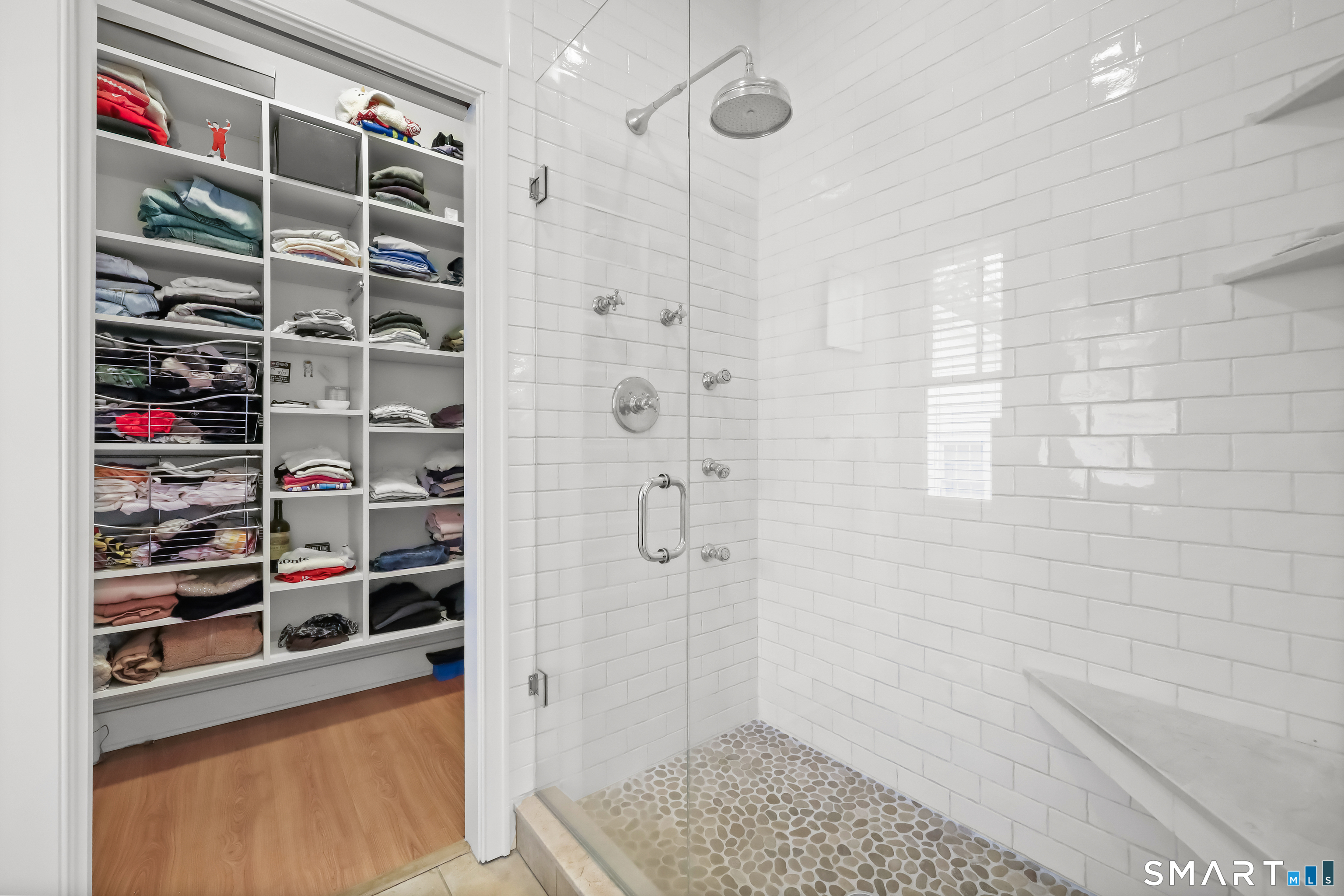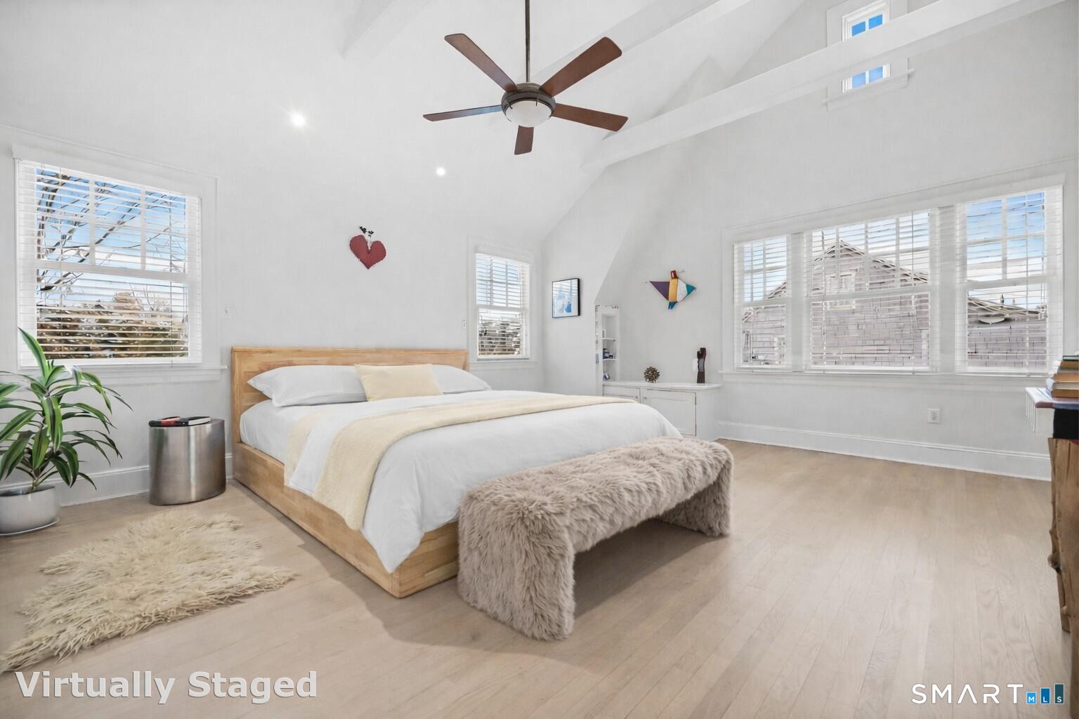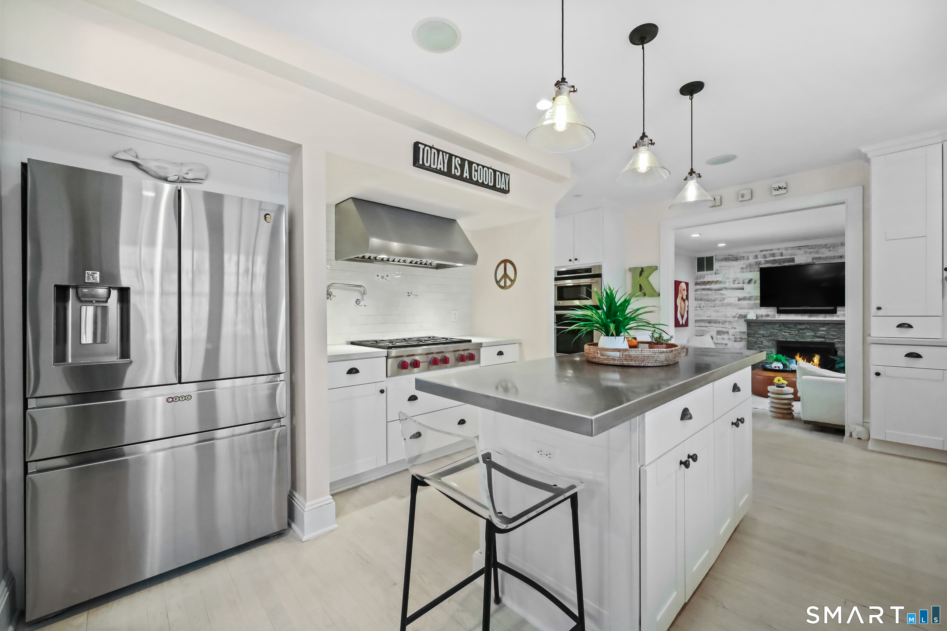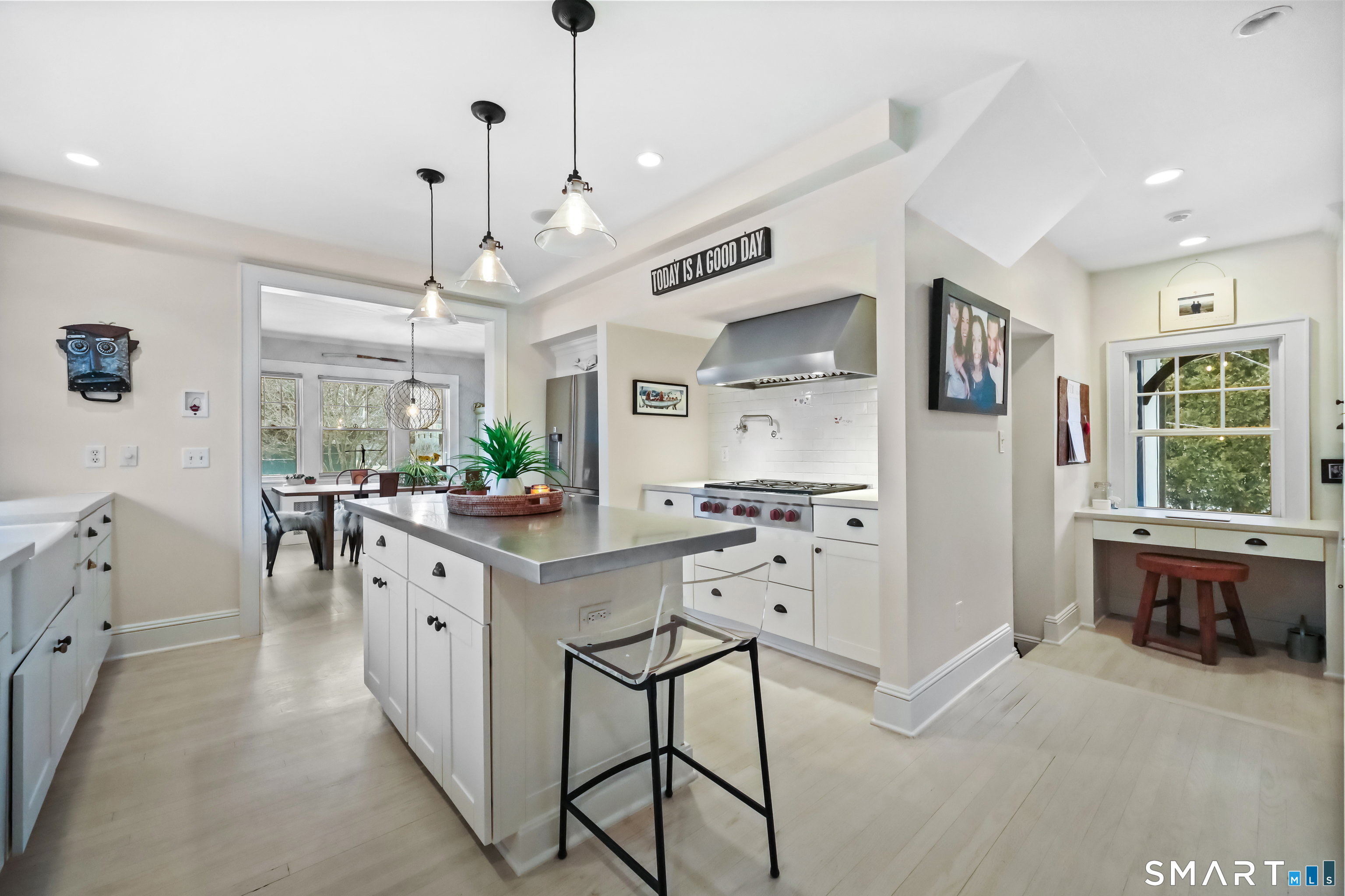 Nestled in Fairfield's highly sought-after University neighborhood, this exceptional home beautifully blends timeless vintage charm with a warm, modern aesthetic. Set on a private, arborvitae-lined property, the outdoor space features a stone patio and gas fire rock seating area. Inside, the inviting layout offers effortless flow and abundant natural light. The living room, anchored by a wood-burning fireplace and French doors to the patio, opens seamlessly to the dining room and sunny kitchen. The custom kitchen connects to a family room with soaring 10-foot ceilings & roaring stone fireplace. Spacious primary bedroom with vaulted ceilings, beams, bath with glass shower, soaking tub & walk-in closet is a lovely oasis. Guest room with ensuite bath & walk-in closet plus 2 additional bedrooms complete the 2nd level. 3rd level bonus area offers flexible space with 5th bedroom. The finished lower level provides versatility and extra living space. Additional amenities include, study, mudroom, 2 laundry rooms, irrigation system, 2 car garage and much more. Ideally located just minutes from vibrant Fairfield town center and train (1 mi), Beach (1. 3 mi), Marina (1. 1 mi), Tennis & golf. Waterfront community offering historic charm, dining, shopping, arts & 2 universities, just 50 miles from NYC.