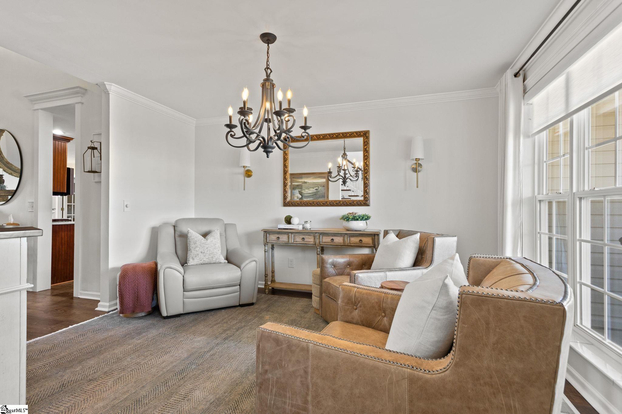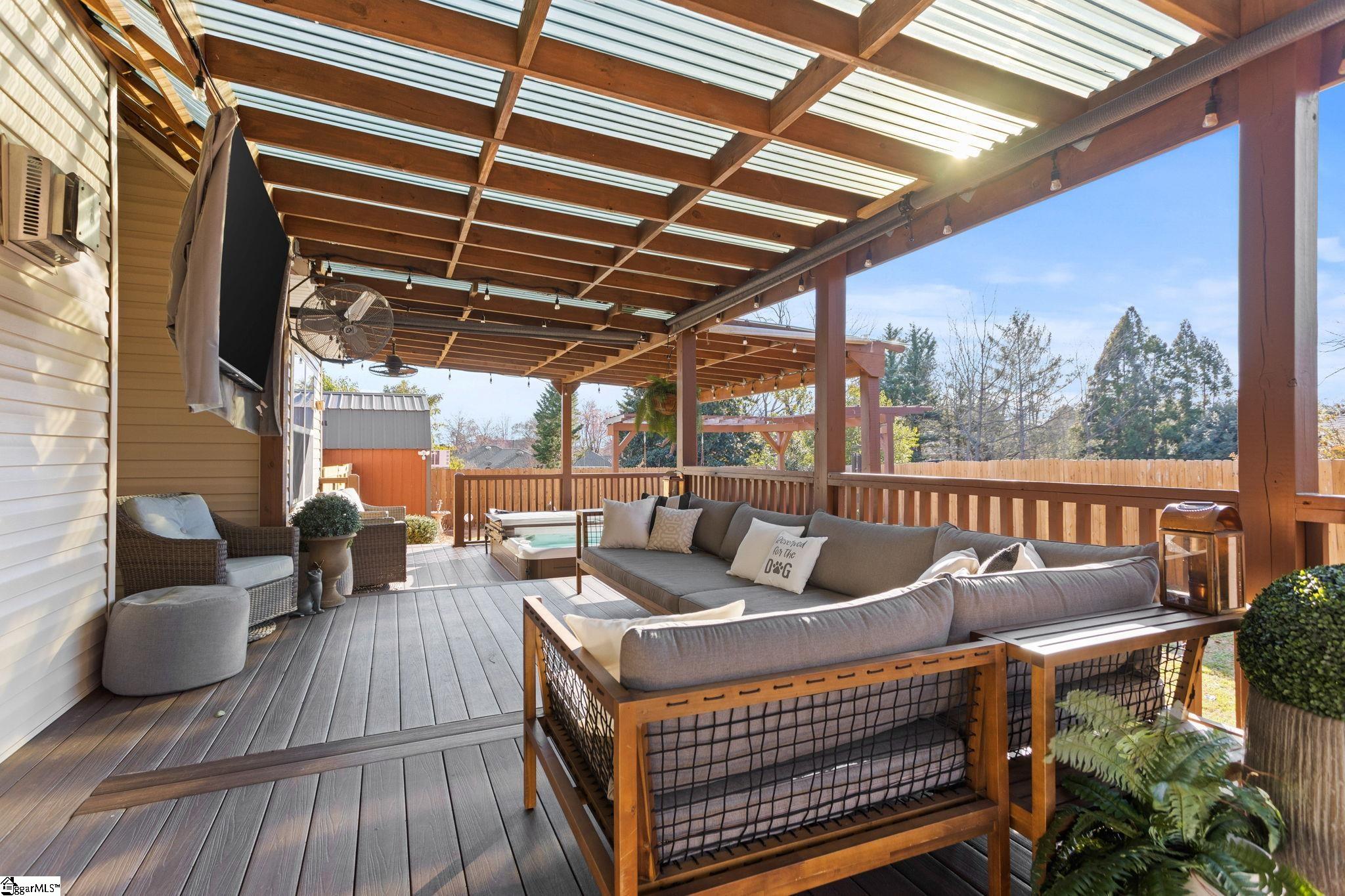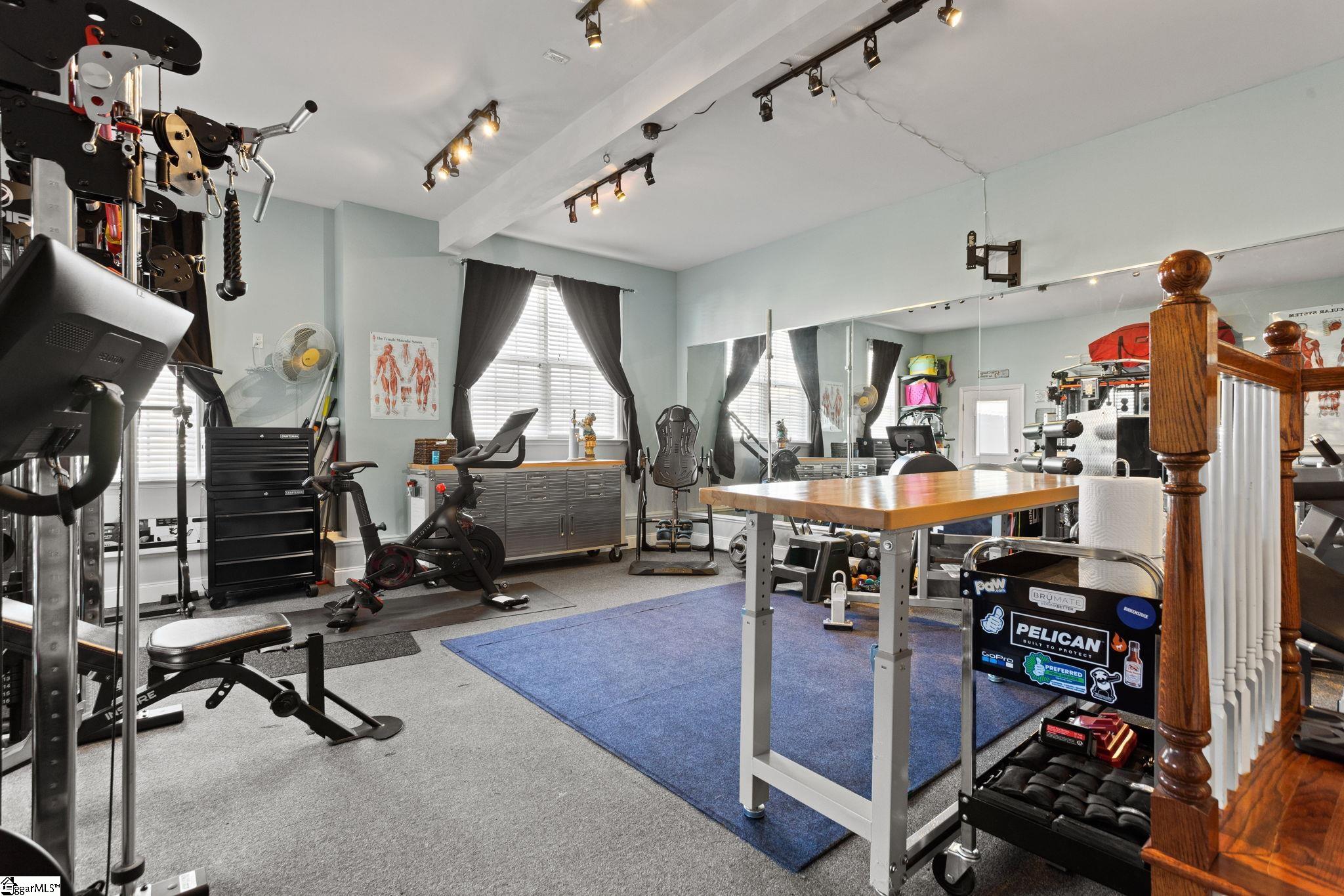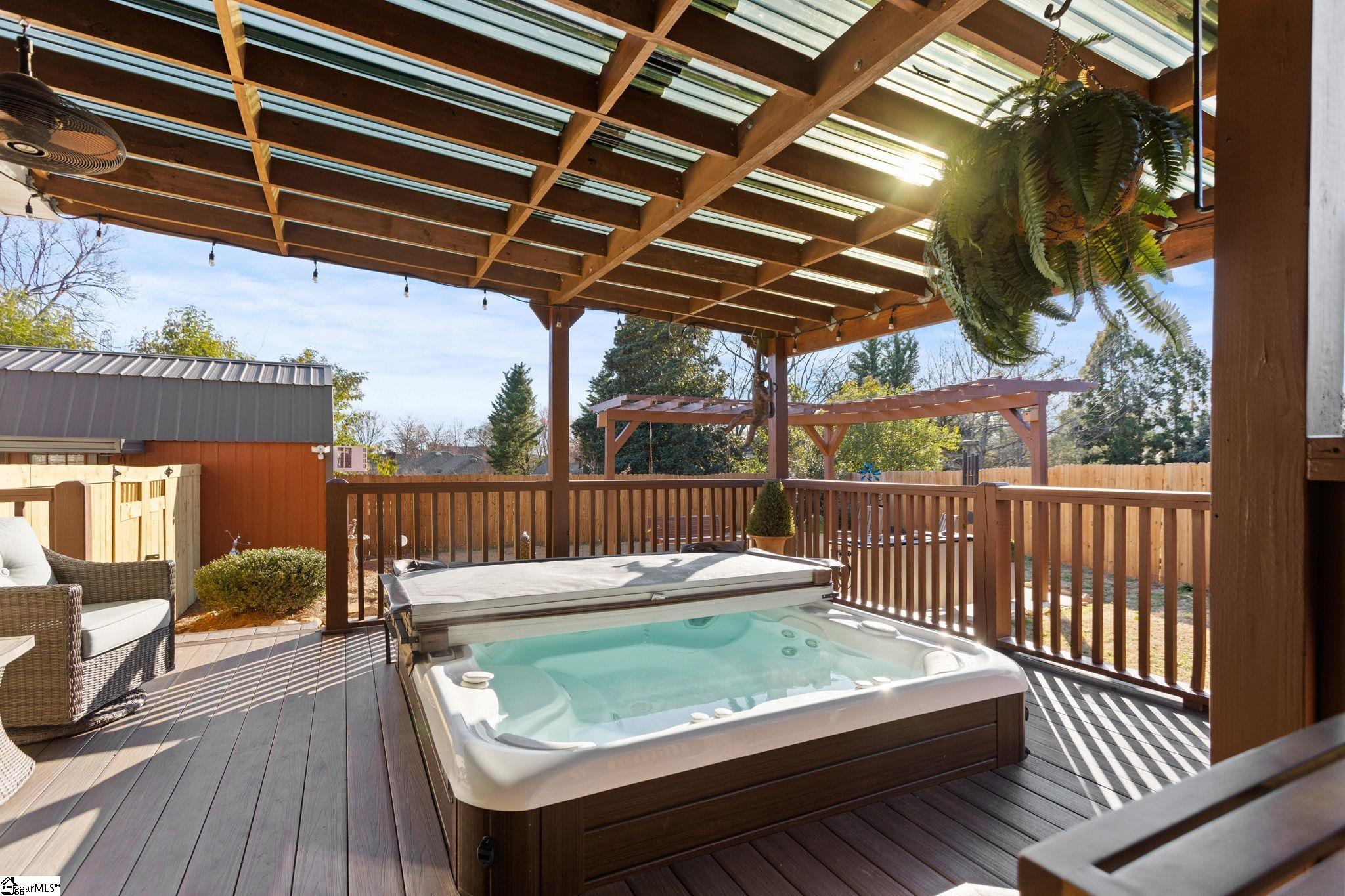 NO HOA! Fully Upgraded Move-In Ready Custom Home!! Everything has already been done for you in this beautifully upgraded home with major updates completed between 2023–2025. Blending modern style, smart technology, and quality improvements throughout, this home is truly move-in ready. The updated kitchen features stunning quartzite countertops, upgraded appliances, gas oven, microwave that doubles as a second oven, and under-cabinet lighting with optional app control. Shiplap accents add character, while waterproof LVP flooring downstairs and new carpet upstairs provide both durability and comfort. Offering 4 bedrooms and 3 full bathrooms, this home includes a primary suite on the main level plus a second main-floor bedroom—ideal for guests or multi-generational living. The spacious primary bath features a luxurious 6-foot Jacuzzi tub with a new jet pump. Major system upgrades include a complete home re-plumb with PEX piping (2025), tankless water heater, new HVAC (2024–2025), new roof (2025), and encapsulated crawlspace for added peace of mind. The garage has been enclosed and insulated to create a large fitness room with its own HVAC wall unit, but can easily be converted back to a 2-car garage. Enjoy outdoor living with front and back porches with ceiling fans, updated exterior lighting, a Trex deck with gazebo and sunken hot tub, and a spacious fenced backyard. Two large storage sheds offer incredible flexibility—one includes plumbing, electricity, a private entrance, and its own courtyard, perfect for a workshop, hobby space, or studio. Conveniently located just minutes from the Swamp Rabbit Trail and Laurens Road shopping. A rare find with extensive upgrades and NO HOA! Award winning schools!!
