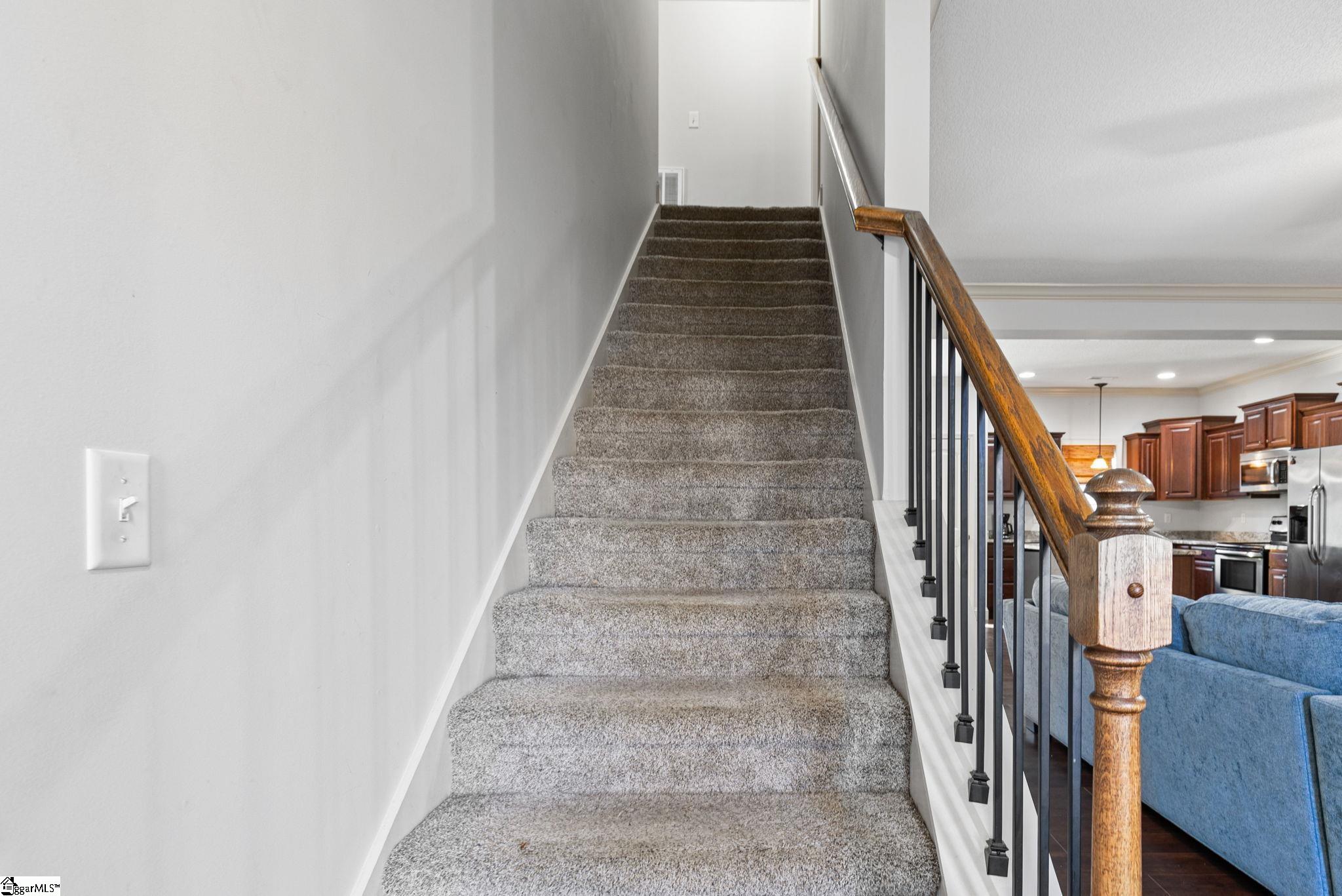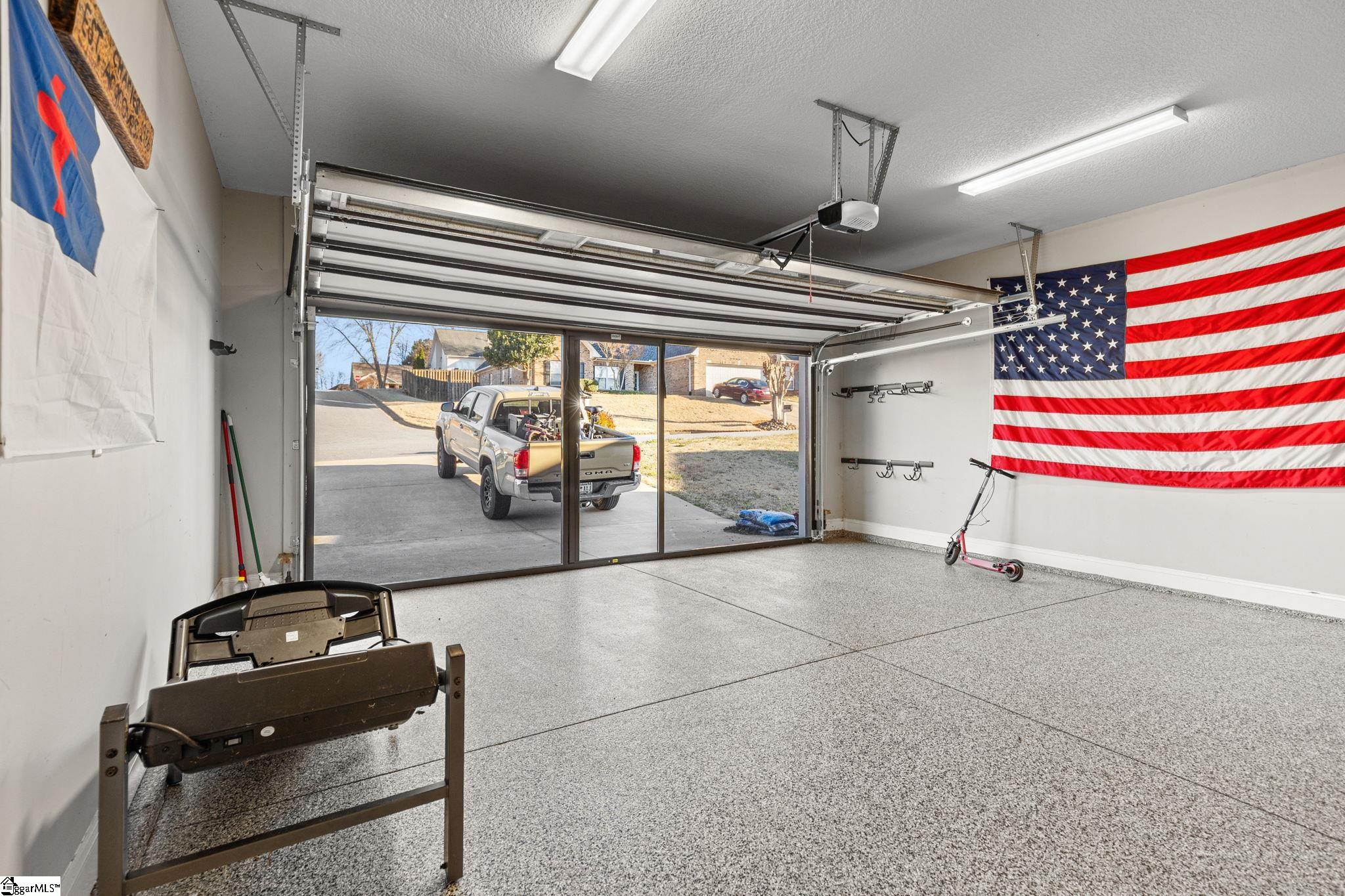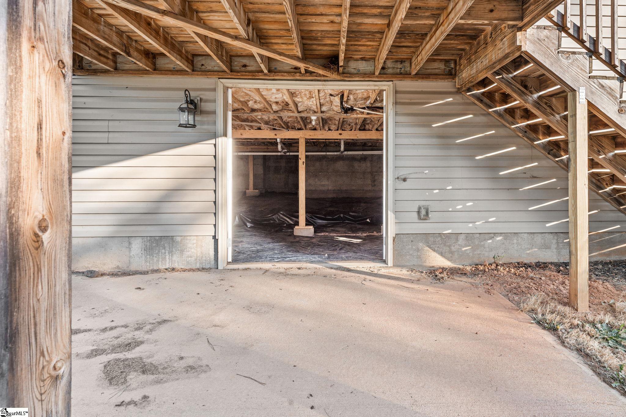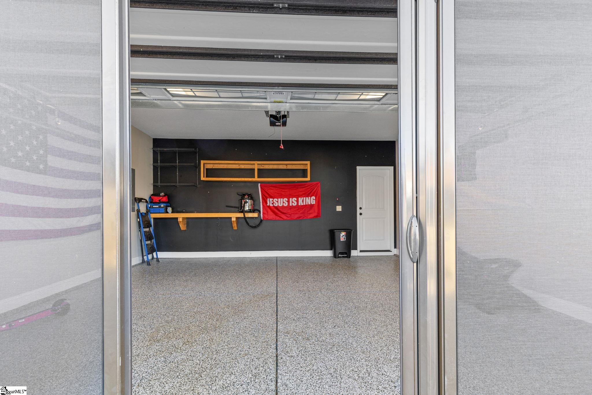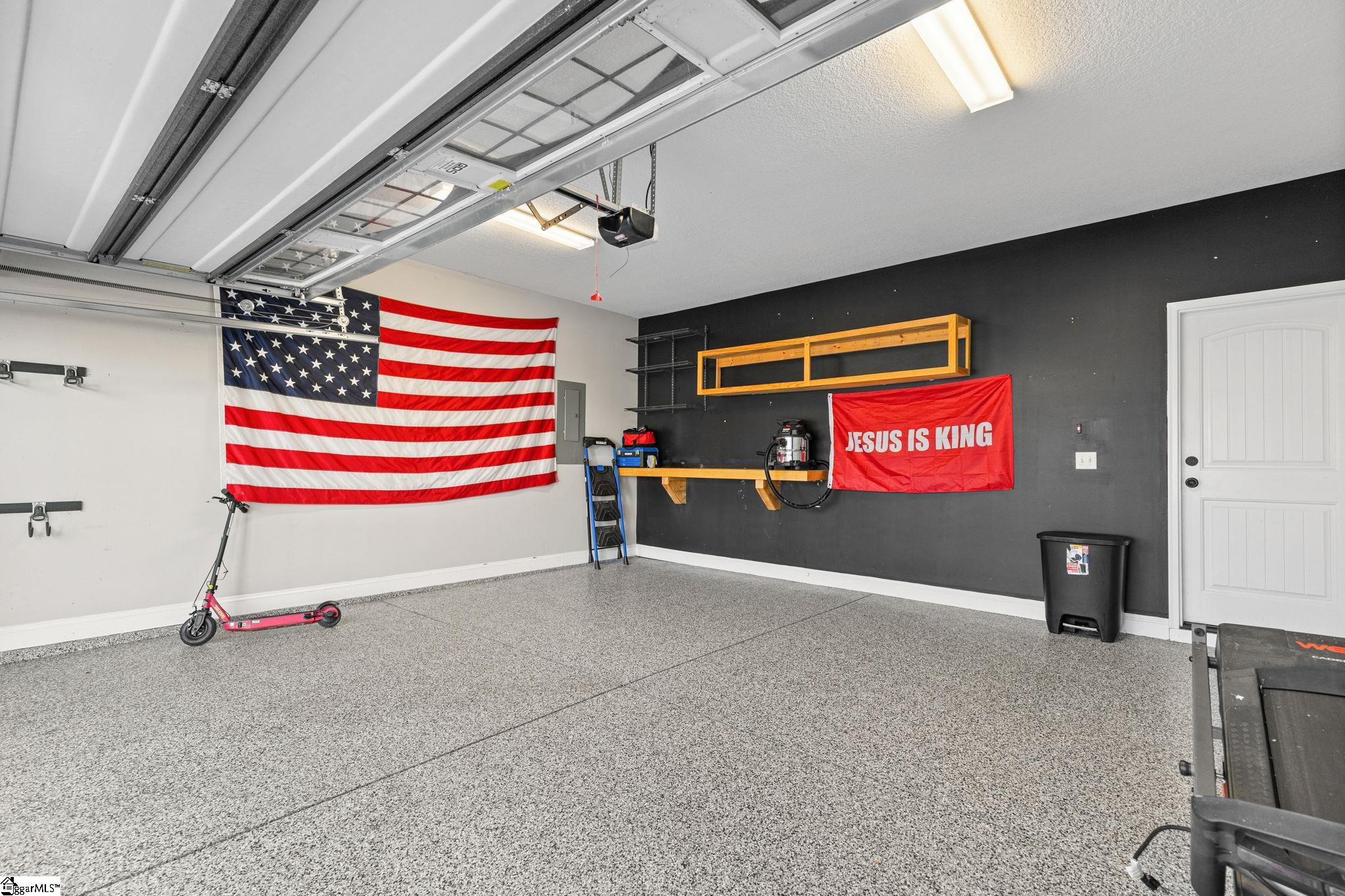 Designed for easy living, this home features no-step entry and a main-level primary suite. Attractive stone accents create great curb appeal, while the yard stays simple with just one mulched bed with fragrant lavender for low-maintenance landscaping. The two-car garage includes epoxy floors and a pull-down screened door, perfect for space for parking, projects, or enjoying fresh air without the bugs. Stepping inside, you'll find a bright, open floor plan featuring gorgeous wood floors that flow seamlessly from the living room to the kitchen, dining, and into the primary bedroom, creating a warm feel throughout the main level. The inviting living room showcases a stunning stacked-stone fireplace, while the kitchen impresses with rich-looking cabinetry, uniquely gorgeous granite countertops, ample storage, and a center island — perfect for gathering, prep work, and entertaining. Throughout the home, you will appreciate all the extra touches from elegant wood molding to custom blinds that elevate the overall craftsmanship and character. The primary suite on the main level feels like a true retreat, complete with a beautiful wood trim accent wall, tray ceiling with accent lighting, spa-like soaking tub, separate walk-in shower, double sink vanity with granite countertops, and a walk-in closet with custom organization shelving and dedicated vanity space. A private door leads directly from the primary bedroom to the back deck, creating a peaceful escape to enjoy morning coffee or unwind in the evenings. Upstairs, you’ll find two spacious bedrooms, a full bathroom, plus additional unfinished attic space with a window -- offering exceptional storage potential or maybe even future expansion to offer a dual owners suite, ensuite office or other additional sqft. Outdoor living shines with a spacious covered front porch, leaded glass front door, and an awesome back deck featuring roll-down privacy/shade screens overlooking the tree-lined, fenced backyard creating perfect spaces for gathering, relaxing, and enjoying the outdoors year-round. Below, a walk-in crawlspace accessible through double doors provides storage that feels almost like having a basement. And the garage? Truly next-level — boasting magnificent epoxy floors and sliding screen doors, making it the perfect space for hobbies, a home gym, workshop, or ultimate hangout zone. All of this plus beautiful stacked-stone curb appeal, a private wooded backdrop, and access to a fantastic community with pool and playground — this home offers an ideal blend of comfort, convenience, and craftsmanship, and is ready to impress from the moment you arrive. Great for multigenerational living! Less than 5 miles from I-85. Less than 10 miles from BMW. Less than 10 miles from downtown Spartanburg. 14 miles from GSP Airport.
