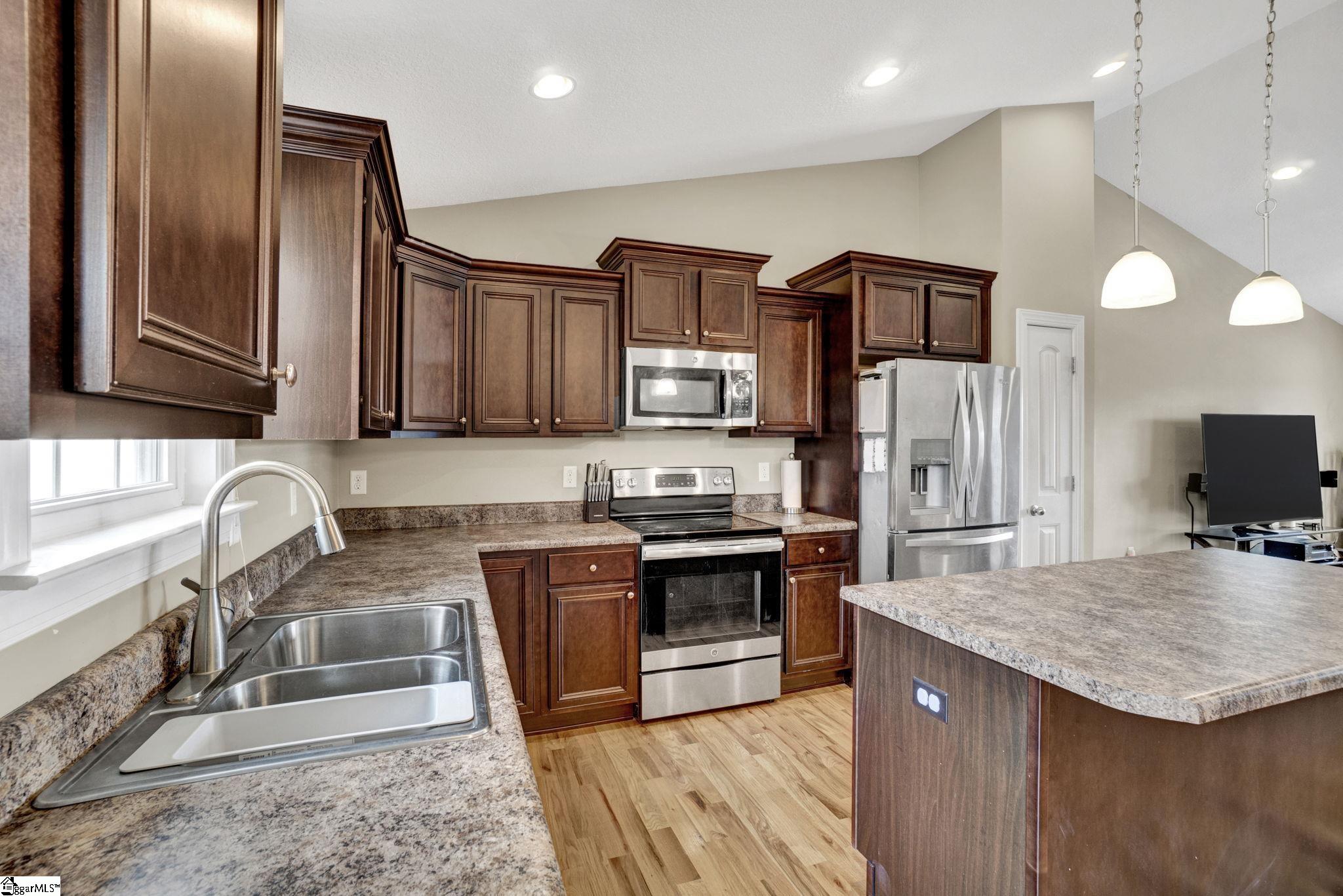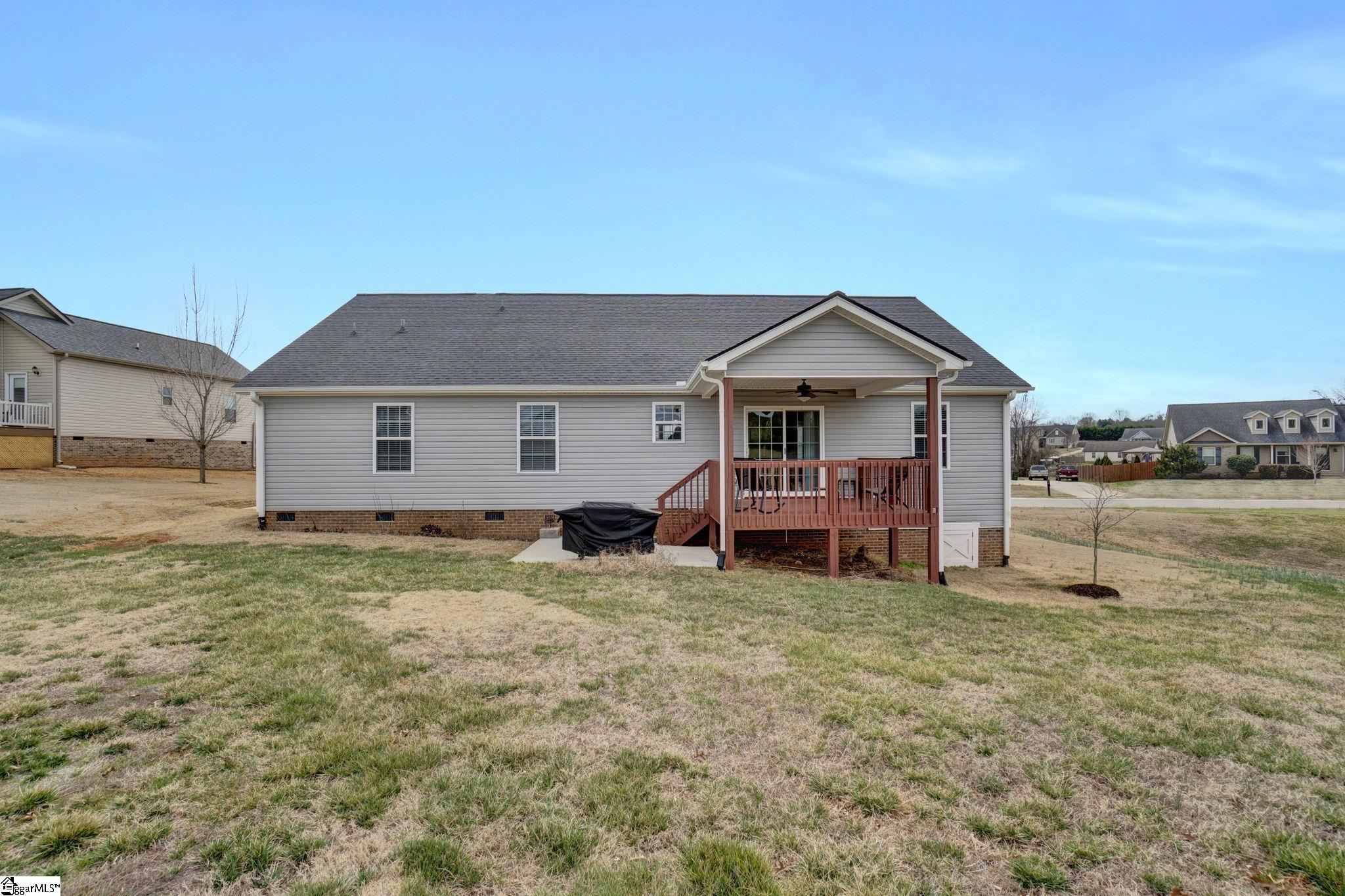 Beautifully maintained and move-in ready, this 3 bedroom, 2 bath ranch offers the perfect balance of comfort, space, and functionality. Inside, you’ll find a spacious open floor plan with high ceilings and real hardwood floors flowing throughout the main living areas, creating a warm and inviting feel from the moment you walk in. The finished bonus room above the garage adds valuable flexible space, perfect for a home office, playroom, guest room, or media area. The primary suite feels like a private retreat, featuring ample space, a large walk in closet, and a relaxing garden tub. With abundant closets and storage throughout, this home was designed with practicality in mind. Situated on a generous . 72 acre lot in Greer, the outdoor space offers just as much to love. Enjoy quiet mornings or evenings with friends on the covered back deck, plus an additional paved patio perfect for grilling or gathering. An extra parking pad beside the driveway provides convenient space for guests, additional vehicles, or a trailer. Conveniently located just off Reidville Road with easy access to Greenville, Greer, and Five Forks shopping, dining, and everyday amenities, this home combines thoughtful features with a location that makes daily life easy.