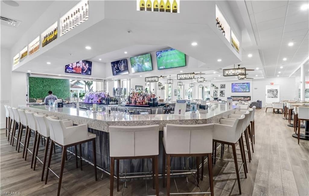 Enjoy spectacular wrap-around lake and golf course views from this turnkey 2nd-floor end-unit in the highly sought-after resort community, The Strand. This unit offers soaring ceilings and an open-concept layout. The spacious primary suite opens to a screened lanai—perfect for relaxing and taking in the panoramic views. A versatile den provides additional space for guests or a home office. Electric shutters, hurricane-impact windows and sliders, and a detached 1-car garage add comfort and convenience. Located in The Strand, tenants enjoy resort-style amenities including a fitness center, pool, dining, and active social offerings. Available for in-season rental. Turnkey and move-in ready—experience the Naples lifestyle at its finest.