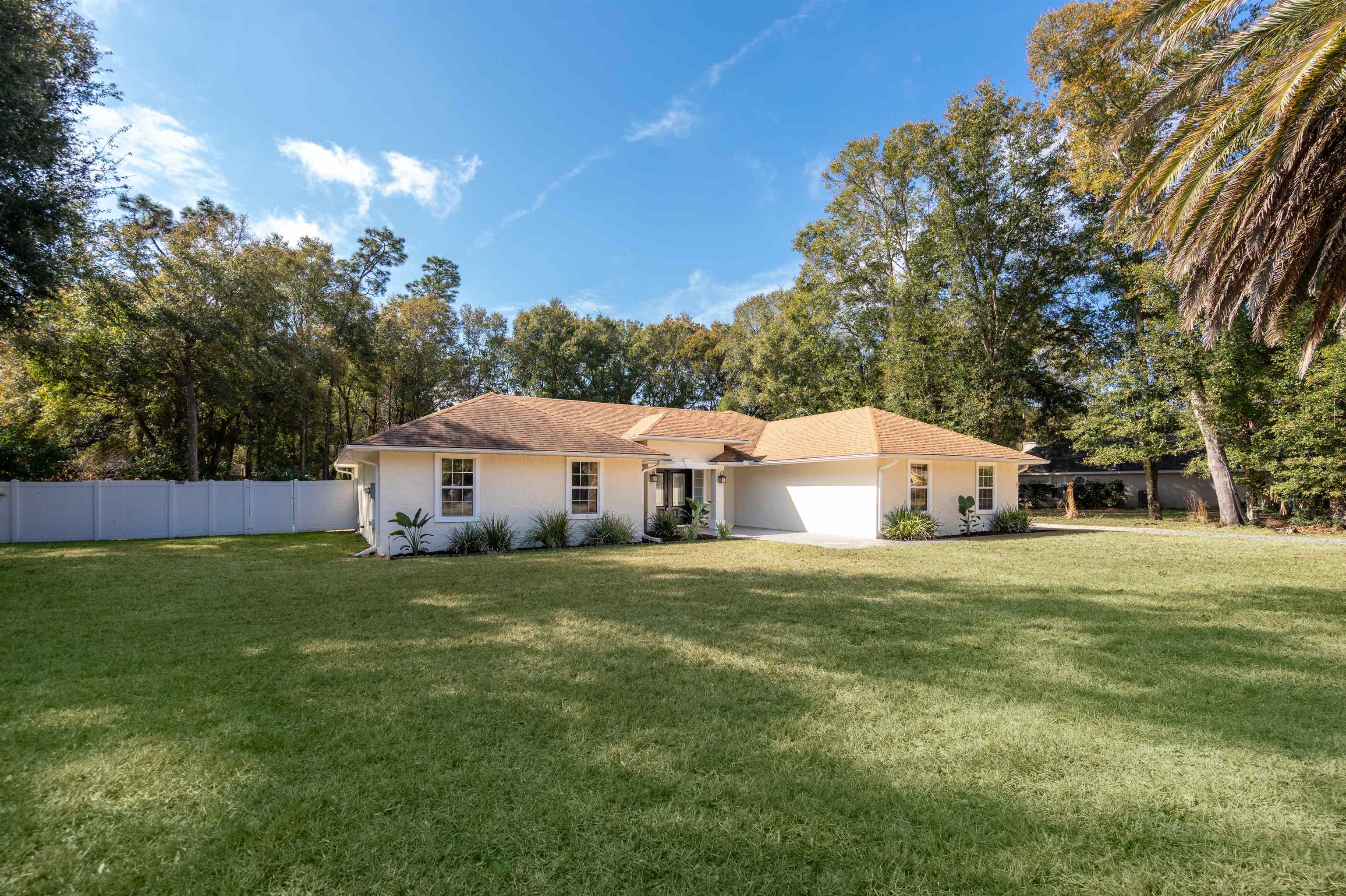 Updated Oakbrook home! This 3-bedroom, 2-bathroom home offers just over 2, 300 square feet of living space on a half-acre lot in the sought-after Oakbrook community. Step inside to find fresh new flooring throughout, a fully updated kitchen with brand-new appliances, white shaker cabinets and quartz countertops and freshly painted interiors and exteriors that create a bright and inviting atmosphere! A cozy fireplace anchors the living area, adding warmth and charm to the home’s open layout. French doors open to an enclosed Florida room, extending the living space and providing the perfect spot to relax or entertain year-round. The large fenced yard offers plenty of room to enjoy the outdoors, whether it’s gardening, gathering with friends, or unwinding in the hot tub, with new French doors off the living room providing easy backyard access and opening to a paver area perfectly set up for your grill or outdoor seating.