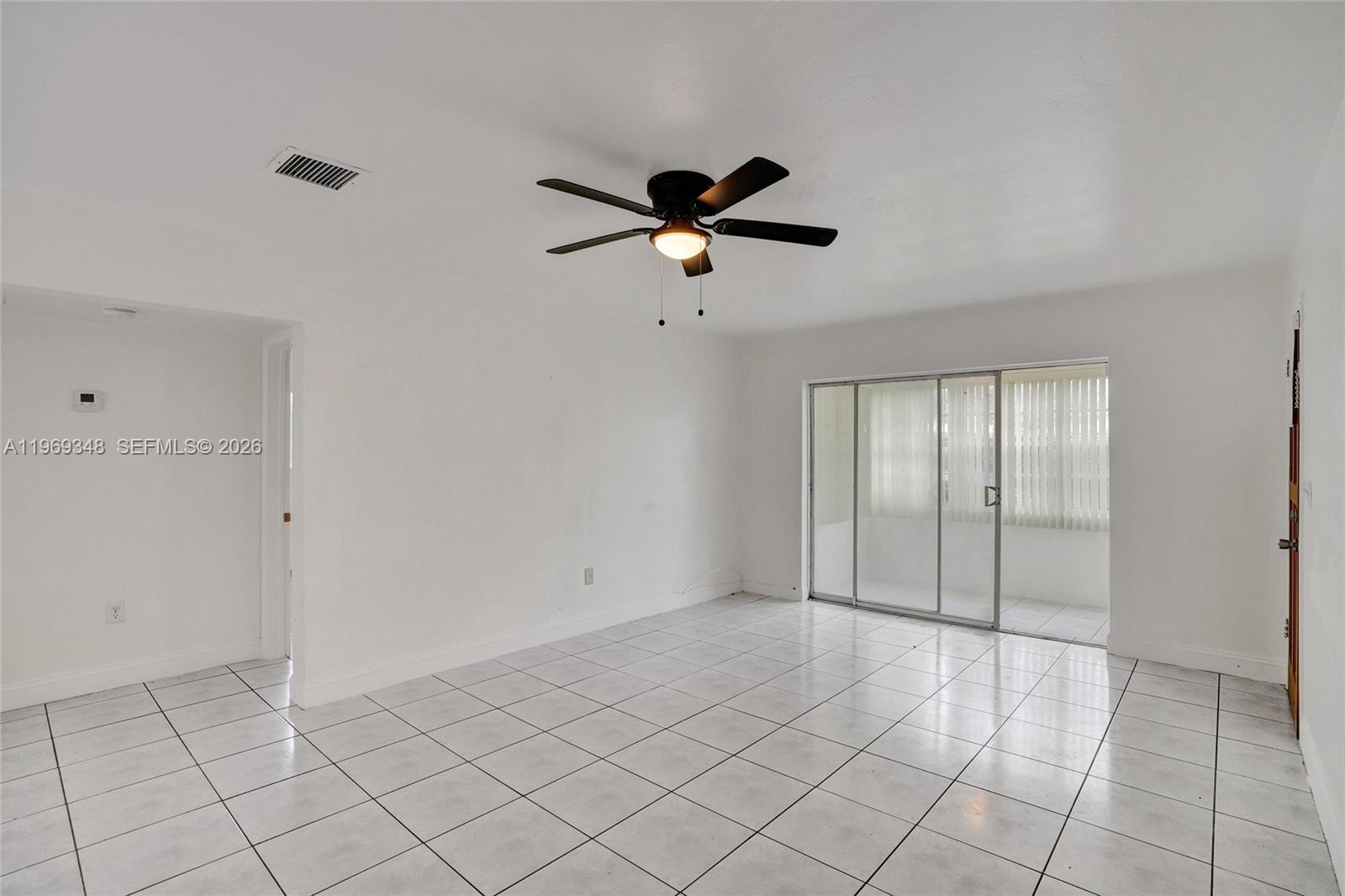 Welcome to this bright and spacious rental in the heart of North Miami Beach. Featuring an open-concept layout with sleek white tile flooring throughout, this home offers a clean, modern feel and plenty of natural light. The living and dining areas flow seamlessly, creating a comfortable space for both relaxing and entertaining. Enjoy ceiling fans for added comfort and large windows plus sliding glass doors that bring in natural light and lead to an enclosed patio area perfect for a home office setup, reading nook, or additional sitting space. The kitchen is equipped with white cabinetry, ample storage, tiled countertops, and stainless steel appliances. Freshly painted with neutral finishes throughout, this home is move-in ready. Conveniently located near major highways, shopping, dining, schools, and just minutes from Aventura, Sunny Isles, and the beach.