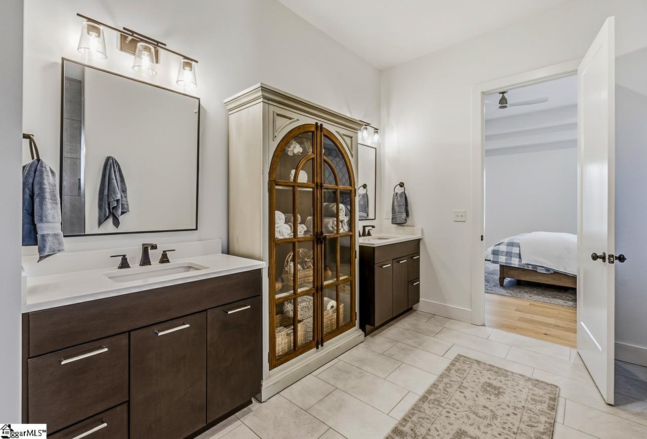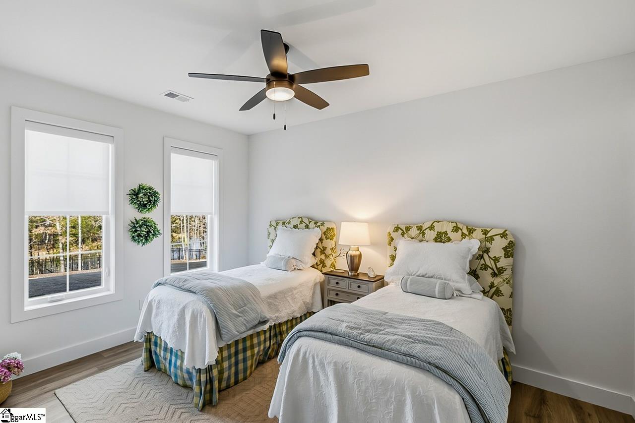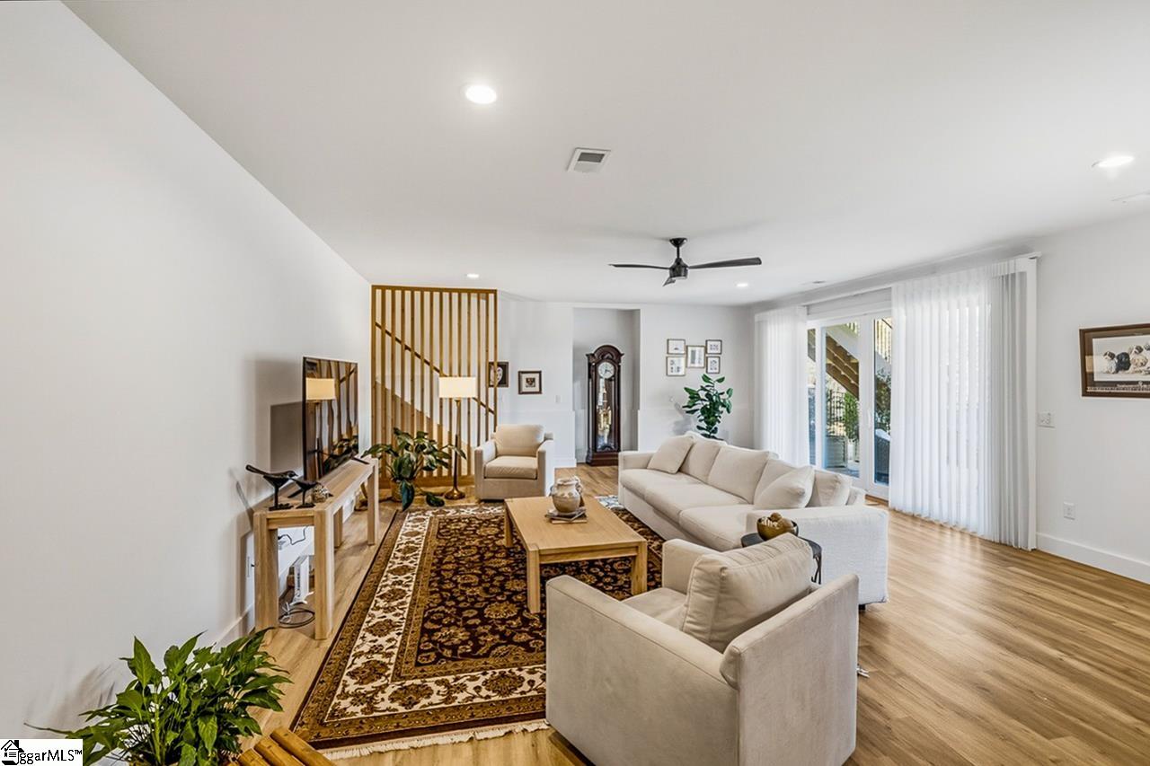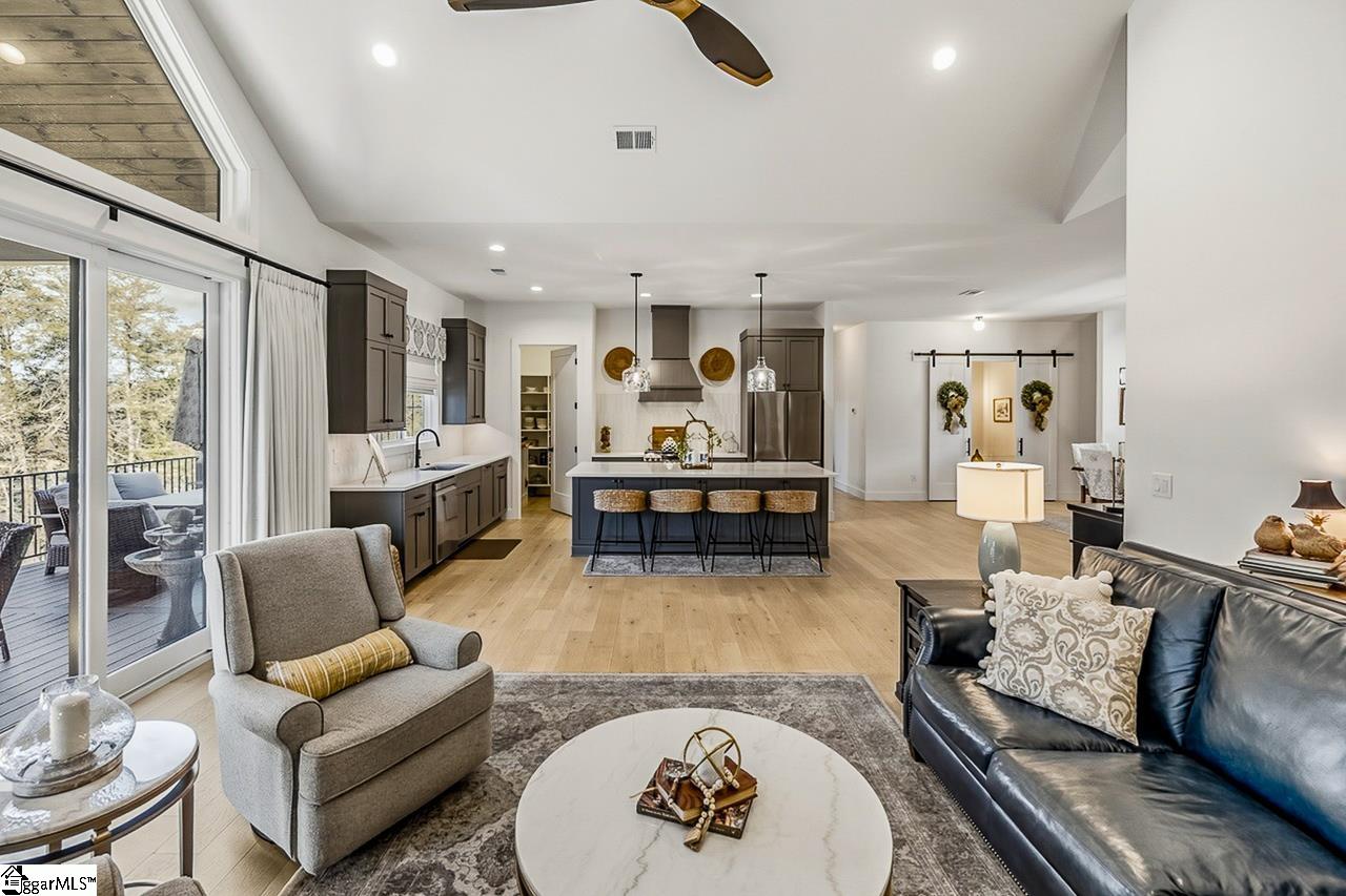 Welcome to 111 Sanctuary Lane in Taylors — where modern farmhouse style meets peaceful, mountain-view living. Located in The Sanctuary of Greenville, just minutes from North Greenville University and Highway 25, this thoughtfully designed 4 bedroom, 3 bathroom home offers the open floor plan space and flexibility today’s buyers are looking for. The main level feels open and airy with seamless flow between the living room, dining space, and a beautifully appointed kitchen that features a statement island and a spacious pantry for extra prep and storage space. A private office sits tucked away from the main living area, making work-from-home days easy. The primary suite is on the main floor and truly feels like a retreat, complete with a spa-inspired bath, oversized shower, and a walk-through closet that conveniently connects to the laundry room. An additional bedroom and full bath round out the main level. Downstairs, the walkout basement offers a spacious second living area filled with natural light, two more bedrooms, a full bath, and access to a large patio overlooking the backyard. There’s also a dedicated workshop/storage area with its own garage door plus over 900 square feet of unfinished space ready for future expansion, storage, or whatever fits your needs. The sellers have added thoughtful upgrades including a central vacuum system for everyday convenience and a retractable mobile screen on the back porch to help offset the afternoon sun — making outdoor living even more enjoyable year-round. With mountain views, flexible living areas, and a quiet setting just outside the city, this home offers the best of both comfort and convenience. Come see it!