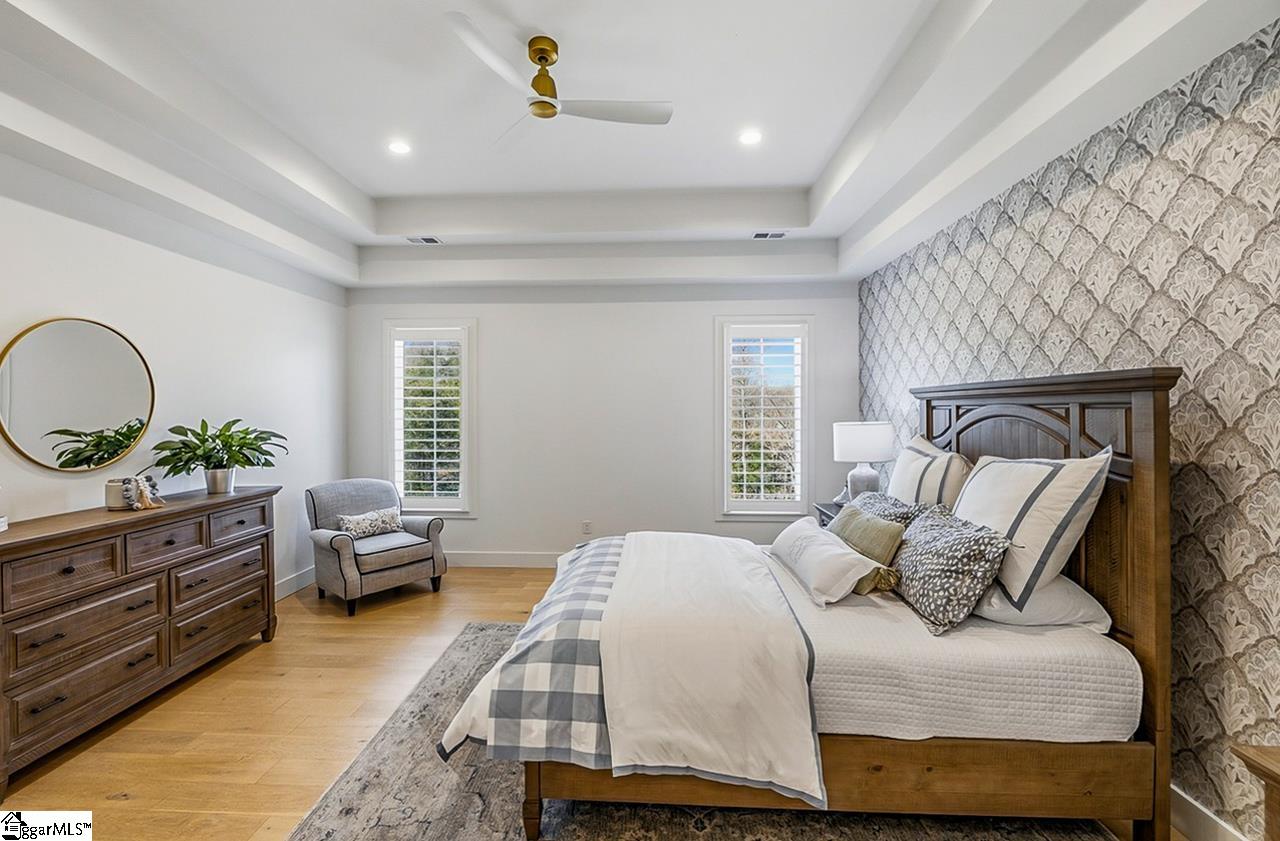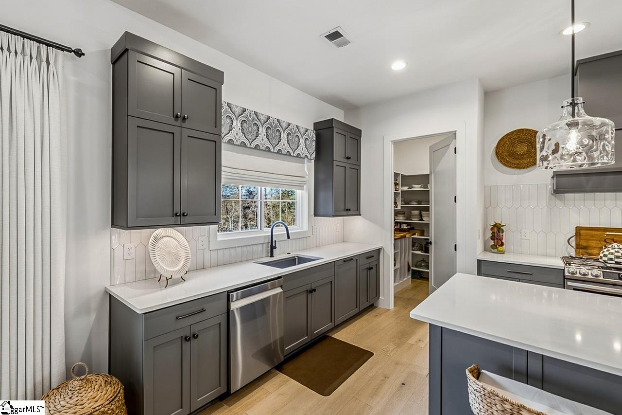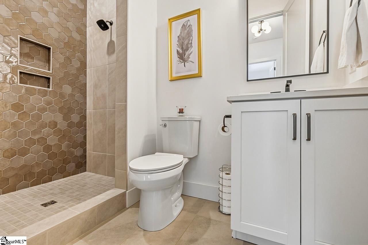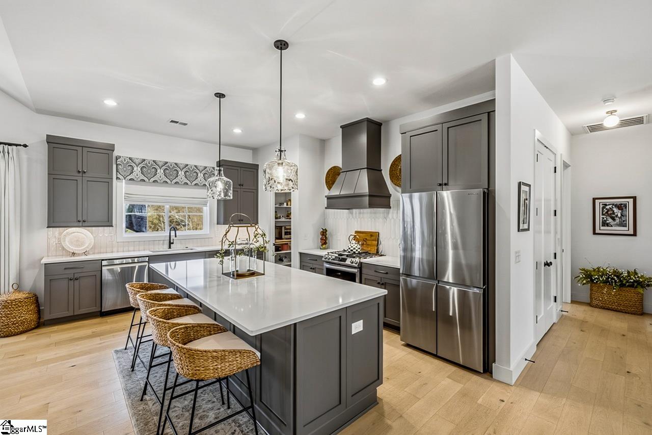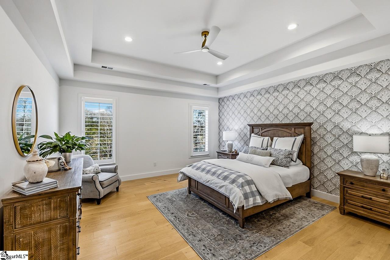Welcome to 111 Sanctuary Lane in Taylors — where modern farmhouse style meets peaceful, mountain-view living. Located in The Sanctuary of Greenville, just minutes from North Greenville University and Highway 25, this thoughtfully designed 4 bedroom, 3 bathroom home offers the open floor plan space and flexibility today’s buyers are looking for. The main level feels open and airy with seamless flow between the living room, dining space, and a beautifully appointed kitchen that features a statement island and a spacious pantry for extra prep and storage space. A private office sits tucked away from the main living area, making work-from-home days easy. The primary suite is on the main floor and truly feels like a retreat, complete with a spa-inspired bath, oversized shower, and a walk-through closet that conveniently connects to the laundry room. An additional bedroom and full bath round out the main level. Downstairs, the walkout basement offers a spacious second living area filled with natural light, two more bedrooms, a full bath, and access to a large patio overlooking the backyard. There’s also a dedicated workshop/storage area with its own garage door plus over 900 square feet of unfinished space ready for future expansion, storage, or whatever fits your needs. The sellers have added thoughtful upgrades including a central vacuum system for everyday convenience and a retractable mobile screen on the back porch to help offset the afternoon sun — making outdoor living even more enjoyable year-round. With mountain views, flexible living areas, and a quiet setting just outside the city, this home offers the best of both comfort and convenience. Come see it!