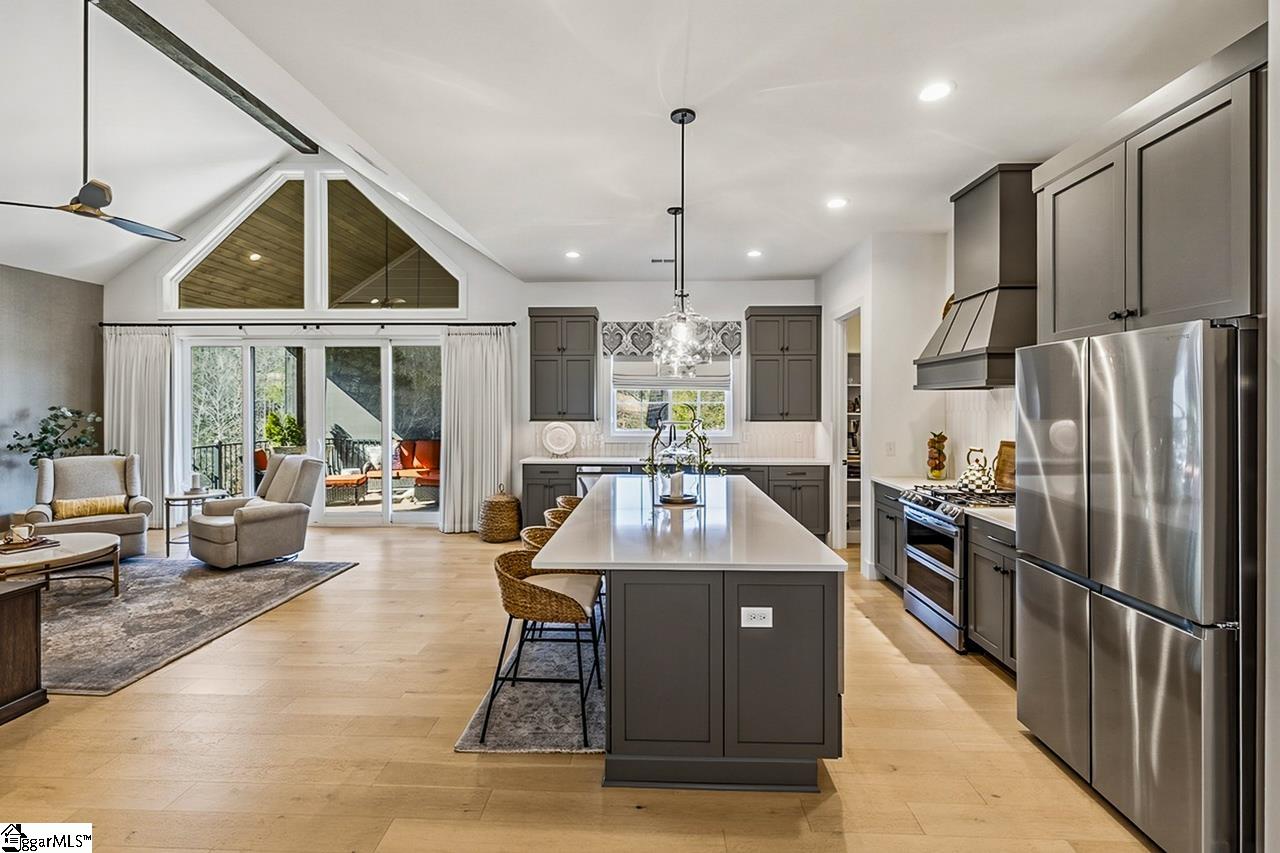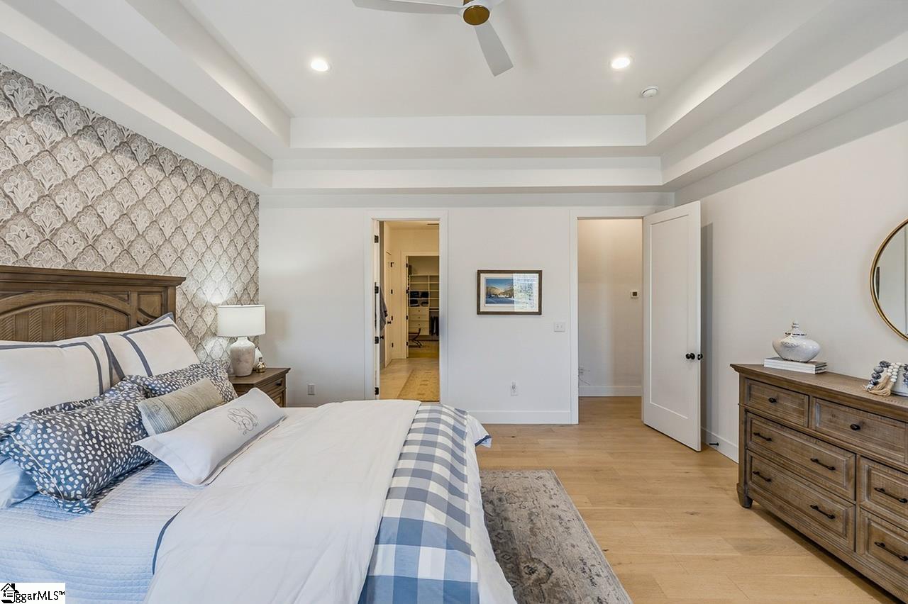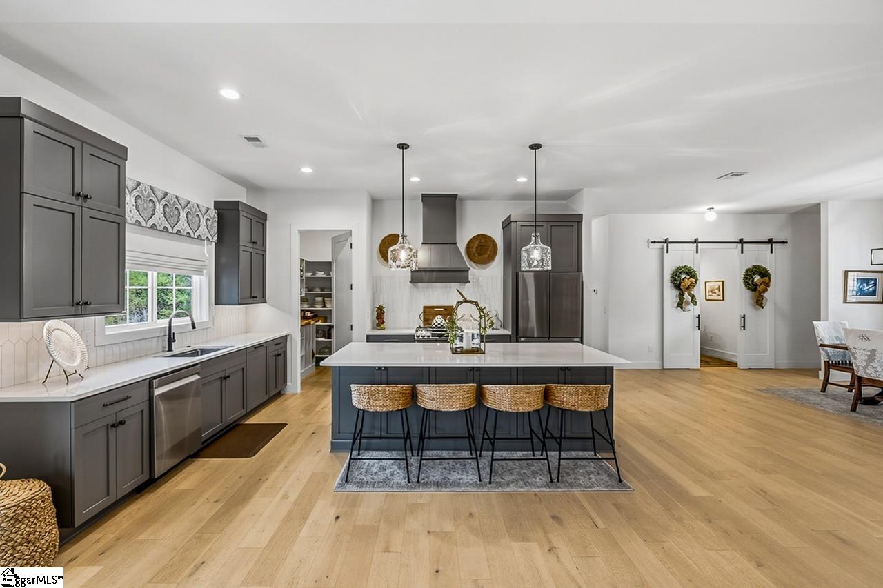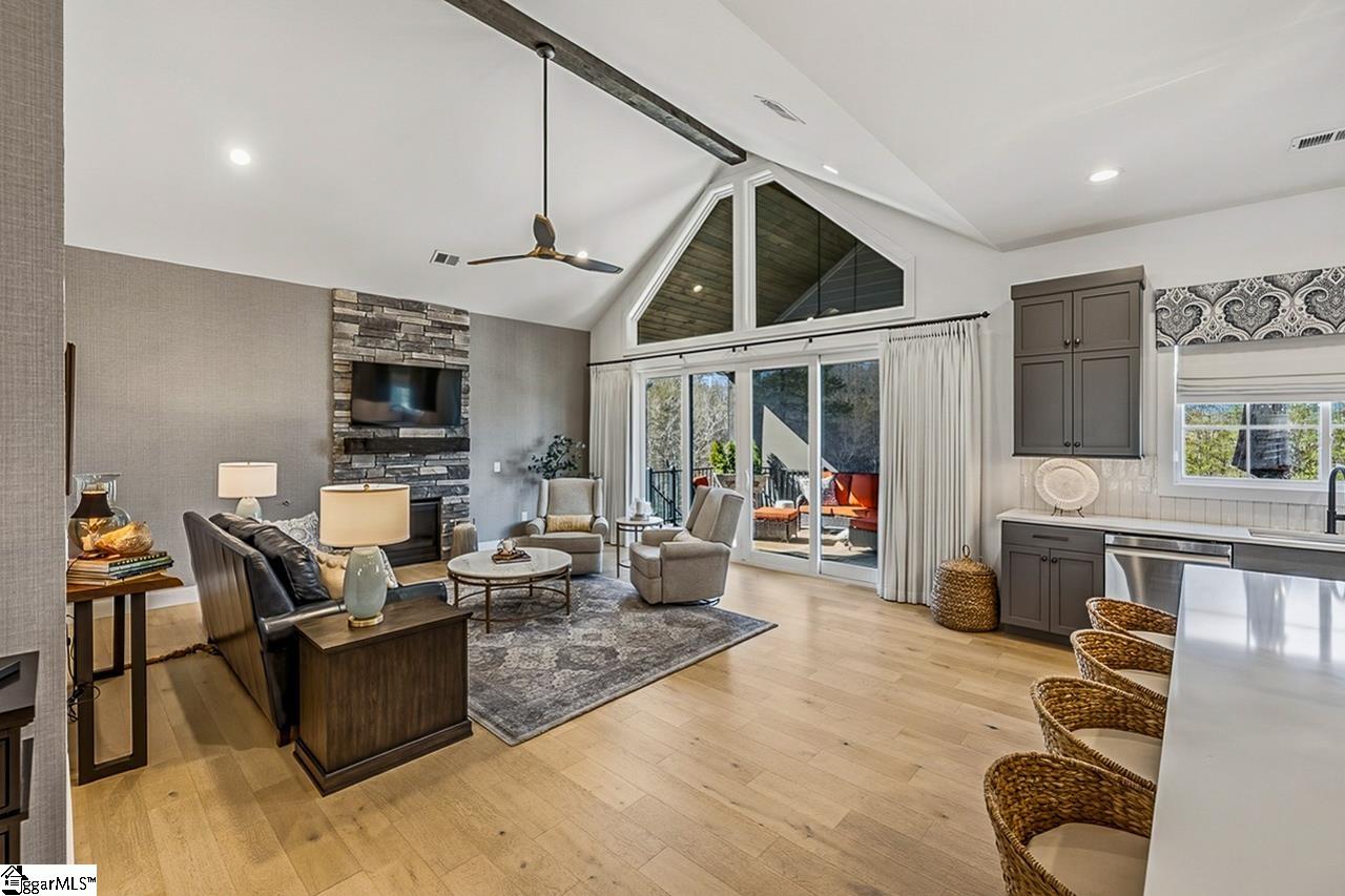 Welcome to 111 Sanctuary Lane in Taylors — where modern farmhouse style meets peaceful, mountain-view living. Located in The Sanctuary of Greenville, just minutes from North Greenville University and Highway 25, this thoughtfully designed 4 bedroom, 3 bathroom home offers the open floor plan space and flexibility today’s buyers are looking for. The main level feels open and airy with seamless flow between the living room, dining space, and a beautifully appointed kitchen that features a statement island and a spacious pantry for extra prep and storage space. A private office sits tucked away from the main living area, making work-from-home days easy. The primary suite is on the main floor and truly feels like a retreat, complete with a spa-inspired bath, oversized shower, and a walk-through closet that conveniently connects to the laundry room. An additional bedroom and full bath round out the main level. Downstairs, the walkout basement offers a spacious second living area filled with natural light, two more bedrooms, a full bath, and access to a large patio overlooking the backyard. There’s also a dedicated workshop/storage area with its own garage door plus over 900 square feet of unfinished space ready for future expansion, storage, or whatever fits your needs. The sellers have added thoughtful upgrades including a central vacuum system for everyday convenience and a retractable mobile screen on the back porch to help offset the afternoon sun — making outdoor living even more enjoyable year-round. With mountain views, flexible living areas, and a quiet setting just outside the city, this home offers the best of both comfort and convenience. Come see it!