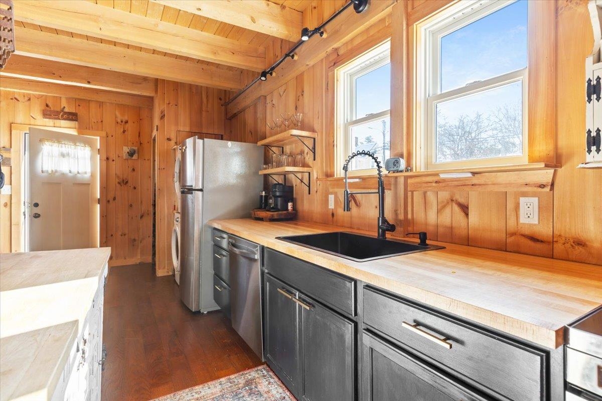 Located just off Main Street in Lancaster with commercial zoning already in place, this property presents a rare opportunity for business owners or investors seeking a flexible live work setup in a visible and convenient location. The rear addition features a finished 24 by 24 studio currently operating as a private yoga space. The open layout, finished interior, and dedicated entrance make it well suited for wellness services, professional office use, retail, creative work, or other client based businesses. Roadside sign placement near the street enhances visibility and helps support a strong business presence. Connected to the studio is a fully renovated barn conversion that now serves as a comfortable residence, creating an ideal opportunity for an owner occupant or business operator who wants housing on site. The interior renovation was completed in 2024 and features exposed beams, knotty pine finishes, vinyl plank flooring, and a bright open concept kitchen, dining, and living area centered around a custom butcher block island and stainless appliances. The home includes two purposely built bedrooms and a three quarter bath, with additional upper level space that could function as office space, guest quarters, storage, or potential additional bedroom area depending on use. This mixed use property offers flexibility for entrepreneurs, service providers, investors, or anyone looking to combine workspace and housing in one location. Properties where zoning, condition, and layout already support both residential living and business use are increasingly hard to find, making this a strong opportunity in the Lancaster market.