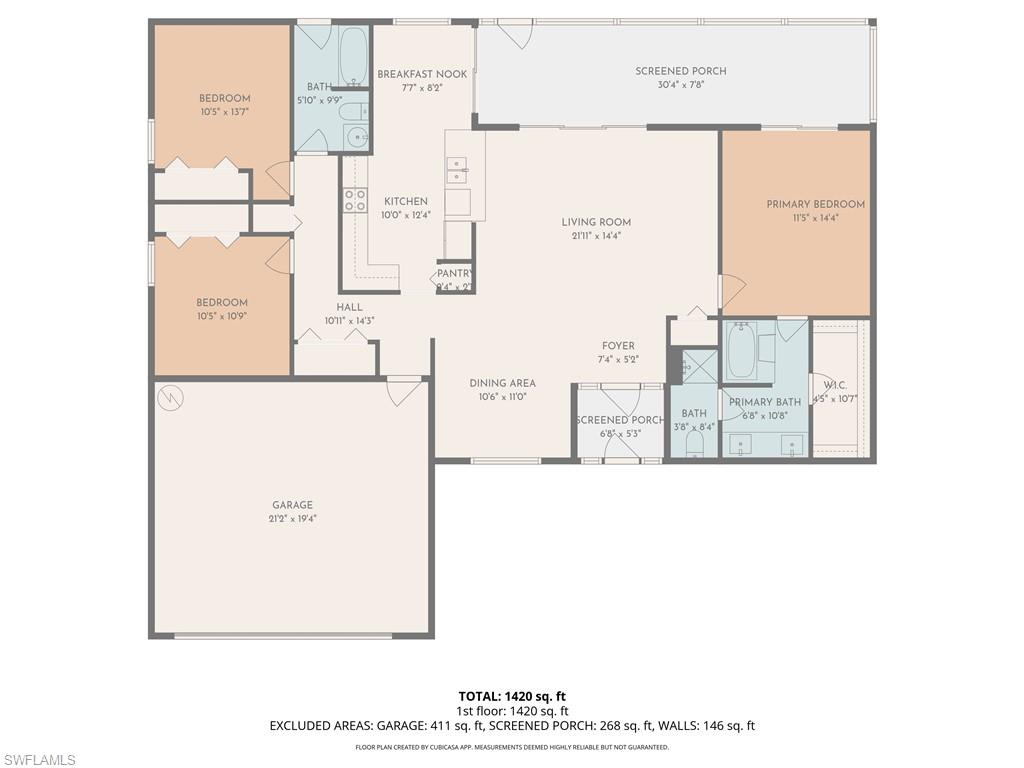Located at 1313 NE 12th Pl in Cape Coral, this 3-bedroom, 2-bath home offers 1, 489 square feet of well-utilized living space with a functional and inviting layout. The interior features neutral paint tones and updated fixtures that create a clean, modern feel throughout. Tile flooring in the main living areas provides durability and easy maintenance, ideal for everyday living.