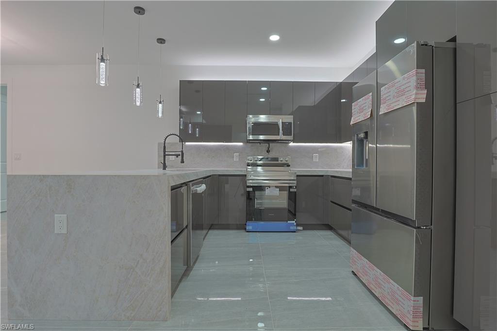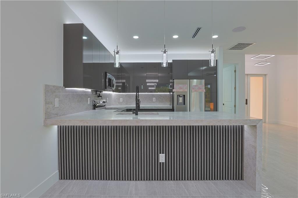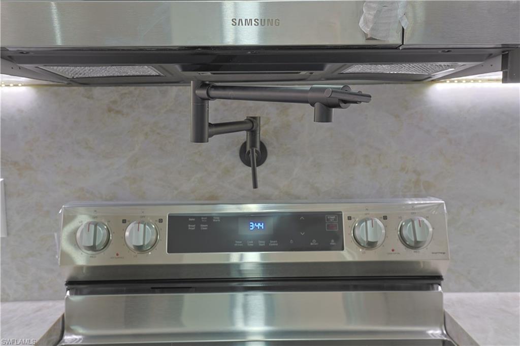 The chef-inspired kitchen offers statement-making 3-inch quartz countertops extending seamlessly to the backsplash, complemented by a convenient pot filler, Samsung stainless steel appliances, custom cabinetry with integrated LED lighting, and a contemporary island perfect for entertaining and everyday living. Designed for the ultimate hostess, the home is enhanced with built-in speakers that create a seamless sound experience throughout the main living areas and outdoor—setting the perfect tone for dinner parties, holiday celebrations, or relaxed evenings at home.