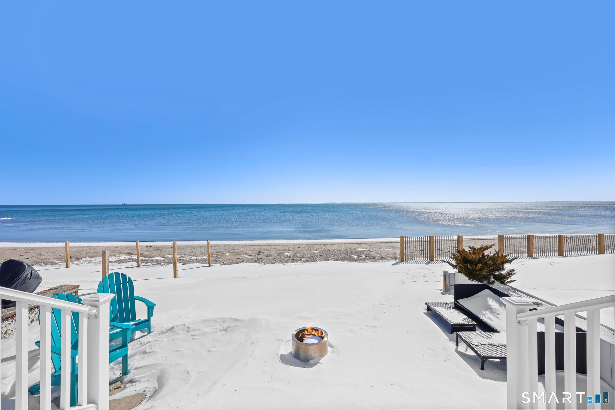 Spend your summer right on the shoreline in this beautifully furnished waterfront escape, where every day begins and ends with sweeping views of Long Island Sound. Designed to embrace its coastal setting, the home features a bright, open-concept layout that seamlessly connects the living, dining, and kitchen areas-all oriented toward the water. Expansive glass doors span the back of the home, filling the space with natural light and framing panoramic vistas of the sandy beach and blue horizon. Upstairs, the spacious primary suite offers a peaceful retreat with soaring ceilings, a dramatic picture window overlooking the Sound, and generous custom closet space. The spa-like bath includes a deep soaking tub and oversized walk-in shower. Two additional bedrooms and laundry can be found upstairs. Step outside to the patio and head straight down to the sand. Enjoy morning beach walks, afternoon swims, kayaking adventures, fishing off the shore, or simply unwinding as the sun dips below the horizon. This turnkey summer rental offers effortless coastal living in an unforgettable setting.