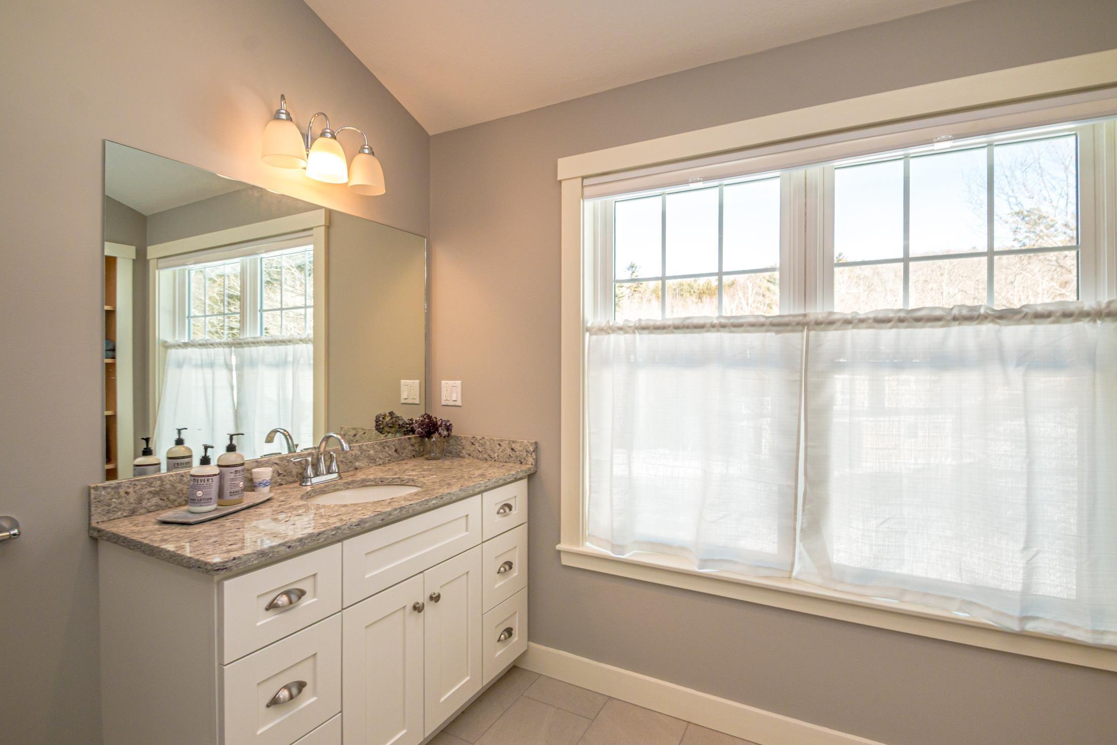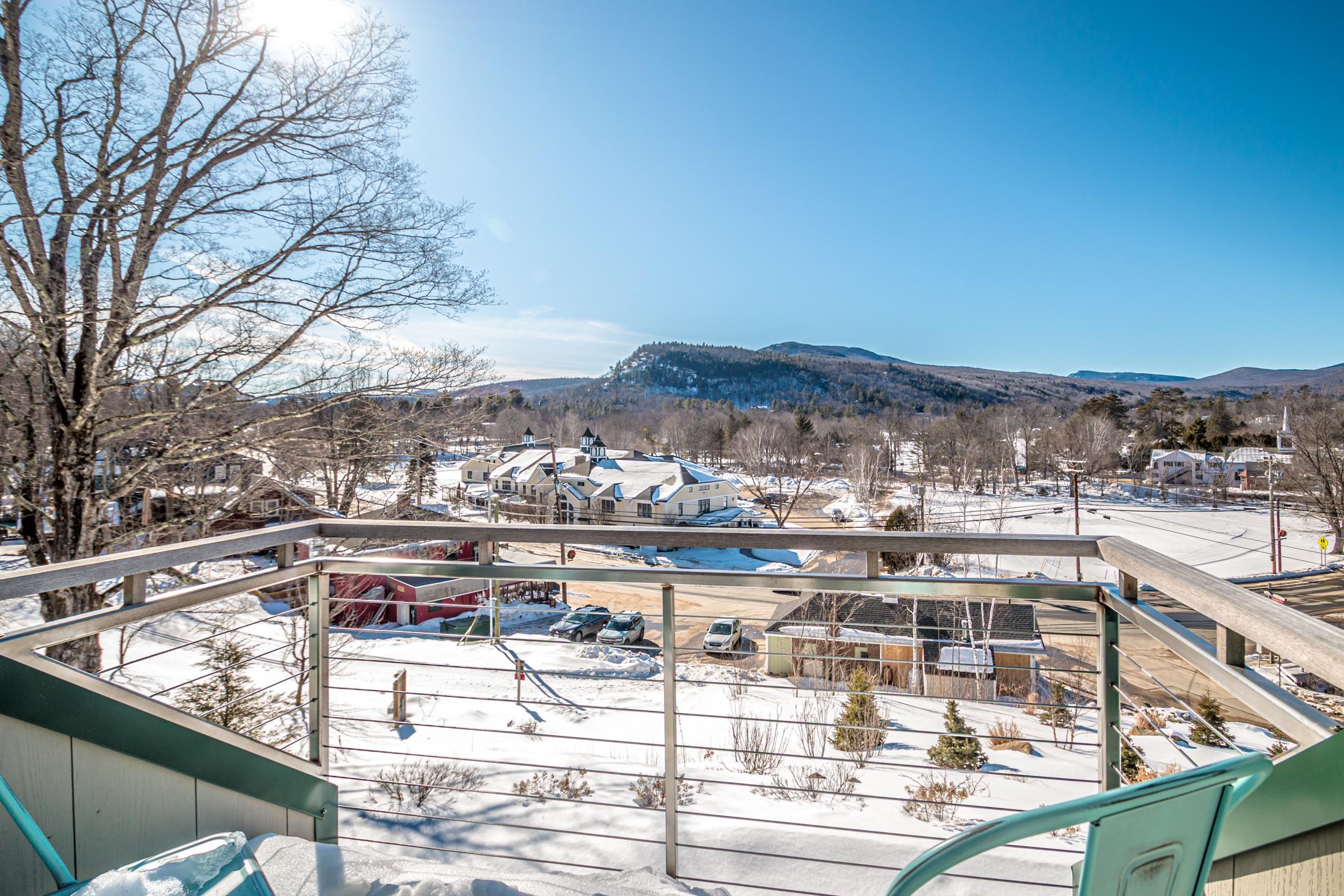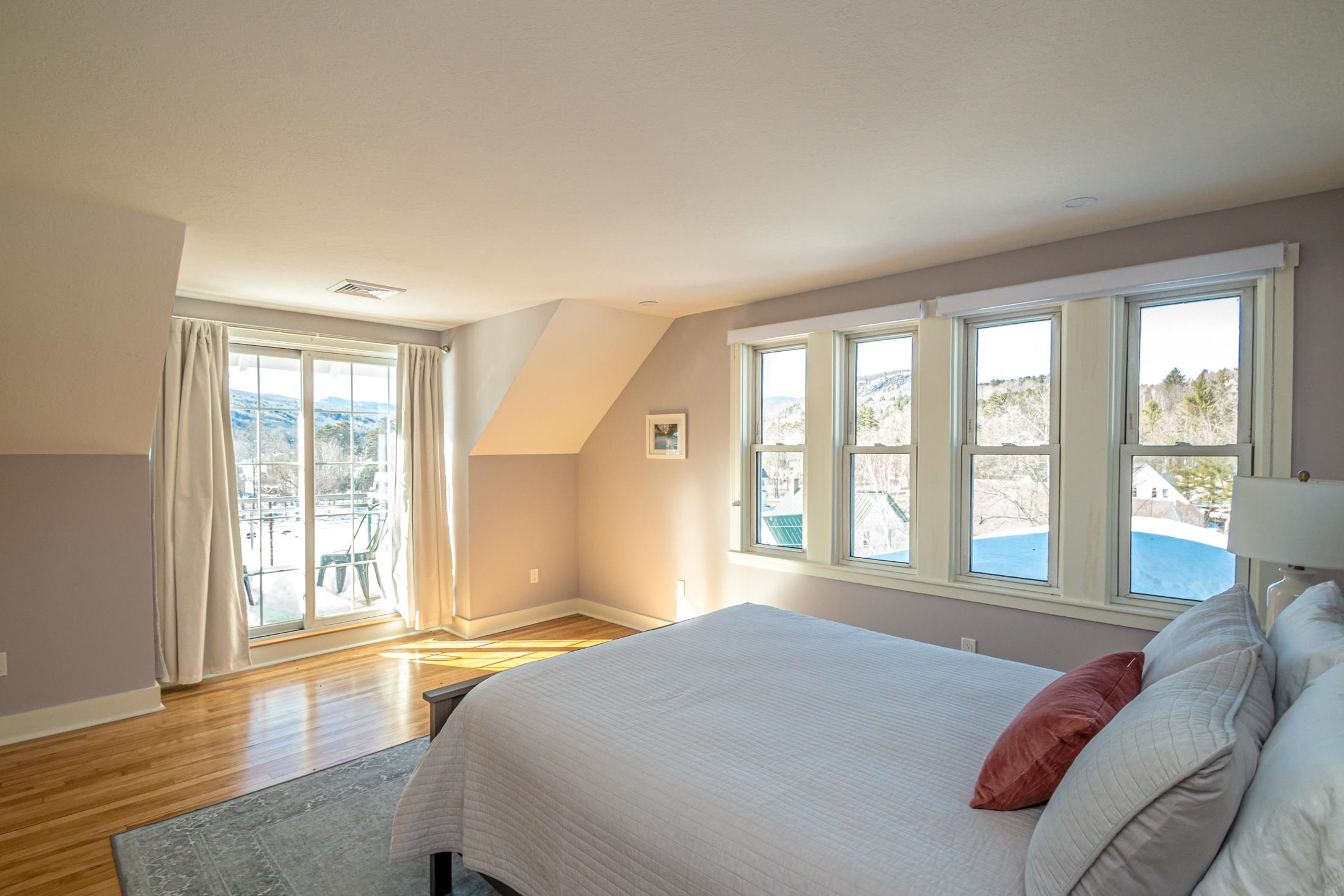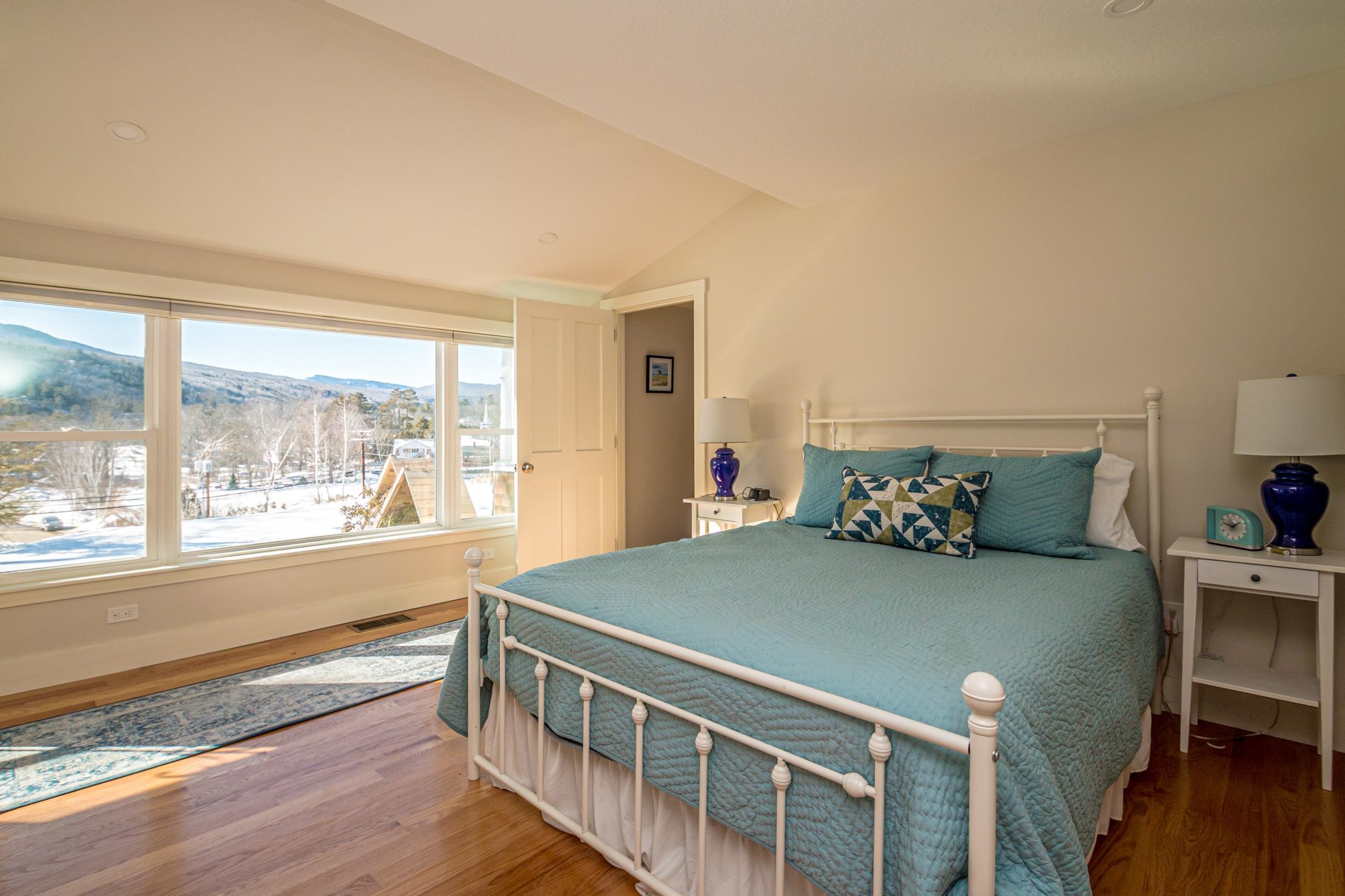 Experience the charm of Jackson as you cross the iconic Covered Bridge and arrive at 10 Evergreen Trail, a beautifully renovated home by renowned Tamarack builders, perfectly positioned above picturesque Jackson Village. This inviting residence boasts a bright and spacious main-level primary suite complete with a cozy gas fireplace, luxurious walk-in shower, relaxing tub, ample walk-in closet, and convenient stackable washer/dryer. The kitchen and family room set the scene for memorable gatherings, featuring a gas fireplace with a vintage mantel, built-in bookcases, and rich hardwood floors. Upstairs, two generous bedrooms each open to a balcony, capturing sweeping views, while a sitting room and full bath offer comfortable accommodations for family or guests. The impressive 29-foot four-season sun porch, warmed by a gas log stove, delivers breathtaking vistas of the village and mountains, along with spectacular sunsets thanks to western exposure. The heat and A/C is provided by a heat pump hot air system, 2 gas fireplaces and a gas log stove. Offered furnished. With an easement to Jackson Ski Touring, you are entitled to ski passes annually. Enjoy endless recreation hiking in the White Mountains, nearby golfing at Wentworth and Eagle Mountain courses, and proximity to top ski areas—Black Mountain, Wildcat, Attitash, and Cranmore. Steps from Jackson Grammar School, Whitney Community Center, local cafes, fine dining, and a vibrant music scene, this home puts the best of Jackson within easy reach. The Crowes’ Nest is a unique two-unit condominium, each providing the comfort and privacy of a single-family home—perfect for embracing the four-season lifestyle in one of New Hampshire’s most sought-after communities.