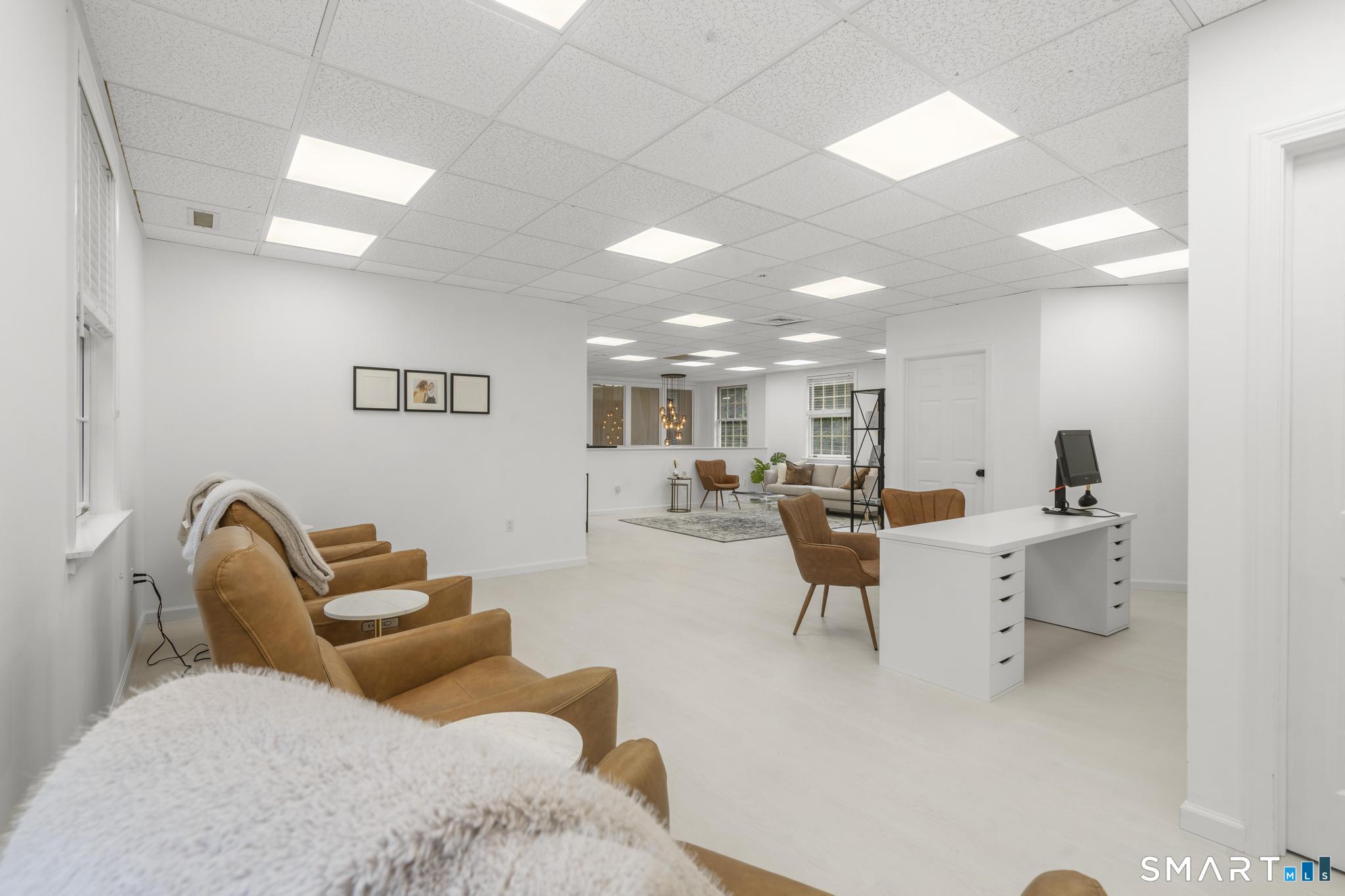 Position your business in this fully renovated, high visibility office building located along Main Street in Farmington, with exposure to approximately 12, 000 cars per day and excellent signage opportunities. The available second floor suite features six private offices, each with plumbing hookups for sinks, along with a shared reception area, private bathroom, and kitchenette. The layout is ideal for medical, wellness, beauty, or professional office users seeking a move in ready space. Perfect for therapists, aesthetic providers, estheticians, hair and makeup professionals, physicians, or other professional offices. The property also offers 18 on site parking spaces for convenient client and staff access, modern finishes, and updated systems throughout. All utilities included.