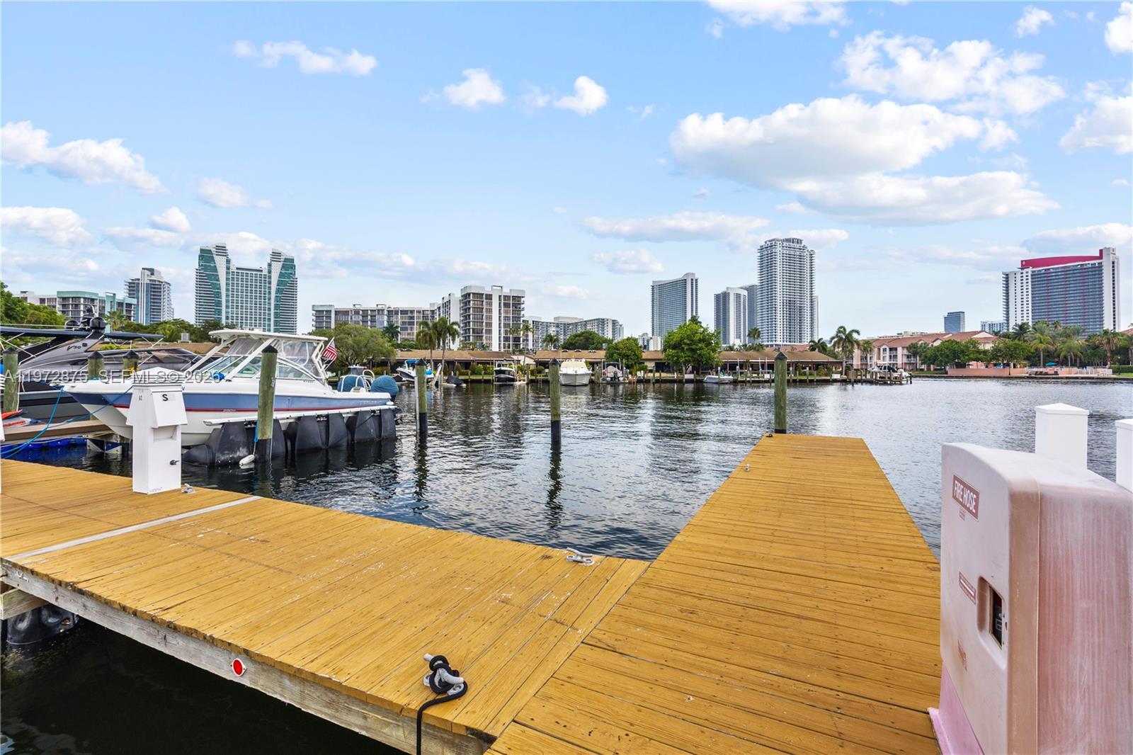 Harbourwood corner Villa, 45 ft deeded T-dock included (width 18), Ocean access, no fixed bridges. New Hurricane impact windows and doors, Vaulted ceilings with exposed wood beams, open and Spacious 3 Bedroom, 2 Bath, split floor plan, 1626 sq. ft. , skylight & ceramic tile plank flooring. Master bath has a separate jacuzzi tub and shower. Lots of storage space. Kitchen features granite countertops & bar seating area. SS appliances, new refrigerator and newer washer & dryer. Fenced in private patio to enjoy outside dining. Minutes to the Beach, Aventura Mall, Gulfstream Village & Ft. Lauderdale Airport