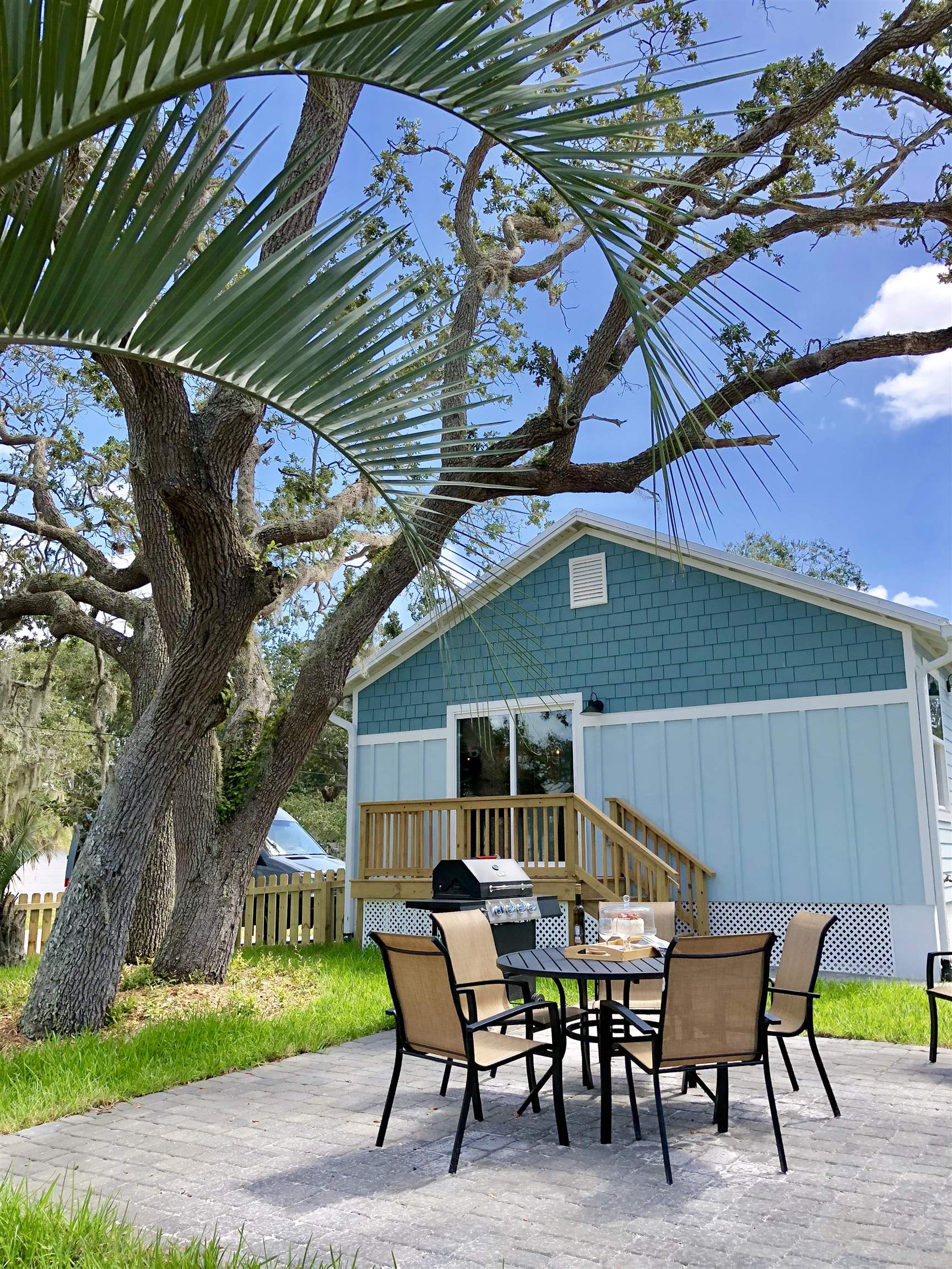 Introducing True Blue – a high and dry coastal sanctuary in the heart of Vilano Beach, Florida, and an exceptional opportunity for both lifestyle seekers and savvy investors. This charming 4-bedroom, 2-bathroom beach cottage is currently operating as a highly successful Airbnb, offering immediate income potential with a track record of stellar guest reviews. Just a short stroll from the Atlantic Ocean and steps from the serene Intracoastal Waterway, True Blue invites you to experience the best of beachside living. Inside, you'll find a bright, open-concept layout perfect for entertaining, featuring a modern, fully-equipped kitchen with a generous island, a dining space that comfortably seats eight, and a cozy living room with a queen-size pull-out sofa. Each bedroom is thoughtfully designed for relaxation, with a luxurious king suite and three inviting queen rooms that comfortably accommodate up to 10 guests. Outside, a private fenced yard offers a peaceful oasis with a patio, BBQ grill, and plenty of space to unwind under the Florida sun—perfect for both families and pet owners. Located minutes from iconic St. Augustine and beloved local spots like Aunt Kate’s, this property blends the tranquility of a beach retreat with easy access to dining, culture, and entertainment. Whether you're looking for your new home on the coast, a beach getaway, or a high-performing turn-key vacation rental, True Blue is the rare gem that delivers it all. Don’t miss your chance to own a slice of Florida paradise with proven rental income and endless charm. Furnishings negotiable.