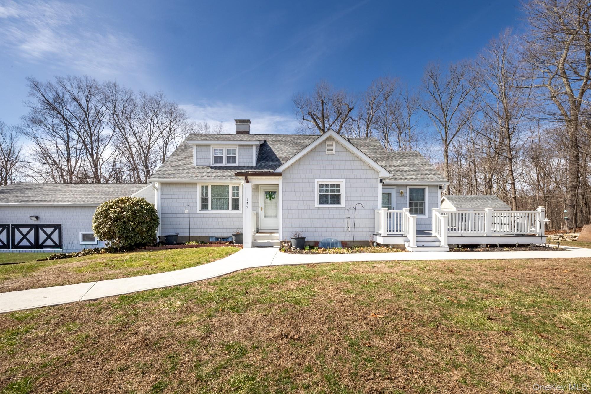 Welcome to 179 Austin Road which sits on over 1 Acre of Land! This thoughtfully upgraded 3-bedroom, 2-bath Cape Cod style home blends modern comfort with meticulous craftsmanship throughout. Both the main home and the pole-barn garage have been outfitted with brand-new roofs protected by full ice shielding, setting the stage for the extensive improvements that follow. The exterior has been completely refreshed with vinyl cedar-style siding installed over 1" insulation, copper chimney flashing, and a newly constructed shed designed to complement the home’s architecture. A sweeping wraparound Trex deck—finished with a contrasting border, white vinyl railings, and pressure-treated framing—creates an inviting outdoor retreat. Additional site upgrades include a new sidewalk, an underground 2000-gallon cistern system, and 6" gutters installed across the property. Inside, a newly built 1st Floor Primary Ensuite brings a luxurious feel to the home. Its private bath showcases Italian tile, a glass-enclosed shower, a contemporary vanity, and efficient LED lighting. The original bathroom has also been renewed with a Bath Fitter system. The second 1st Floor bedroom offers direct access to the deck through newly installed exterior doors. Comfort is further enhanced in the new edition by a 1. 5-ton ceiling-mounted split A/C and heat pump and LED lighting. Relax in this lovely living room which centers around a gas fireplace. This home is equipped with both central air conditioning and a split system. The property is supported by a 22kW whole-house generator with an automatic transfer switch, three 100-gallon propane tanks plus a dedicated 60-gallon tank for the fireplace, copper roofing accents on the bay window and front porch, real brass exterior lighting, and new foundation doors in the addition. Storage is abundant with two sheds, two large storage container acts as a shed, and an additional matching exterior shed. Every improvement reflects careful planning and long-term durability, resulting in a home that feels fresh, refined, and fully prepared for its next owner. What a treasure! Call to schedule a showing today!