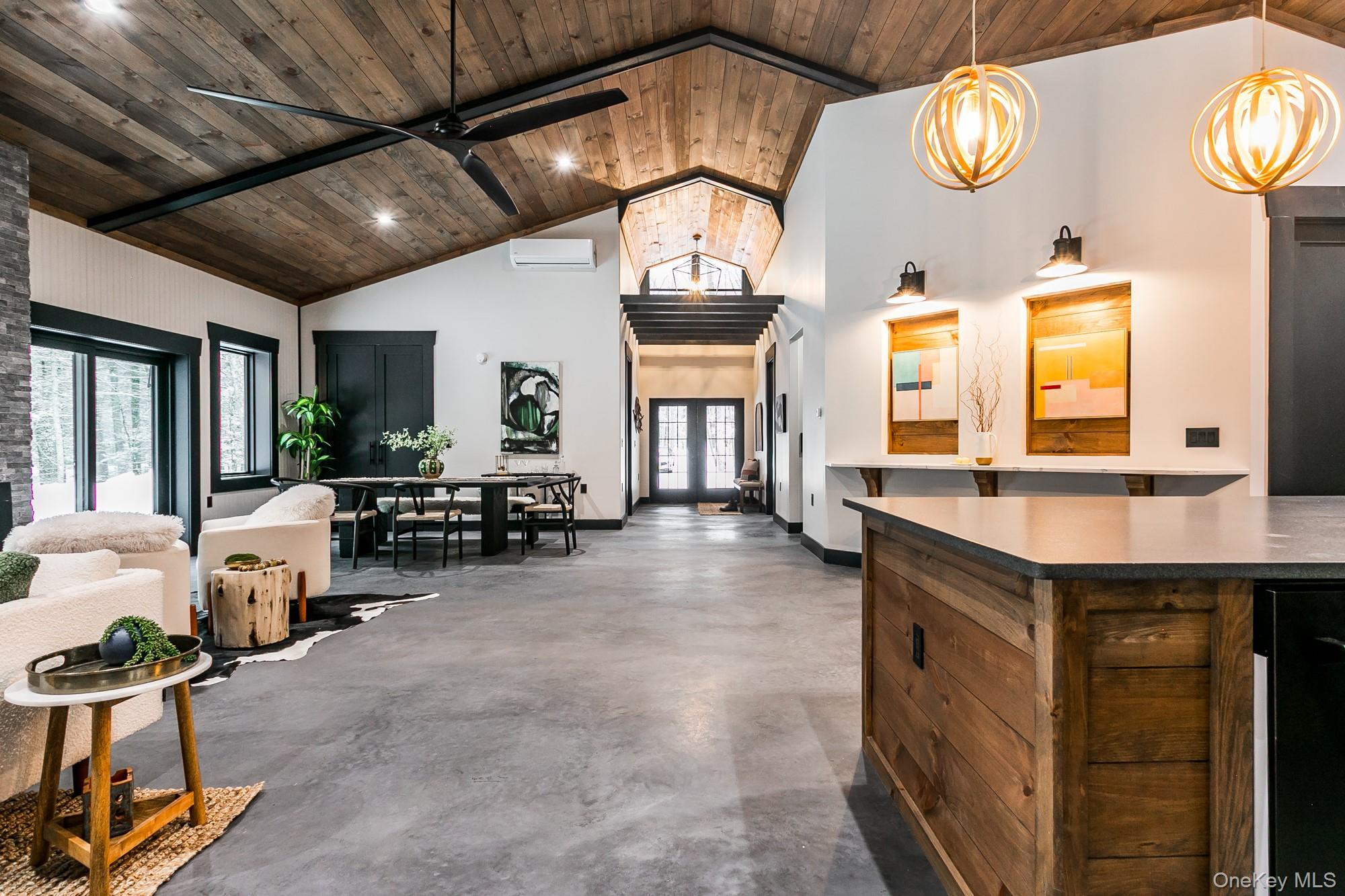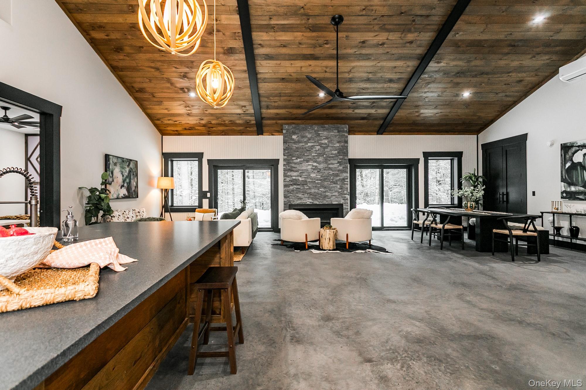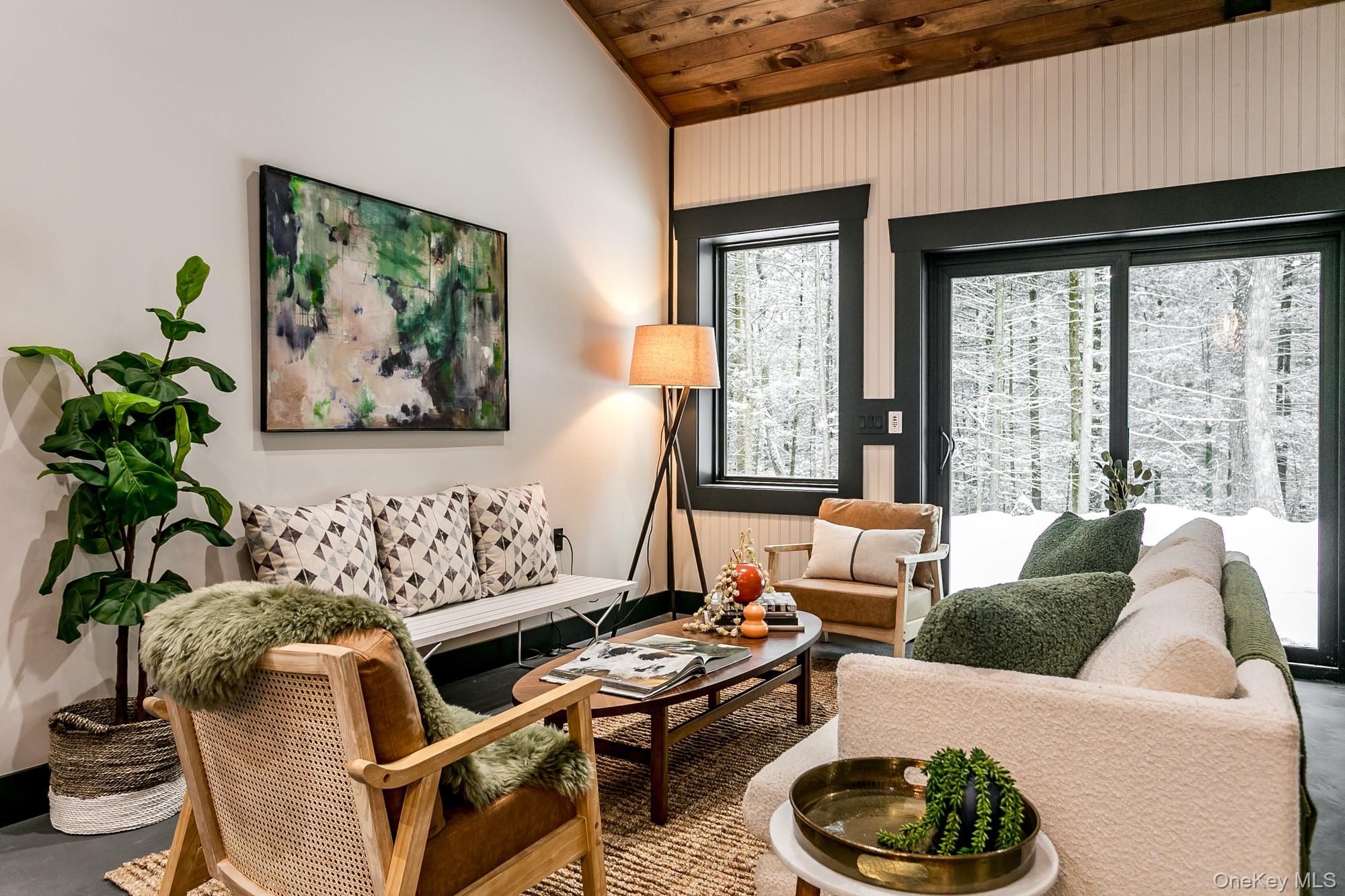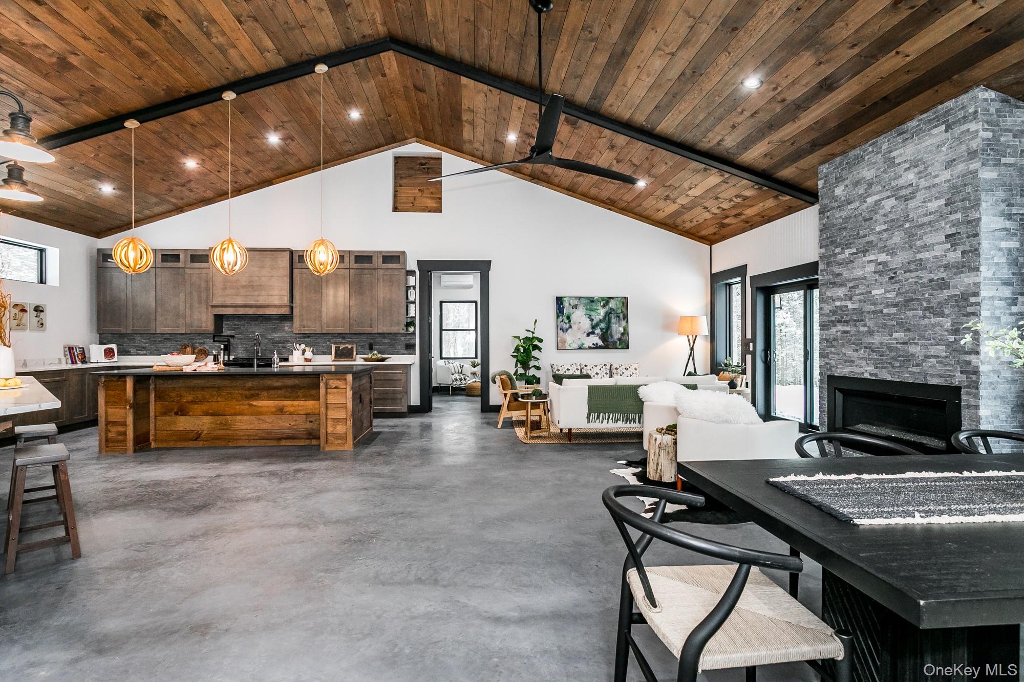 **A/O 3/23**Your oasis away from the hustle and bustle is finally here. Identified as Walnut Woods for its scenic outdoor exposure, this 2, 160 square foot new construction home boasts 3-bedrooms and 2-bathrooms. Its open concept, single-level living space is exactly what you have been waiting for. Crafted and curated by Hamlet Builders, the Black Diamond model is nothing but a complete display of upscale excellence. Arriving on site, you will recognize the outdoor living space ready for rocking chairs on your covered porch and tremendous stamped concrete patio wrapping around the home. Greeted by 18-foot cathedral ceilings and paired with a pergola style entryway, the eye instantly catches the bold accents displayed in the entire home. 2 bedrooms towards the front of the house fit for guests, office space or even full-time living usage ensure the split floor plan is perfect for working from home, or guests separated from the primary bedroom. Moving forward into the main living area, your eye will instantly recognize the wood-stained ceilings, upscale Modern Forms lighting and a ventless propane fireplace for all to gather. Accompanied by black radiant heated, concrete finished floors, exorbitant shaker doors and trim an incredible kitchen suited for a chef, this home really checks all the marks. Enjoy cooking with top-of-the-line Z-LINE appliances, plenty of counter space and even a fully lit breakfast bar, while enjoying the open concept of this home. The primary suite is more like a retreat with a tastefully designed diamond-shaped accent wall, double closets and a step-down, marble-tiled rain shower with 7-additional heads creating your own spa right in your primary bathroom. Bringing the outdoors in, enjoy secluded nature views of the 2-acre parcel though the double sliding glass doors. Moving outside, enjoy plenty of exterior space to have an outdoor kitchen and entertaining area perfect for many summer memories to come on your stamped concrete patio. 805 Kripplebush Road backs up to over 100 acres of privately owned land, making the backyard a place where you can truly be in nature. Conveniently located, this home is just a short drive to local hiking hotspots, scenic trails, great restaurants and breweries and everything the Hudson Valley has to offer.