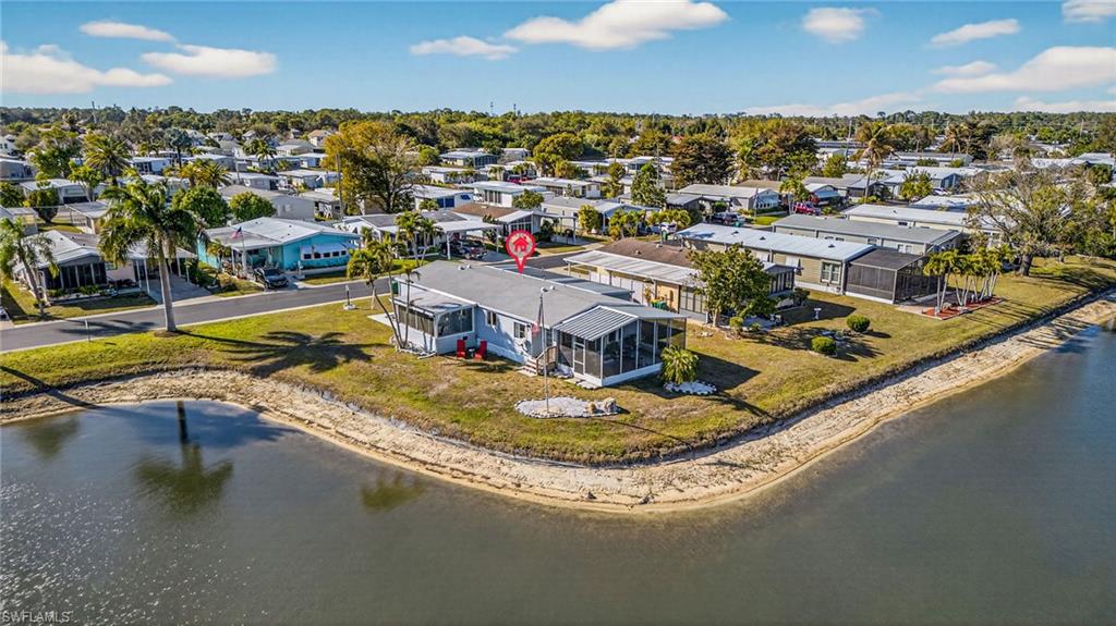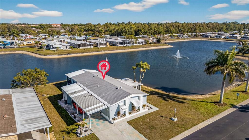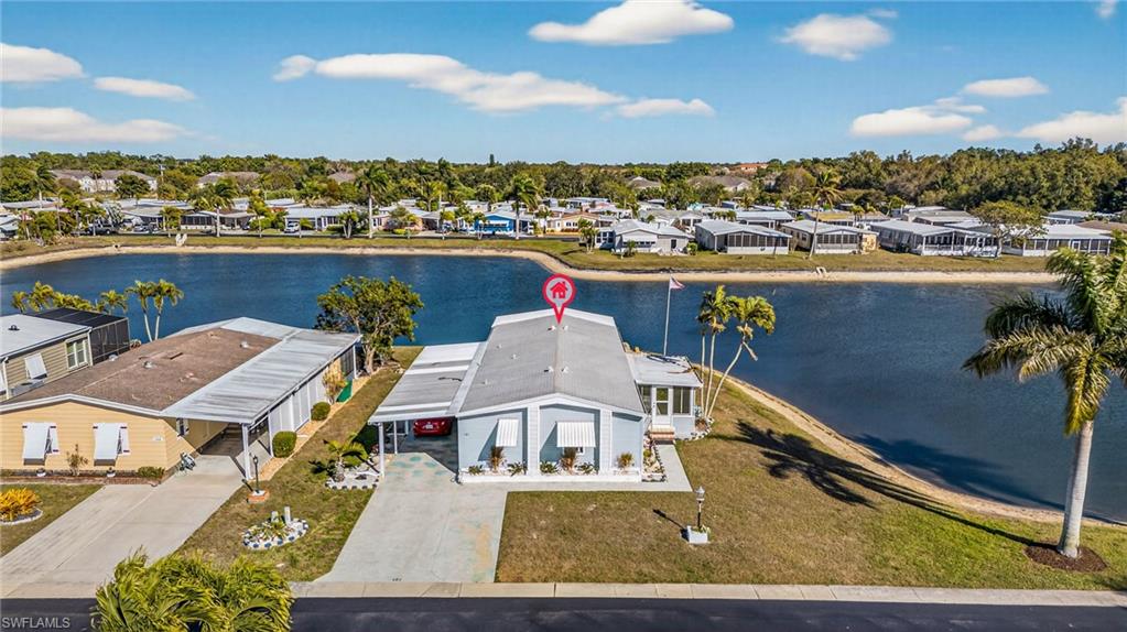 Welcome to one of the most serene settings in Windjammer Village of Naples, a vibrant 55+ community known for its active lifestyle and friendly atmosphere. Perfectly positioned along a tranquil pond, this beautifully upgraded two-bedroom, two-bath home offers stunning water views from nearly every vantage point—including the kitchen, primary bedroom, side lanai and lower level screened lanai.