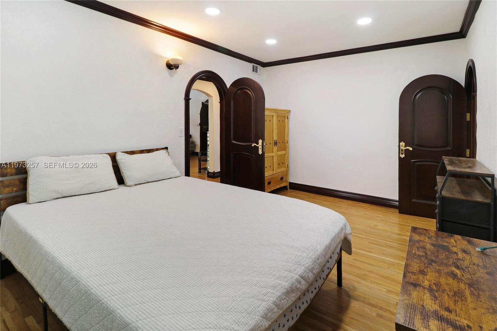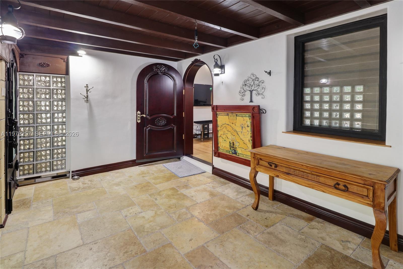 Nestled in the heart of Miami Springs, this beautifully updated residence seamlessly blends classic charm with modern convenience. Refinished solid oak hardwood floors, rich mahogany cabinetry, and elegant arched mahogany doors create a warm, timeless ambiance throughout the home.
