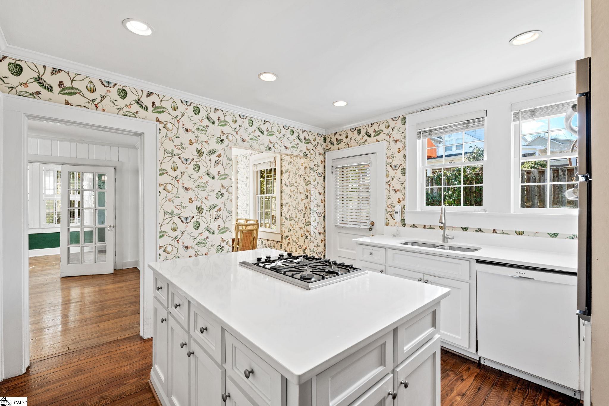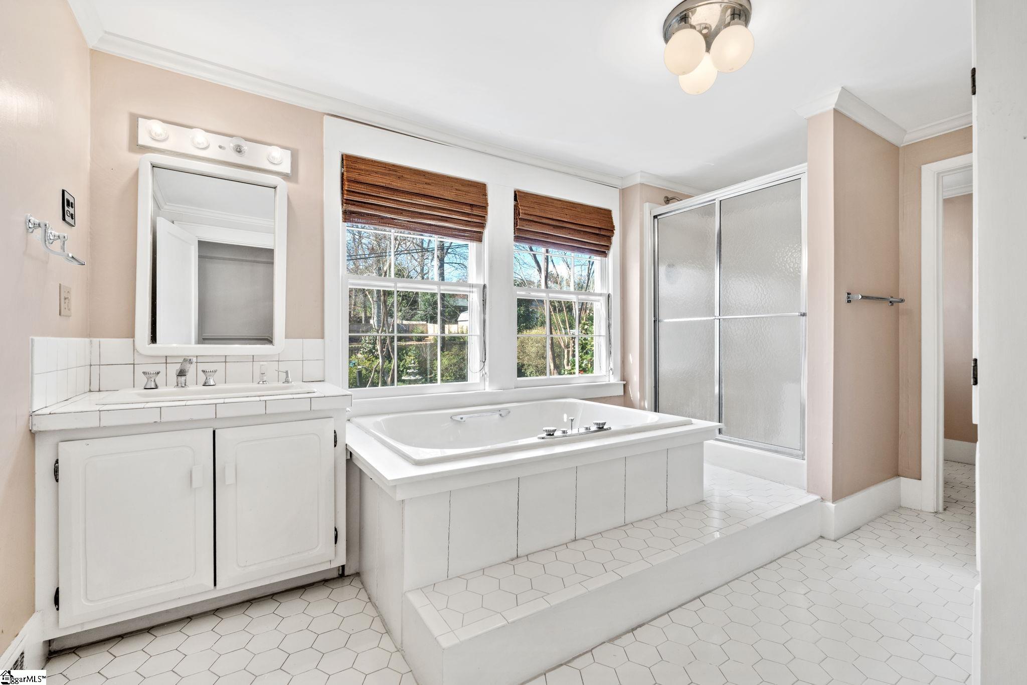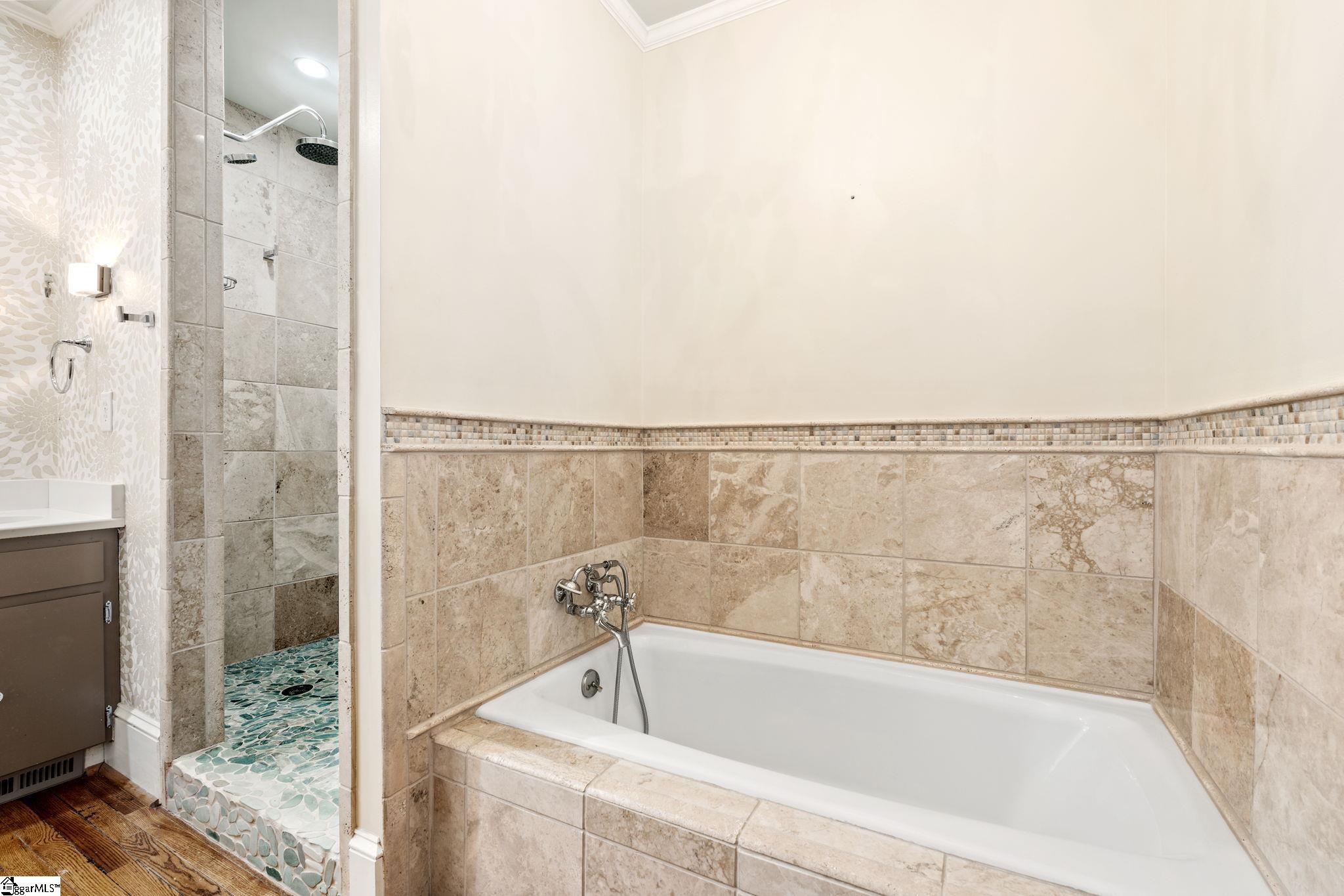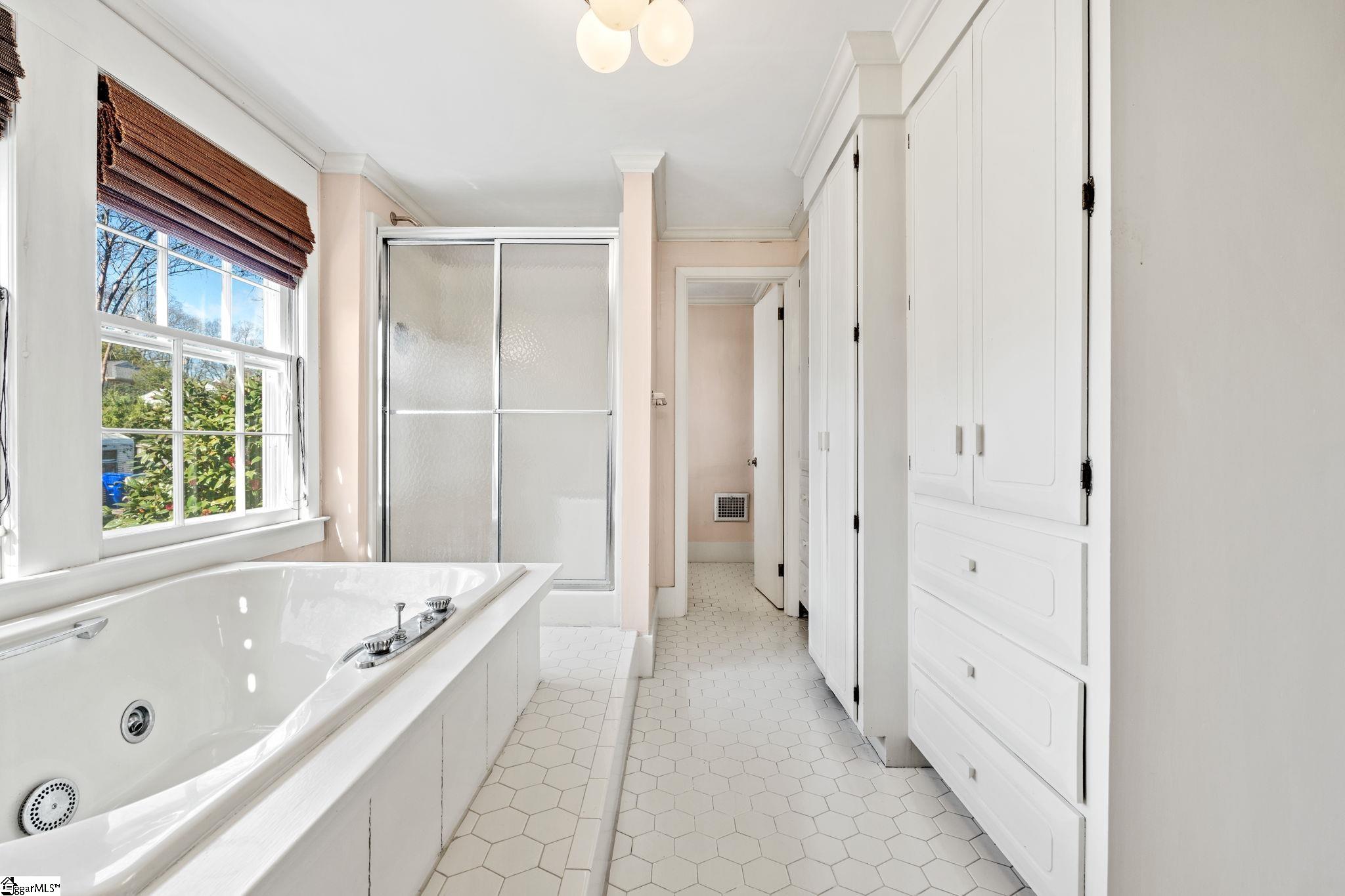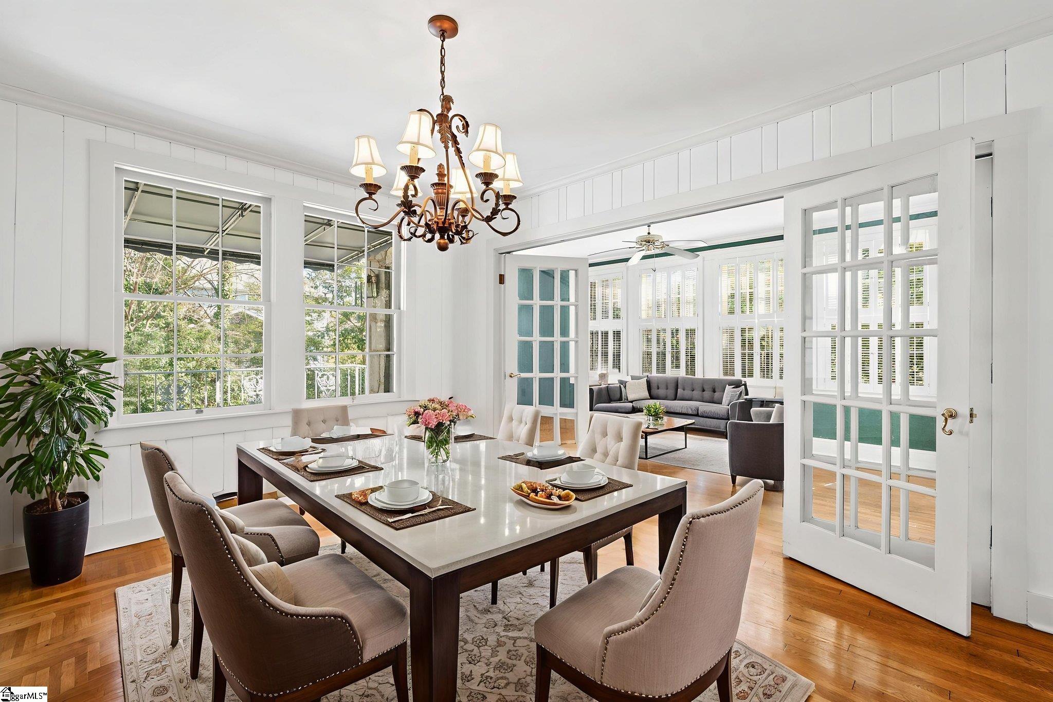 Timeless charm meets classic Greenville character at 47 Douglas Drive. This stately stone home sits gracefully among mature trees and lush landscaping, offering privacy and tranquility just moments from Greenville Country Club and Augusta Road. The granite façade and classic architectural details showcase craftsmanship rarely found today. A welcoming front porch with wrought-iron railings and a cozy awning creates the perfect spot to enjoy morning coffee or greet neighbors. Inside, you’ll find light-filled living spaces that blend warmth and elegance. The living room has a stone fireplace, hardwood floors, and crown molding, perfect for relaxing or hosting guests. A formal dining room with French doors opens to a cheerful sitting room, while the updated kitchen offers vintage charm and modern convenience with white cabinetry, solid-surface countertops, and abundant natural light. The main-level owner’s suite is a peaceful retreat with two walk-in closets and an updated bath featuring a double vanity, glass-enclosed shower, and soaking tub. Upstairs there are two additional bedrooms filled with character, plus a full bath with both tub and shower—perfect for family or guests. Outdoors, a private courtyard-style deck provides a serene space for entertaining or relaxing, surrounded by lush greenery and built-in bench seating. From its historic stonework to its ideal Augusta Road location, this home embodies the very best of Greenville’s timeless character and charm.