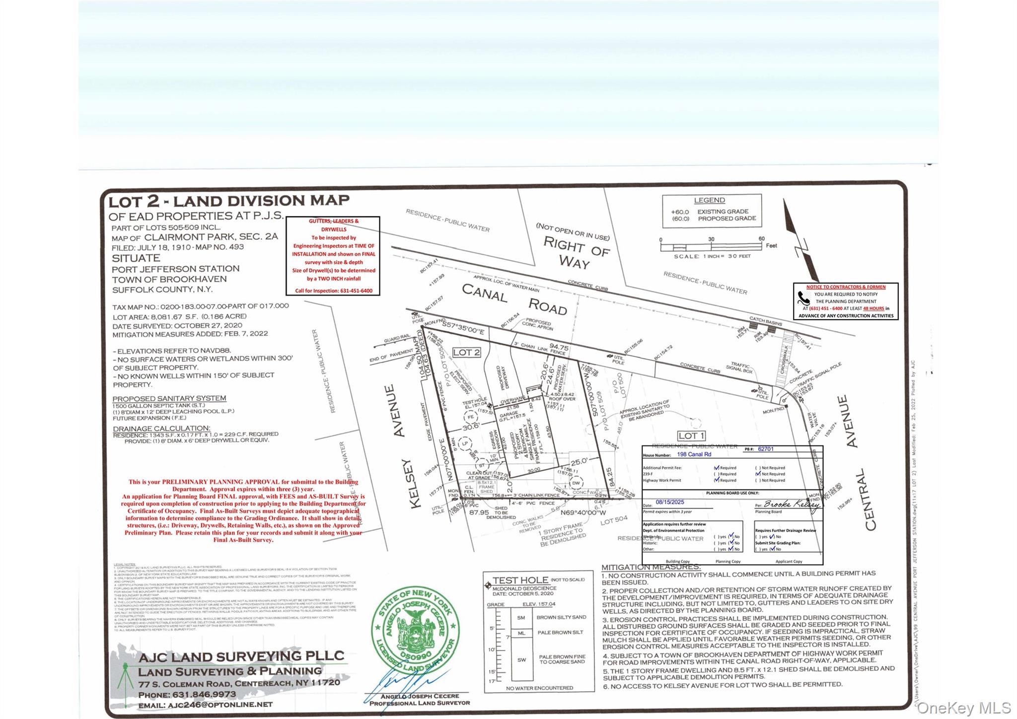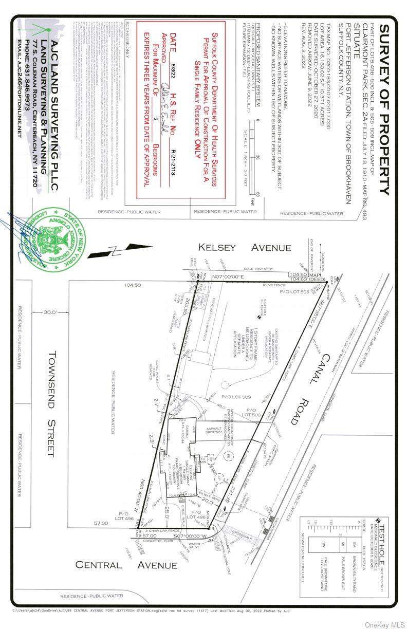 Incredible opportunity calling all builders, developers, and end users — this is a 100% shovel-ready, single and separate building lot connected to 99 Central Ave, Port Jefferson Station, with your future curb cut on Canal Road and a new address to be assigned for a 2100 square-foot house not including garage. Building permits are expected within weeks, allowing you to avoid the hassle of navigating Brookhaven delays and lengthy approval timelines. The property includes stamped plans and full Board of Health approval, eliminating the red tape and positioning you to move directly into construction. Situated on approximately 8, 000 square feet in the Comsewogue School District, this lot is approved for a three-bedroom home with an additional first-floor office or optional bedroom, two full baths, one half bath, and a full basement with outside entrance. The only responsibility for the builder will be removal of the existing cottage, creating a streamlined, high-upside project where you can break ground quickly and capitalize on a rare ready-to-build opportunity. House is turned front door faces Kelsey