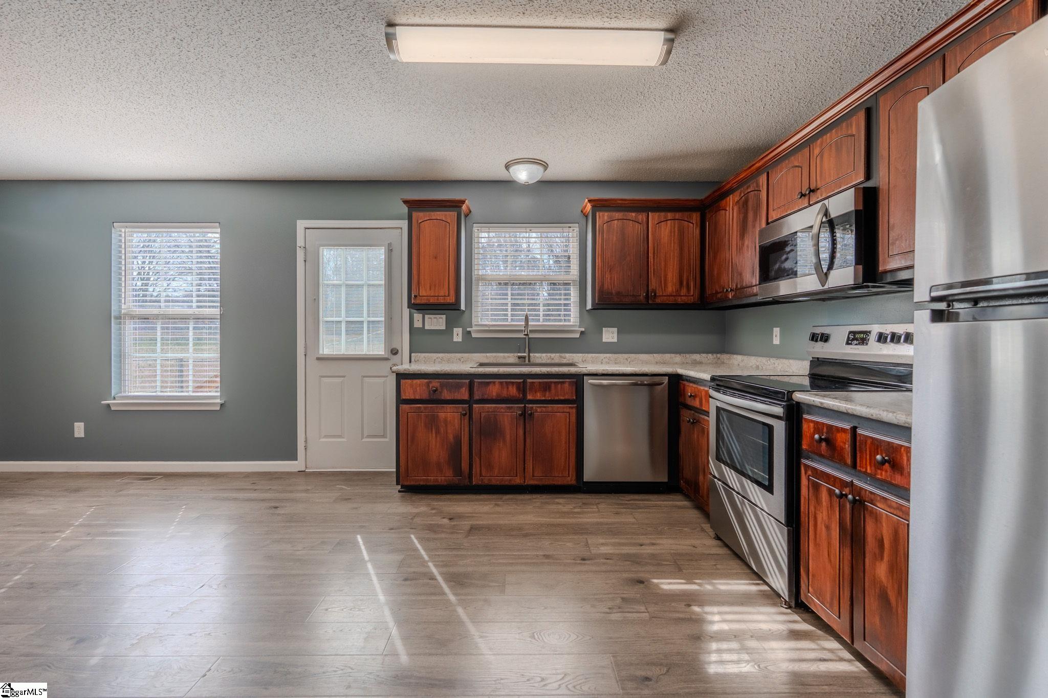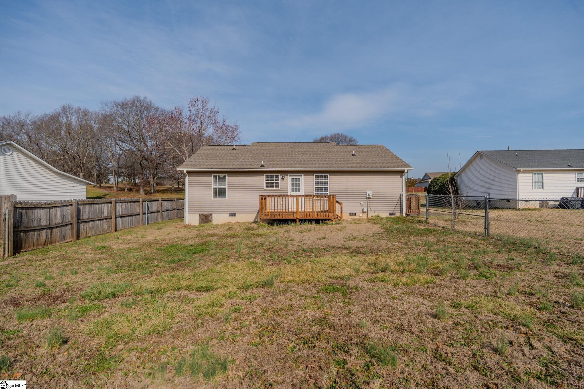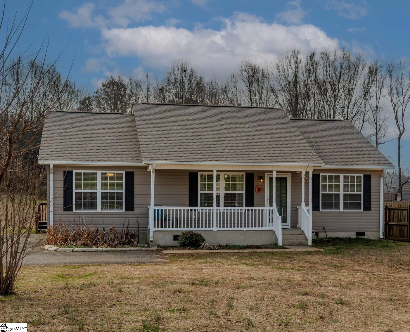 Welcome home to this beautifully maintained property featuring a large front yard with a classic white picket fence and a charming front porch perfect for relaxing evenings. Step inside to a pretty living room filled with natural light from a large front window, offering plenty of space for gathering and entertaining. Attractive vinyl flooring runs throughout the main living areas, adding both style and durability. The kitchen is well-equipped with stainless steel appliances, including a built-in microwave and dishwasher. You'll love the generous counter space and the flexibility to add an island or breakfast bar. The adjoining dining area is thoughtfully arranged to accommodate a large table with ease. The spacious primary suite is truly oversized, offering enough room for a sitting area. It features a private bath and a walk-in closet. A desirable split-bedroom floor plan places two additional bedrooms and a guest bath on the opposite side of the home for added privacy. Additional highlights include: Laundry room and mud room that can be closed off, Fresh interior paint, New vinyl flooring in the mud/laundry room, Roof replaced in 2017, and HVAC system replaced in 2021. Enjoy the large fenced backyard with additional property beyond the fence line—ideal for entertaining, gardening, or simply relaxing. Beautiful blooming flowers and mature landscaping create a warm welcome. Conveniently located just 1 mile from the lovely town of Inman, and 20 minutes to Spartanburg. 25 minutes to Greenville-Spartanburg International Airport. 30 minutes to BMW and 40 minutes to Greenville. This move-in ready home offers space, comfort, and convenience—all in a fantastic location.