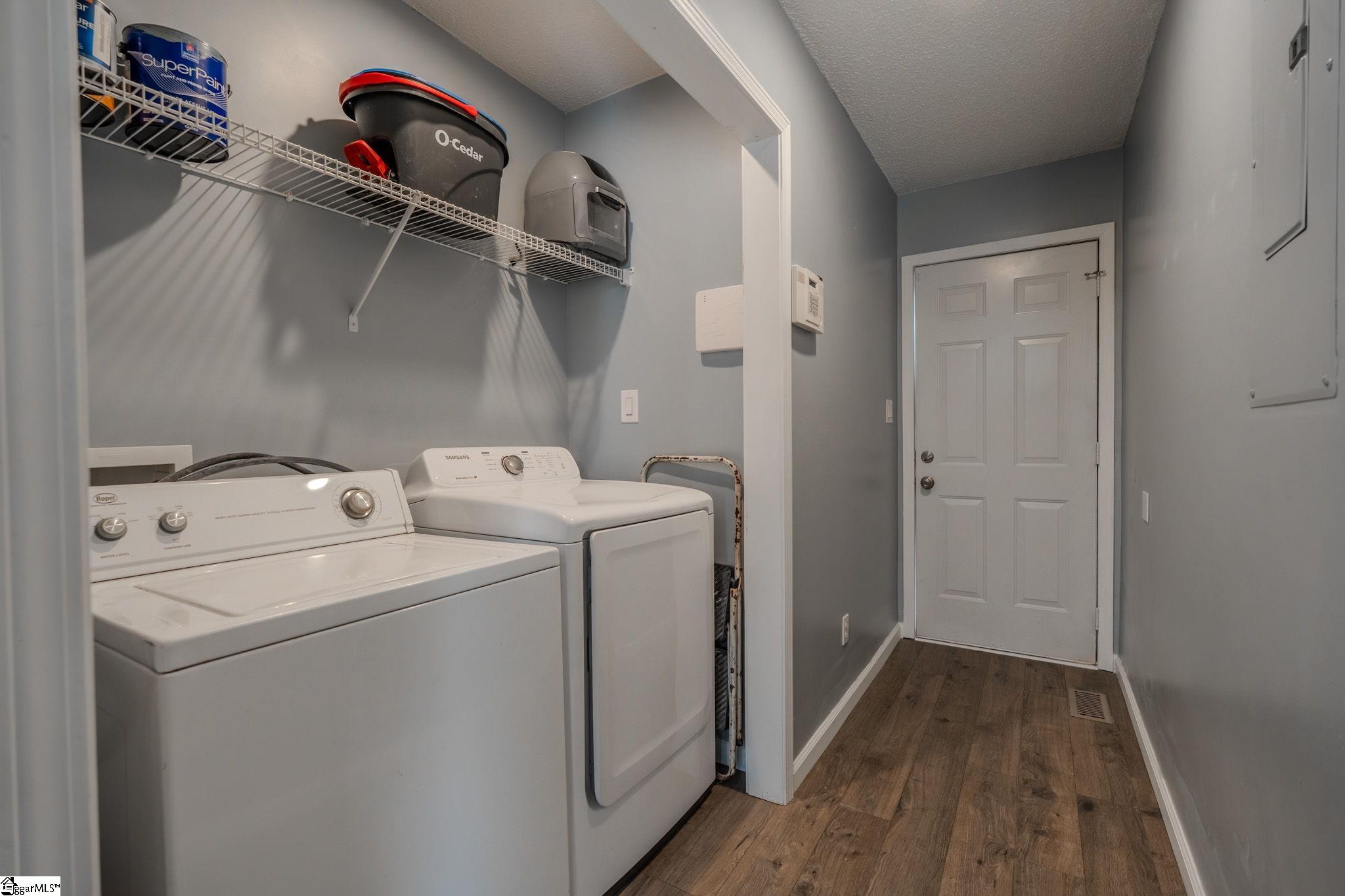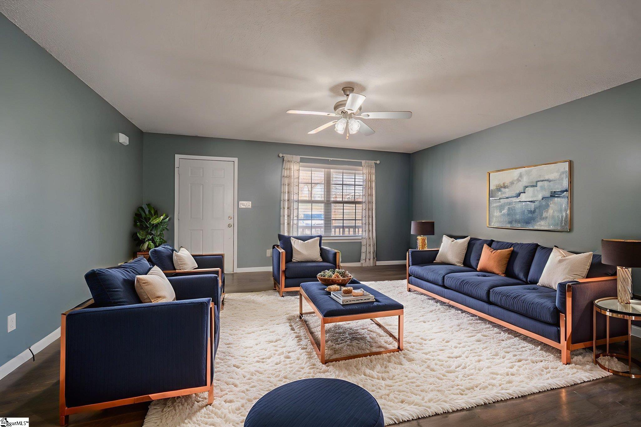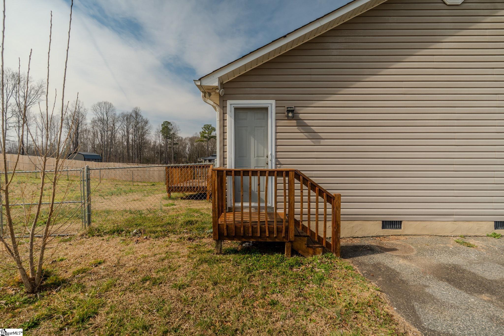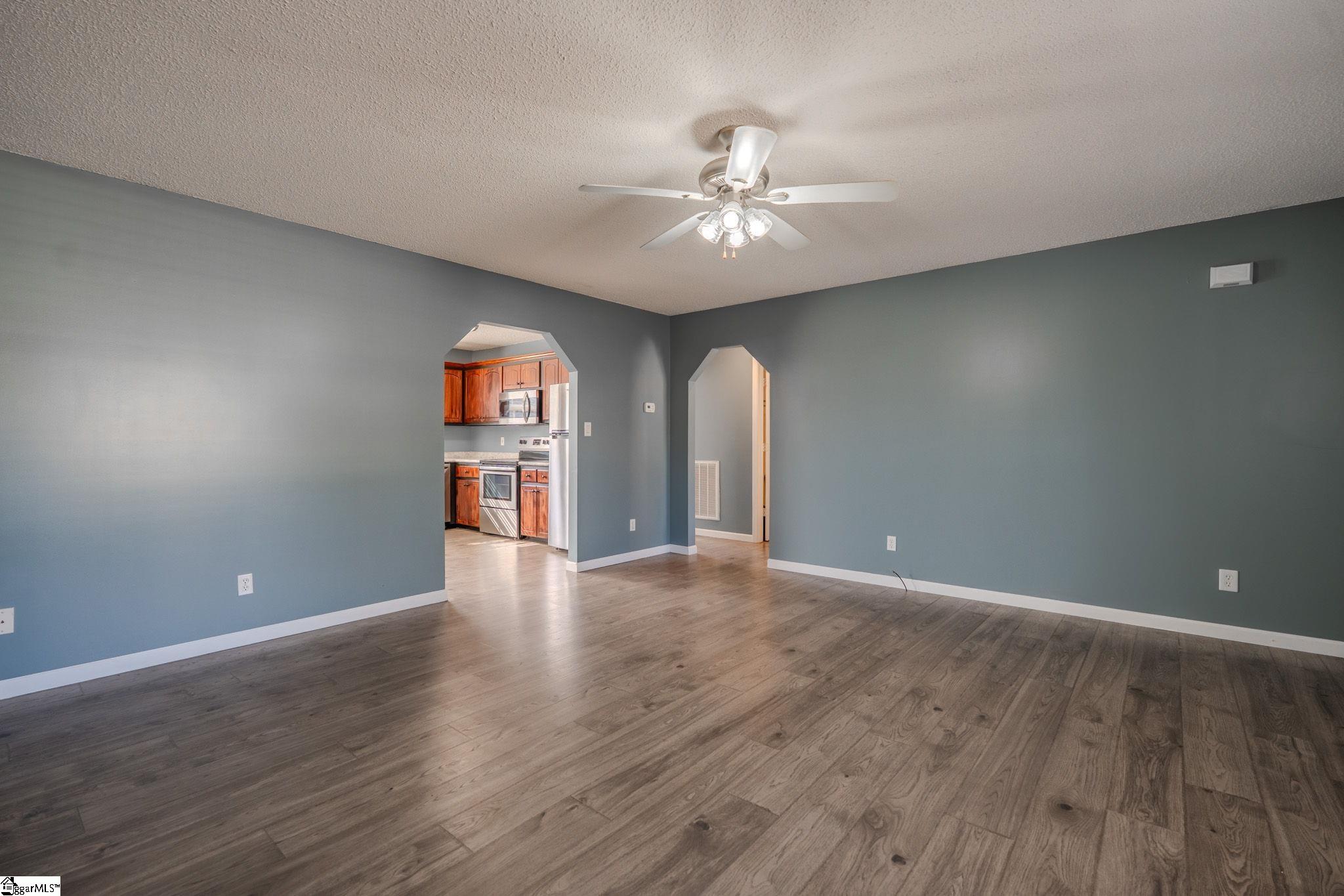 Welcome home to this beautifully maintained property featuring a large front yard with a classic white picket fence and a charming front porch perfect for relaxing evenings. Step inside to a pretty living room filled with natural light from a large front window, offering plenty of space for gathering and entertaining. Attractive vinyl flooring runs throughout the main living areas, adding both style and durability. The kitchen is well-equipped with stainless steel appliances, including a built-in microwave and dishwasher. You'll love the generous counter space and the flexibility to add an island or breakfast bar. The adjoining dining area is thoughtfully arranged to accommodate a large table with ease. The spacious primary suite is truly oversized, offering enough room for a sitting area. It features a private bath and a walk-in closet. A desirable split-bedroom floor plan places two additional bedrooms and a guest bath on the opposite side of the home for added privacy. Additional highlights include: Laundry room and mud room that can be closed off, Fresh interior paint, New vinyl flooring in the mud/laundry room, Roof replaced in 2017, and HVAC system replaced in 2021. Enjoy the large fenced backyard with additional property beyond the fence line—ideal for entertaining, gardening, or simply relaxing. Beautiful blooming flowers and mature landscaping create a warm welcome. Conveniently located just 1 mile from the lovely town of Inman, and 20 minutes to Spartanburg. 25 minutes to Greenville-Spartanburg International Airport. 30 minutes to BMW and 40 minutes to Greenville. This move-in ready home offers space, comfort, and convenience—all in a fantastic location.