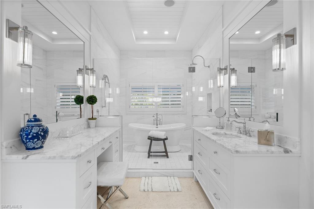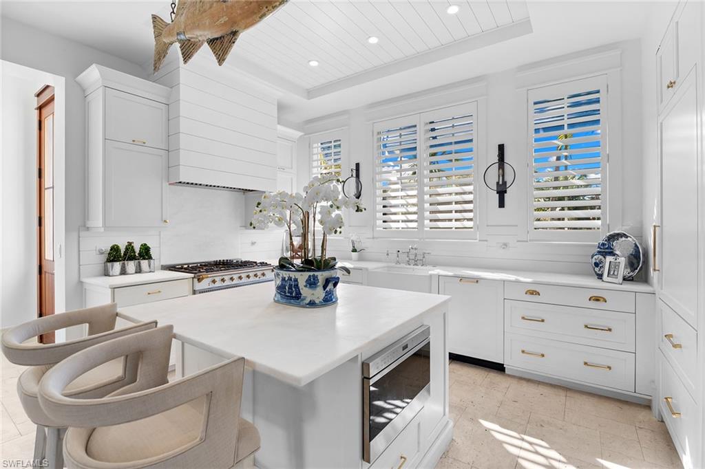 Ideally positioned on a sun-filled corner lot in the heart of Old Naples, this exceptional 2020-built residence blends timeless coastal elegance with thoughtful modern design. Just one block from Naples Bay and moments to dining and boutiques of 3rd Street South and 5th Avenue South, the location offers the best of accessible Naples living. Designed by MHK Architecture, the home is bright, open, and effortlessly inviting. Expansive windows flood the interiors with natural light, while refined stone flooring and curated finishes create a warm yet sophisticated aesthetic throughout. The thoughtfully designed floor plan features four bedrooms, including two luxurious primary suites, one on the first floor and a private retreat upstairs, offering flexibility for guests and multigenerational living. The main living spaces flow seamlessly to the outdoor area, embracing indoor-outdoor living. At the heart of the home, the chef’s kitchen is stunning and functional, appointed with marble countertops, a statement Lacanche range and oven, Sub-Zero refrigeration and custom cabinetry, a space equally suited for quiet mornings or lively entertaining. Outdoors, the western-exposure pool captures glowing afternoon light and vibrant Naples sunsets, while the corner lot setting enhances privacy and curb appeal. Lush landscaping and charming architectural details complete this coastal retreat. A rare opportunity to own a newer-construction home in Old Naples, just near Naples Bay and a short distance to the beach, fine dining and best of the Naples lifestyle.