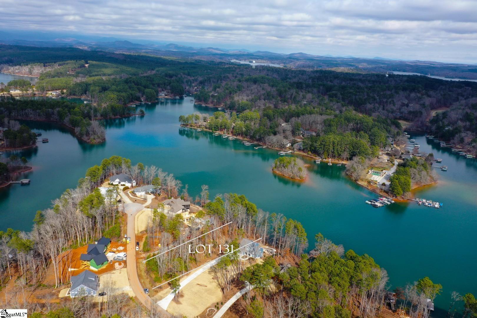 Welcome to Lot 131 Harbor Point a Lake Keowee waterfront property! This lot sits nicely above the water creating a commanding view of the area and its 115 feet of waterfront below. The home to the left is under construction while the home on the right is already in place, giving you vital information as to where to place your dream home. Full sized double decker dock has been applied for along with application for a 4-bedroom septic system. Harbor Point has 151 lots, the majority of which are waterfront but also boasts some interior and view lots. The homeowner’s association is in the process of building Pickel ball courts to go along with the community boat storage area. Seller to do a 1031 exchange with this property. Lot lines clearly marked with orange tape. Trail has been cut into property for easy viewing.