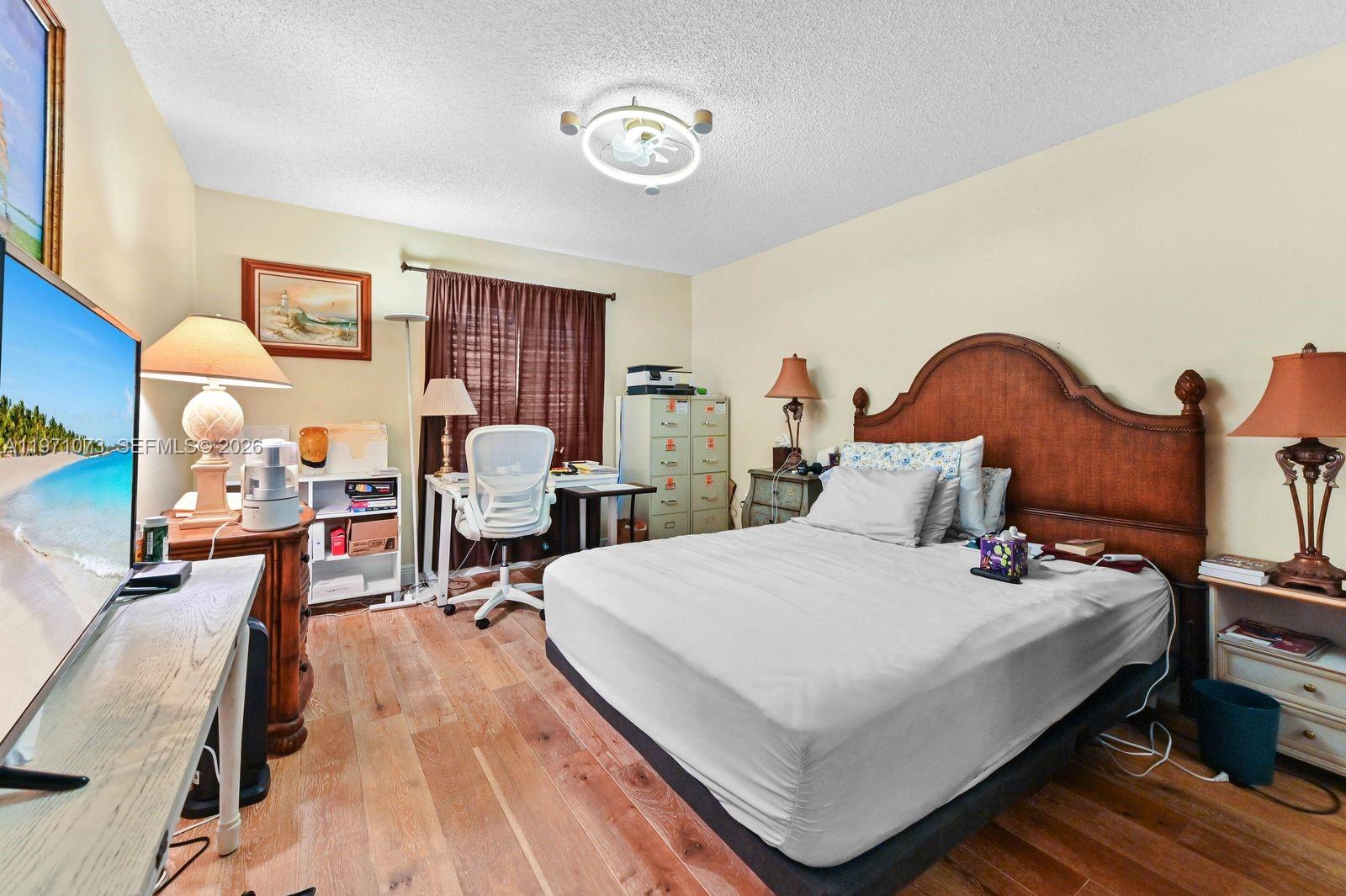 The home has recently been renovated, including updated kitchen with new quartz countertops, new cabinetry and stainless steel appliances. Both bathrooms have also recently been updated, including new flooring, walk-in showers new vanities, with high end finishes. All windows and sliding glass doors are new high quality insulated impact glass. Home is quite spacious with vaulted ceilings The flooring throughout the main living area is high quality engineered hardwood. There is a very nice, well maintained private, heated pool and pool deck located in the backyard area of the property. The property has a spacious, airconditioned 2 car garage.