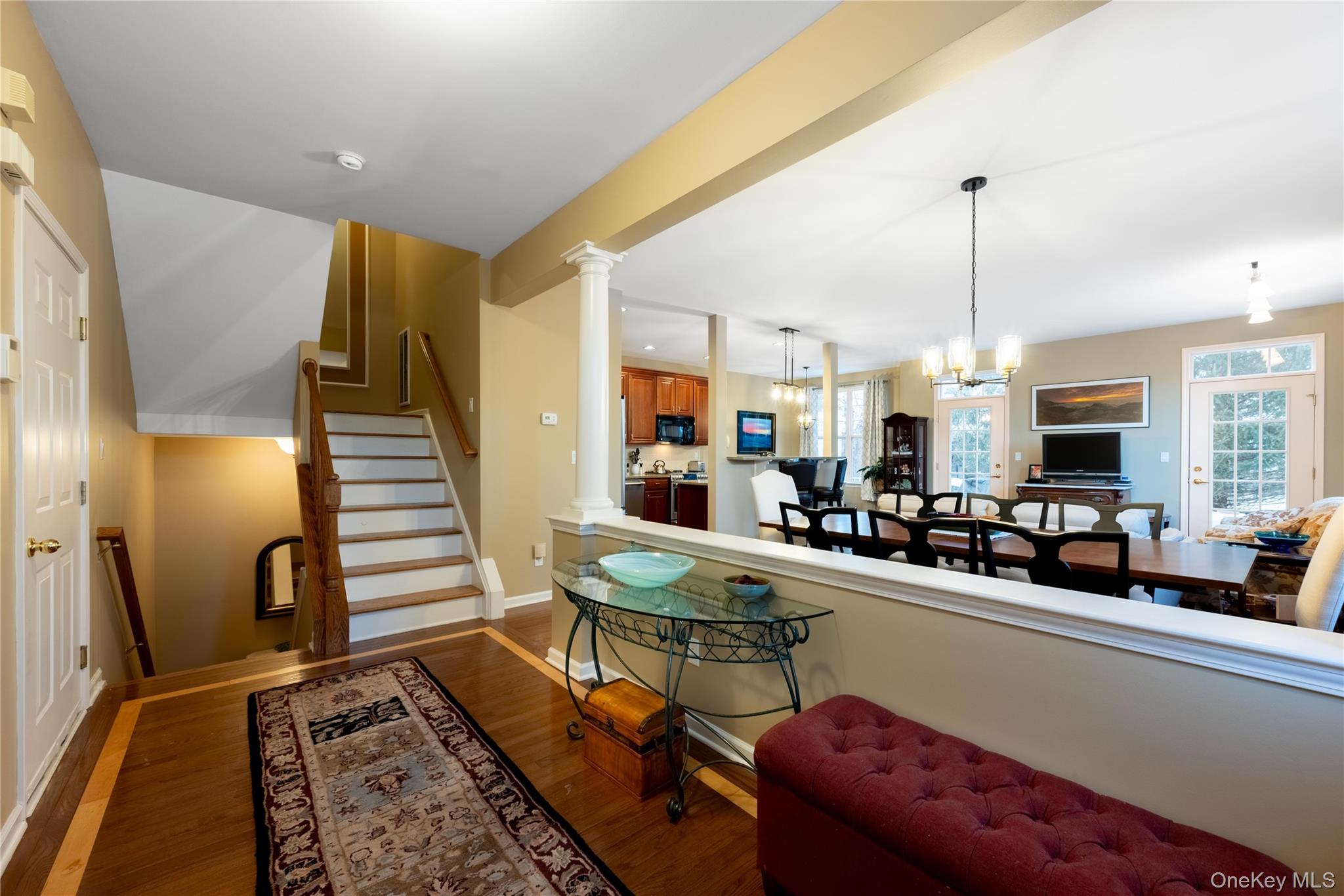 This beautiful, and very well maintained four level condo is situated not far from the entrance gate and next to a parking area for visitors. Wood floors throughout the first floor and second floor hall. The carpet in the bedrooms is new. The 4th level office is a great private space. Two transom topped french doors in the living room lead out to a private paver patio surrounded by tall evergreens. The finished basement has two large egress window and storage closets. Perfect recreation space. The kitchen has an eating area plus island with raised, seated area. The dining and living rooms share an open floor plan. This is a gated community with pool, club house, work out room and playground. In a perfect location for commuting, shopping and hospital, it's a must have!