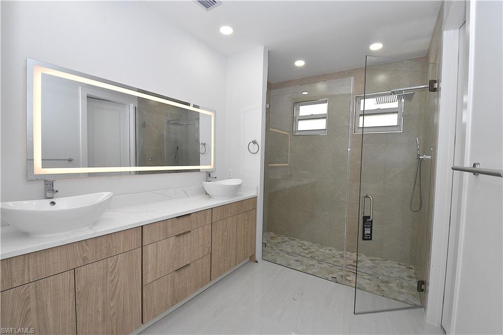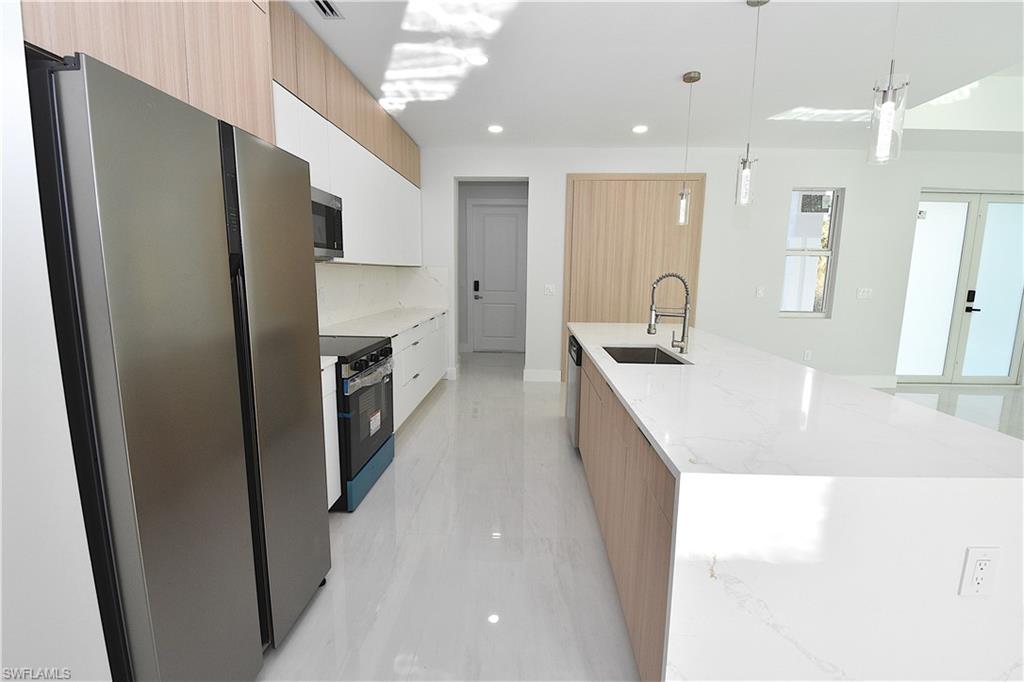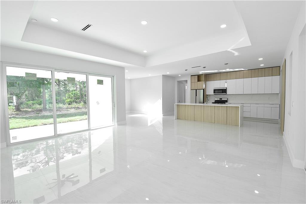 Spacious and beautiful 4 bedrooms home with 2 bathrooms and two car garage and built on a half acre lot! surrounded with nature, tall trees and a welcoming rural feeling. Located in a no-trough road, Very close to Richmond Ave N. Featuring concrete paver driveway, automatic irrigation, exterior soffit lights at front of the house. Very elegant and tall entrance. Impact windows and doors. Front doors have privacy frosted glass! The lanai door is a triple sliding door. The garage has an additional side door. The interior features over 2000 square feet of area, large great room , formal dining, a large kitchen island with quartz top and a sink in it. Nice stainless steel kitchen appliances, and two pantries. Laundry area in house. Large format tile floors, 96" interior doors and smooth wall finish. The primary bathroom features dual basin sinks over a quartz top and well crafted vanity cabinet. Shower area is completely tiled with frame-less glass door. The Guest bath features a combination of tub and shower with a glass sliding door, basin sink, and walls completely tiled. All bedrooms have ceiling fans and spacious closets. Electronic locks at exterior doors and many more features. Visit this home and explore all the unsurpassed features it offers! Make your appointment today!