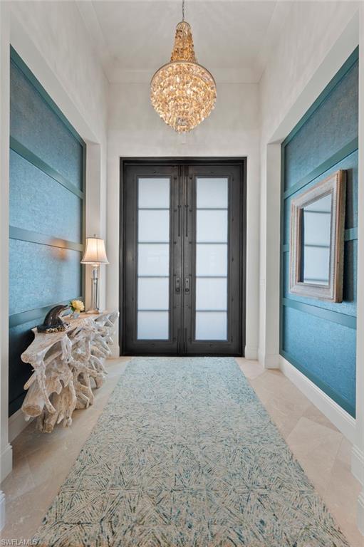 IMMEDIATE GOLF MEMBERSHIP AVAILABLE-Experience refined luxury in this stunning custom residence by Stock Development, where exceptional craftmanship meets elegant design and serene water views. Through grand double glass entry doors, soaring ceilings welcome you into a spectacular open-concept living space that seamlessly connects the living room, dining room, and chef's kitchen with tranquil outdoor vistas. Designed for both beauty and function, the home features impact-resistant glass, a full-house generator, and an open floor plan ideal for effortless entertaining. The chef’s kitchen impresses with a large seating island, wine refrigerator, oven, warming drawer, gas cooktop, and a spacious walk-in pantry. The generous primary suite includes a sitting area and French doors leading to the lanai. The spa-inspired bathroom offers double vanities, a large walk-in shower, and a luxurious soaking tub—an ideal retreat after a day on the golf course. Three additional en-suite bedrooms ensure comfort and privacy for guests. Outdoor living is elevated to resort-style perfection.