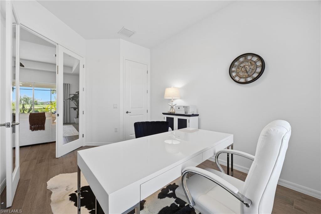 The oversized three-car garage has space for your vehicles and the included golf cart. Outside, pavered drives and manicured landscaping complete the curb appeal. As part of the National Golf & Country Club, homeowners enjoy a Gordon Lewis–designed 18-hole championship golf course, with deeded membership included. The resort campus offers a zero-entry pool, state-of-the-art fitness center with sauna, full-service spa, tennis and pickleball courts, and a clubhouse with indoor and outdoor dining. Nearby Naples and the town center of Ave Maria expand your dining and shopping options.
