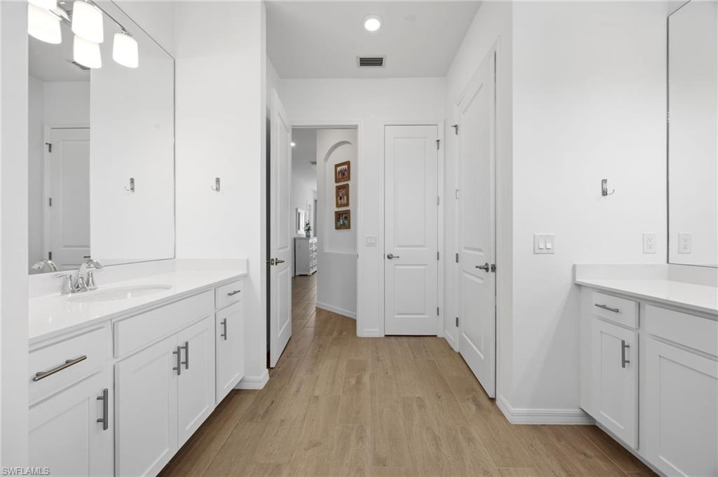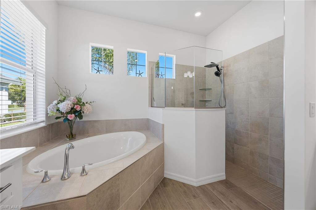 Set on a quiet cul-de-sac overlooking the 16th fairway, the residence enjoys southwest exposure and is just seconds from the Pro Shop. The lanai hosts a heated pool and spa, an electric storm screen and a Blackstone and gas grill. The owner’s suite features a huge walk-in closet and a spa-like bath with separate soaking tub and shower. Plank tile floors, neutral palate, laundry room with sink, and cabana bath add comfort and practicality, while a surge protector on the electric panel safeguards your appliances & electronics.