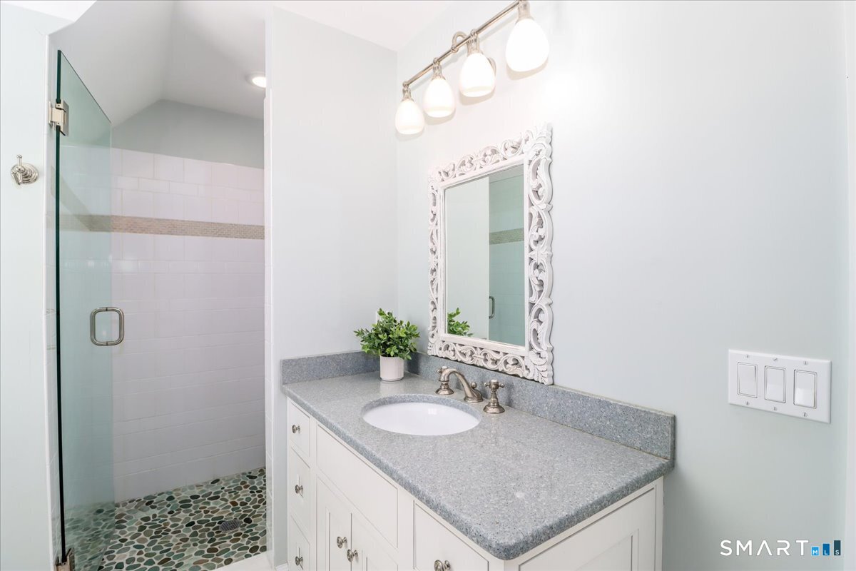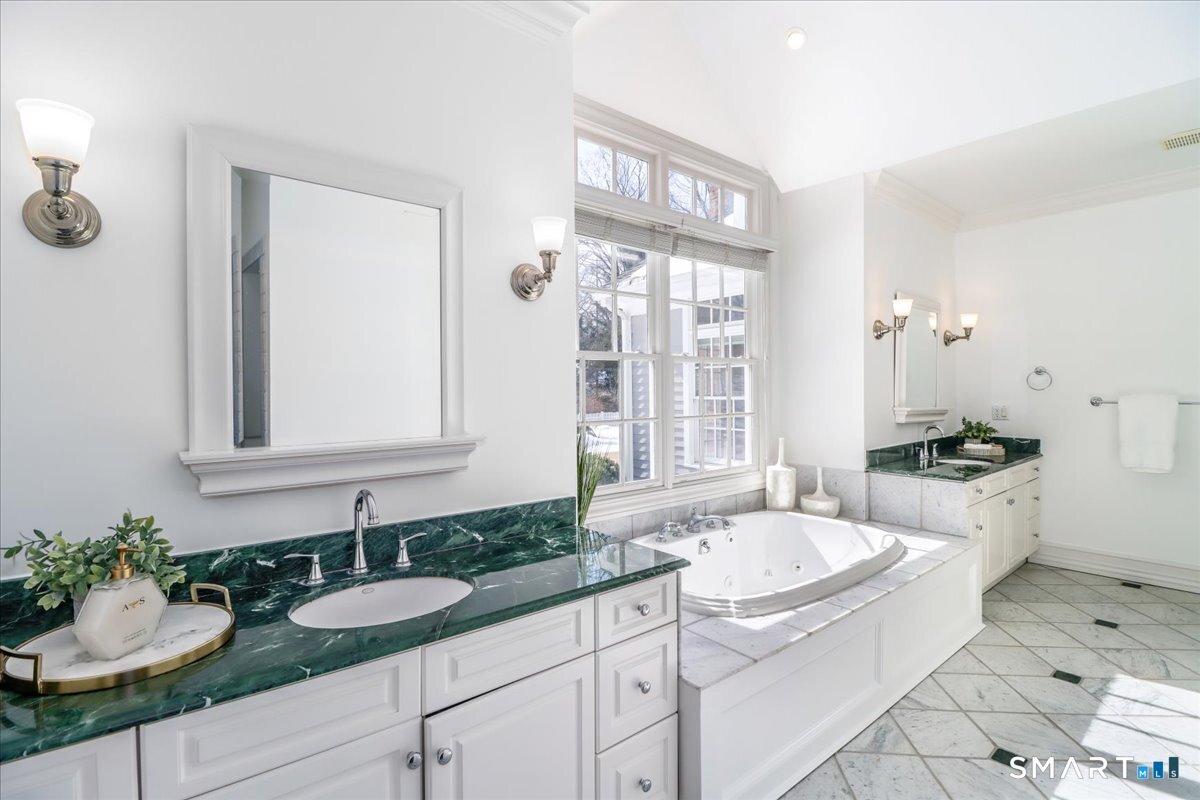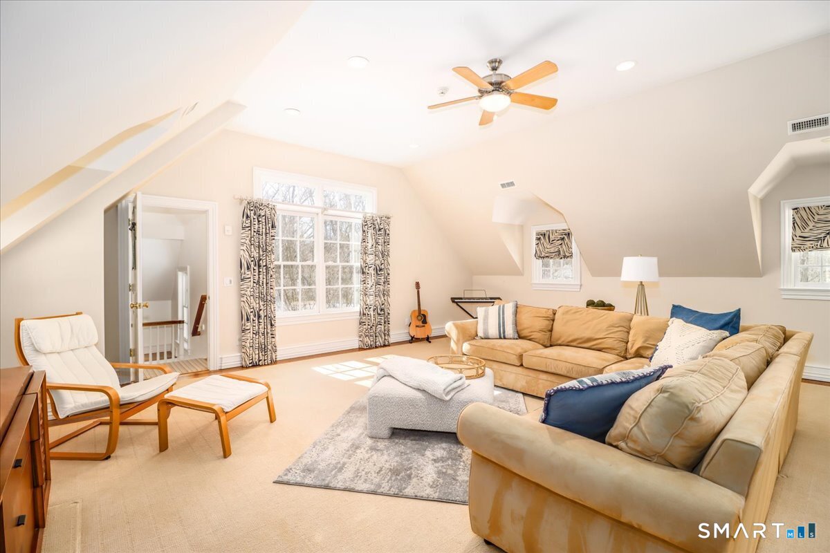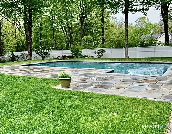 Set in a highly sought after south Wilton, CT cul de sac, this light-filled home offers refined design and effortless indoor-outdoor living. Rebuilt in 1999 and thoughtfully renovated in 2009, the open layout feels both expansive and welcoming. From the moment you enter, front-to-back and side-to-side sightlines, soaring ceilings, and oversized windows create an airy, elegant first impression. The gracious living room features custom millwork, a striking stone fireplace, dining area, and upper dormer windows that add architectural detail and natural light. The open kitchen with recent upgrades is designed for both daily living and entertaining, showcasing high-end appliances, custom cabinetry, and a walk-in pantry. A sun-filled breakfast room with built-ins and a wall of windows overlooks the beautifully landscaped, level backyard and in-ground gunite pool, offering a seamless connection to outdoor living. Multiple gathering spaces include a cozy family room with built-ins and stone fireplace, a flex space or recreation room, and a large second-floor bonus room. The first-floor primary suite provides privacy and convenience with 2 walk-in closets and a pristine full bath. A 5th bedroom, full bath off the bonus room is perfect for guests or extended living needs. Bluestone patios, private and level backyard, lighted basketball court, room for volleyball, soccer and more. Convenient to Wilton Center, Metro-North train service, major highways, schools, dining and shopping. Who doesn't love a front porch? This home delivers luxury, comfort, and lifestyle ease in one of Fairfield County's most desirable communities. Sun-Drenched unique colonial rambler with Private Backyard Oasis in a Top-Rated School District.