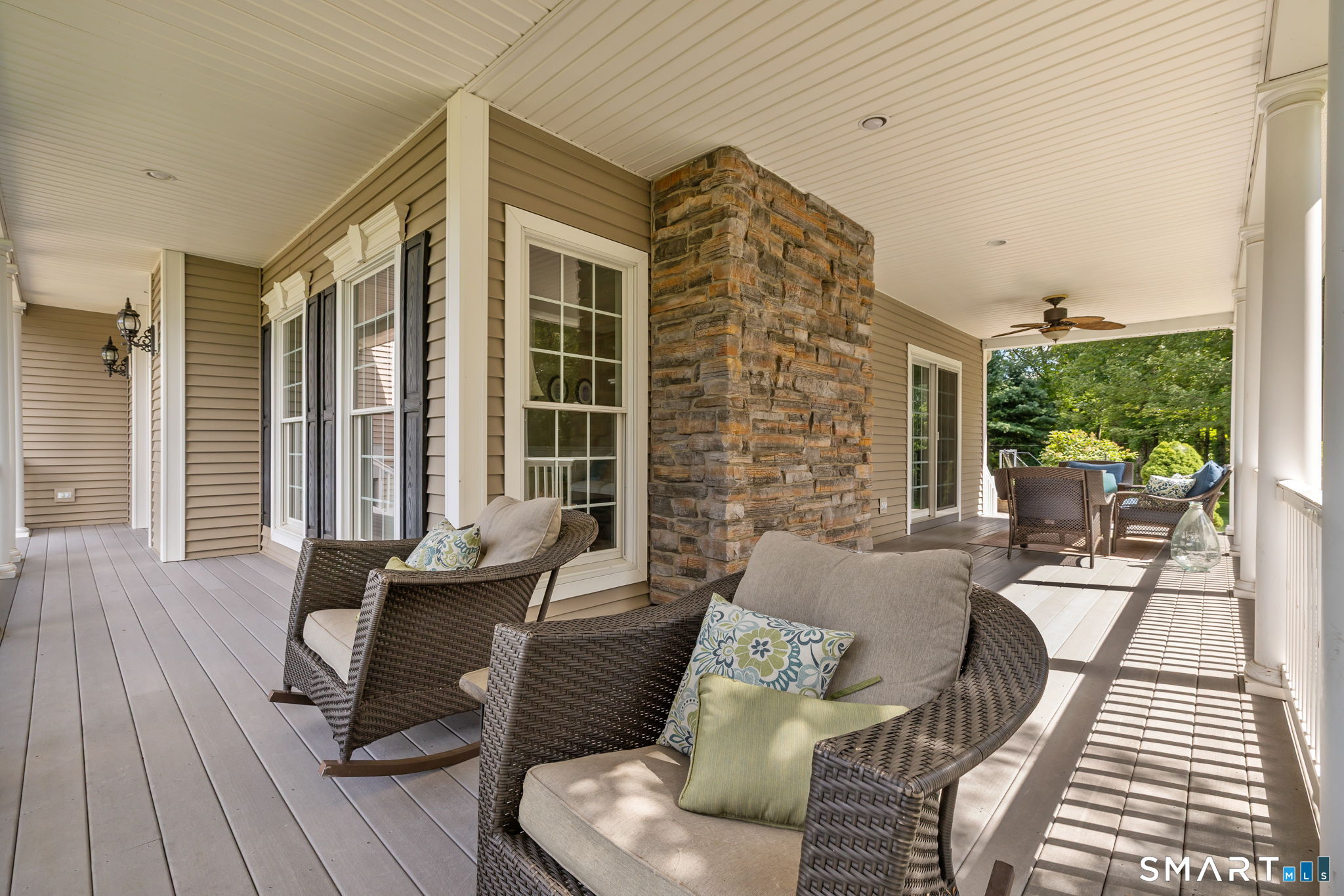 Gorgeous 5 bedroom home in highly desirable Stagecoach Crossing at end of cul de sac! Almost 4 acres of land! Great curb appeal with 10' wide wrap around porch. 2 1/2 car garage. Stunning entryway way is flanked by a 1st floor dedicated office and a comfortable living room with gas fireplace and hardwood flooring. Living room is open to the spacious dining room. Extra large windows all around with views of the wrap around porch and beautiful yard. The kitchen has a spacious bump out that can accommodate a good sized table. So much natural light! Breakfast bar, stainless appliances, tons of cabinets! Open to the family room with custom built ins. A spacious half bath is on this level. Mudroom/second entryway with access to a second staircase. The 2nd floor features a lovely primary bedroom featuring 2 walk in closets and has an attached oversized bathroom with soaking tub, separate shower and double sink vanity. Attached is a versatile room currently used as an exercise room but could be a 2nd office, craft room, sitting room. 4 more spacious bedrooms are on this floor, 2 connected with a jack and jill bath. Additional full bath in the hallway. Separate laundry room with sink and built cabinets and shelving. Perfect for large or extended families. A bonus finished 3rd floor is accessed through a bedroom. This rec room is giant and includes a wet bar! A great space for family and friends! This could be a workout room or large office space. So many options Backyard has so much space for family and friends! Gorgeous expanded patio overlooks the lush yard. Large unfinished basement with 2 entrances from interior as well as garage. Tons of parking in the driveway with plenty of room to park 3 cars comfortably at the top by the garage. Brand new roof 2024, newer a/c condensers, 330 gallon oil tank. Don't miss this immaculate home!