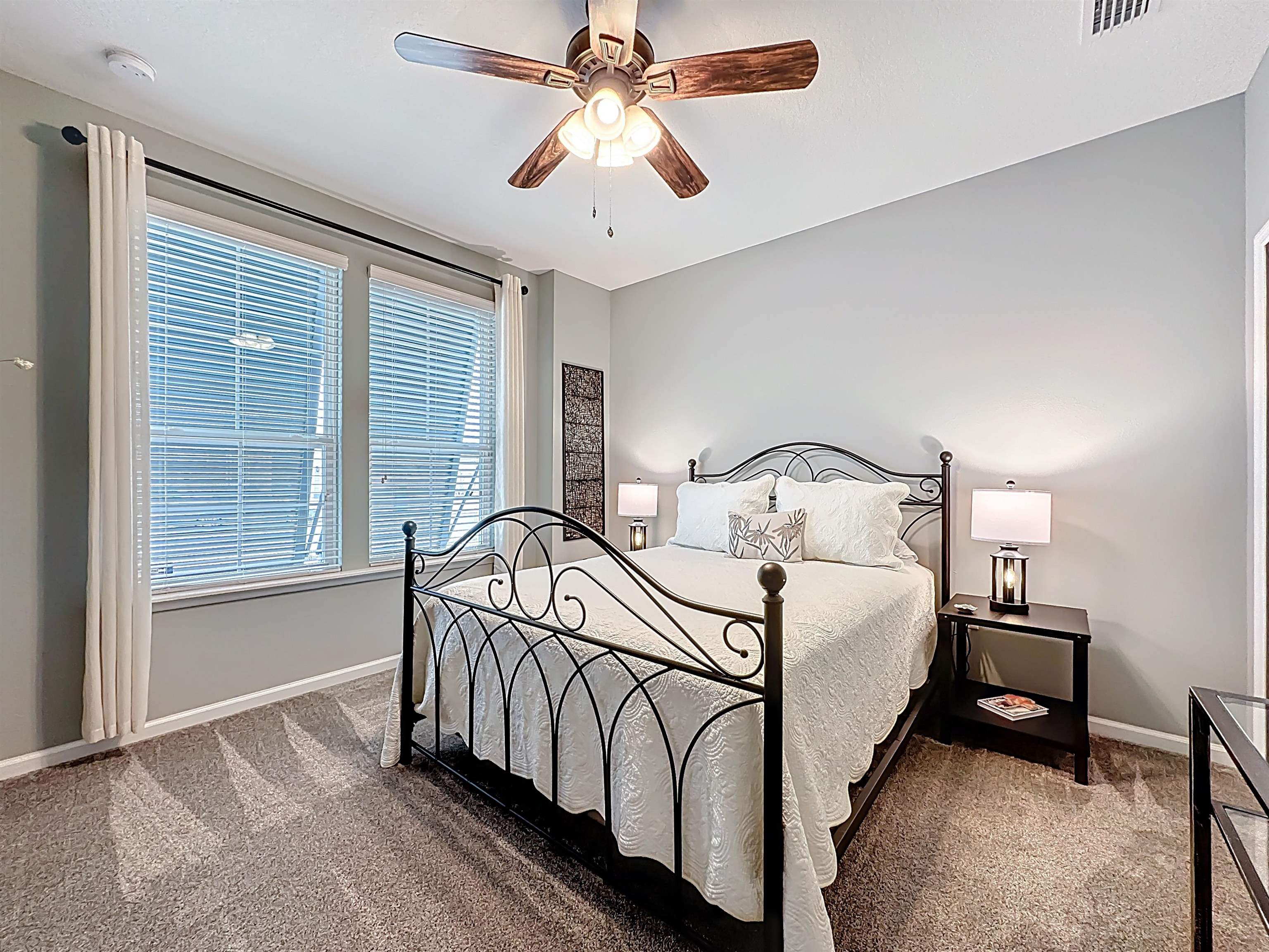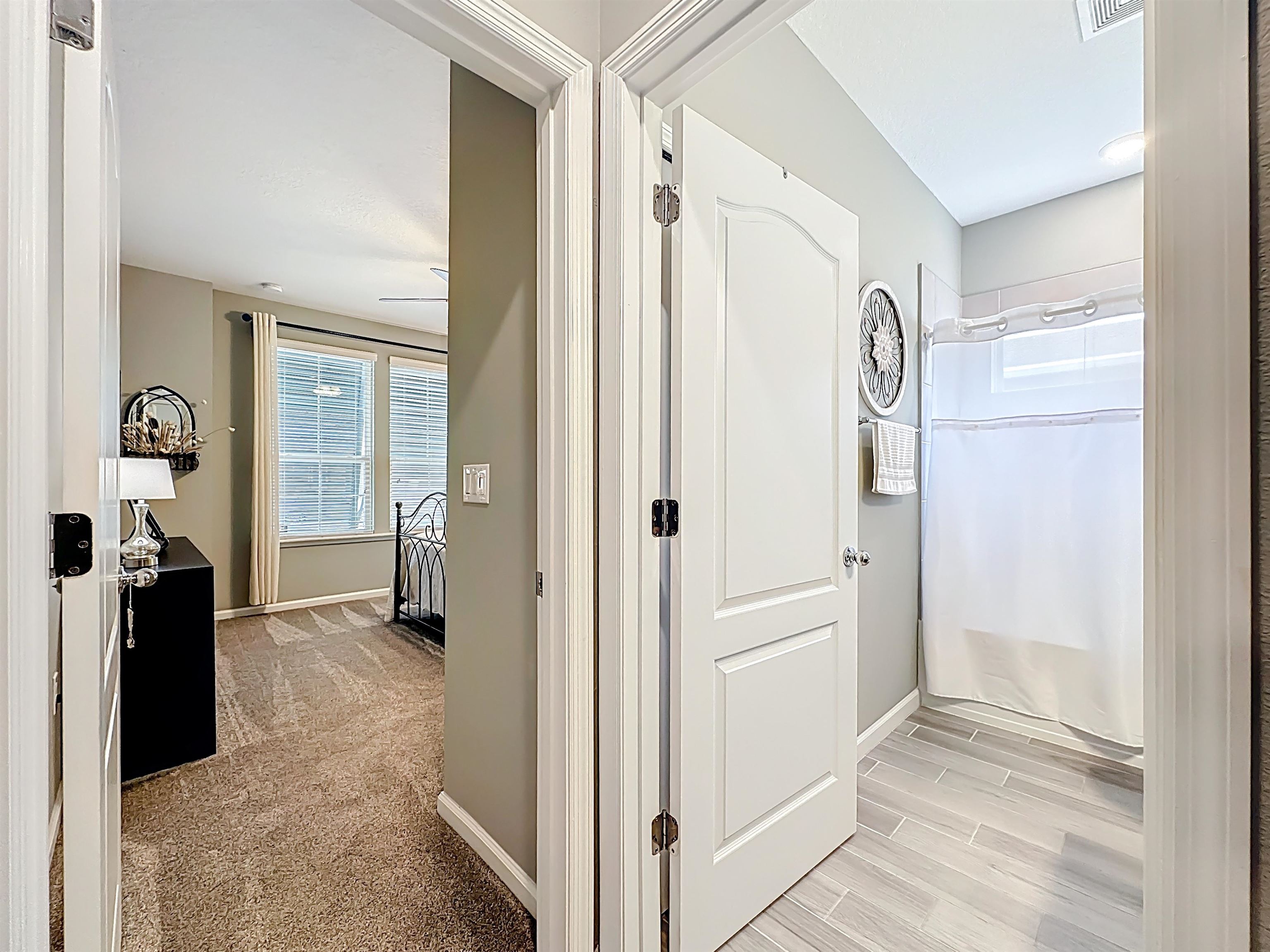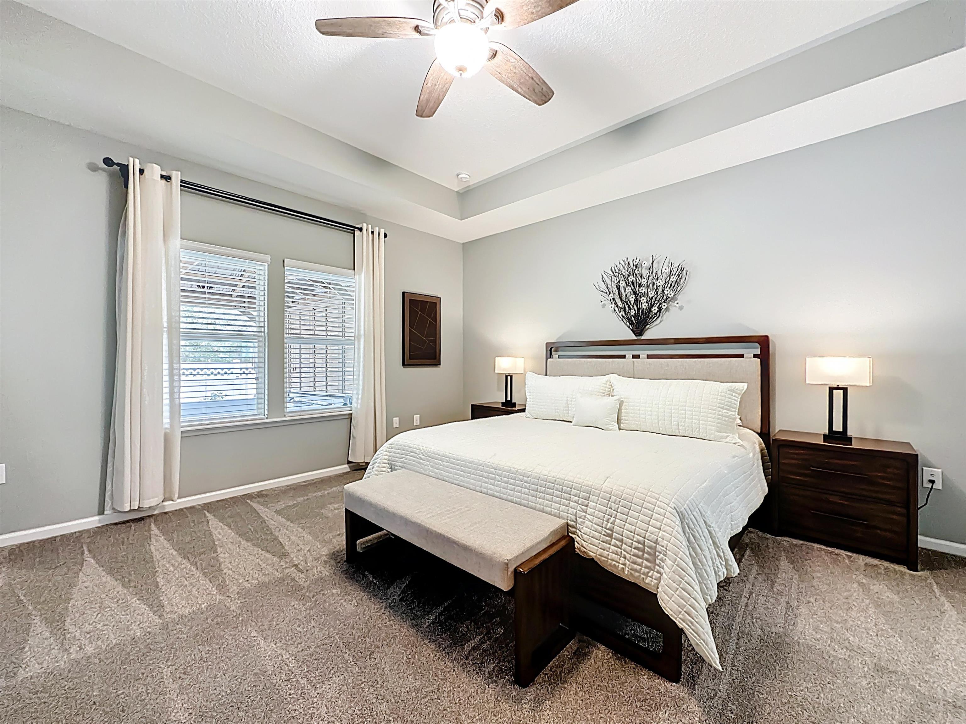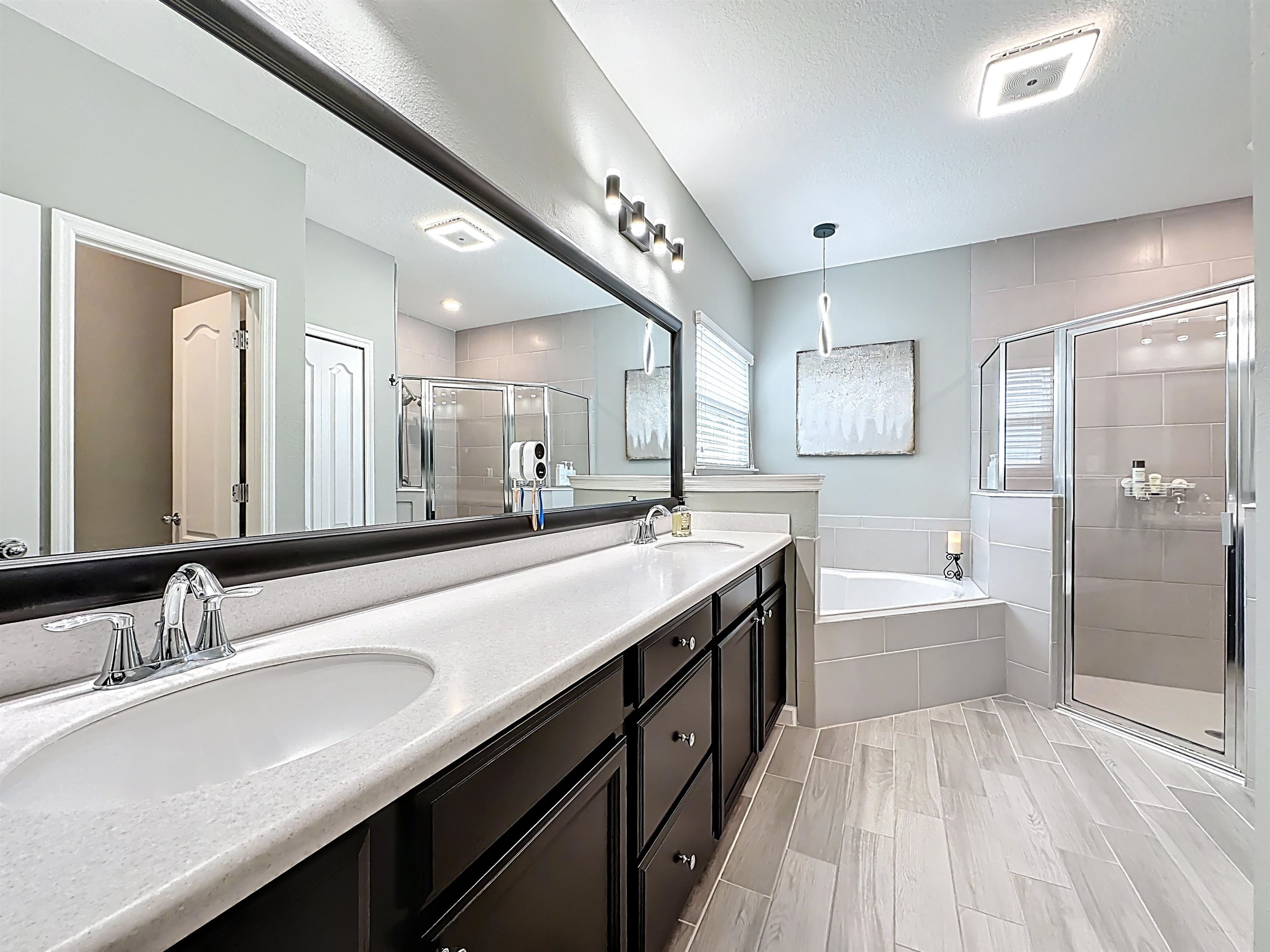 MOVE-IN READY in Desirable Arbor Mill – NO CDD Fees! Welcome to this impeccably maintained 4-bdrm, 2-bath home in the sought-after Arbor Mill community which offers 2, 268 square feet of thoughtfully designed open-concept living space filled with upscale finishes and modern comforts. Elegant wood-plank tile flooring, designer lighting, and seamless flow ideal for both everyday living and entertaining. A gourmet kitchen. . . featuring quartz countertops, stone backsplash, stainless steel appliances, and a large island perfect for gathering and entertaining. The split floor plan provides privacy and flexibility. This spacious primary suite is a true retreat, highlighted by a tray ceiling, large walk-in closet, and a spa-inspired bathroom complete with dual vanities, soaking tub, and separate shower. Bedrooms 2 and 3 are separated by a full bath, while the 4th bedroom, currently used as an exercise room, offers a flex space for an office/bonus rm. Sliding glass doors lead to a 209sf private oasis. . . screen/vinyl-enclosed, heated and cooled Lanai, extending to a beautifully designed paver patio with built-in fire pit and Pergola w/ hot tub — perfect for relaxing evenings or weekend gatherings. Additional exterior upgrades include gemstone lighting, a paver driveway, and a fully fenced backyard. This community offers amazing amenities, including clubhouse, pool, playground, sports field, dog park/walk area, and more. . .