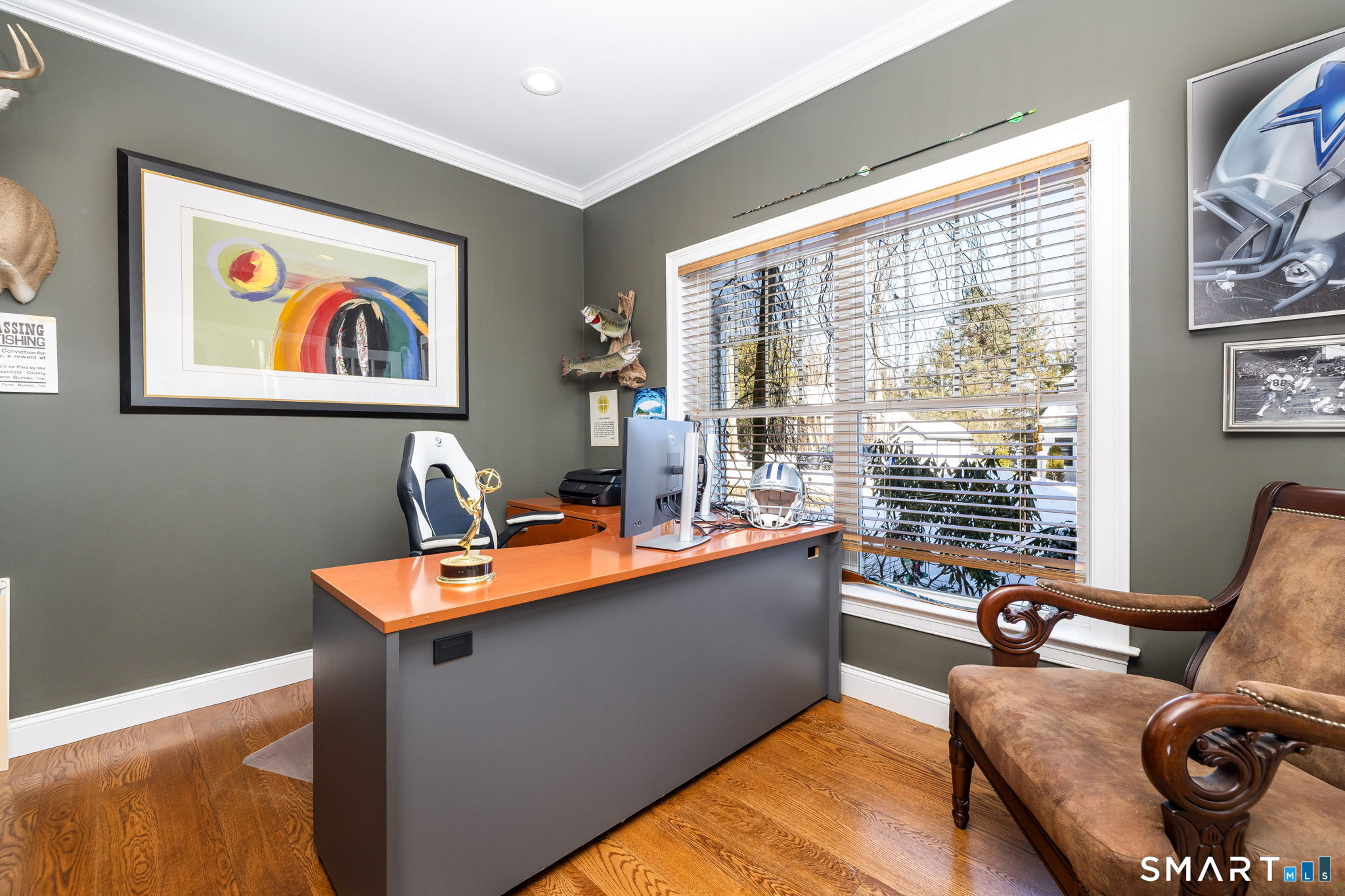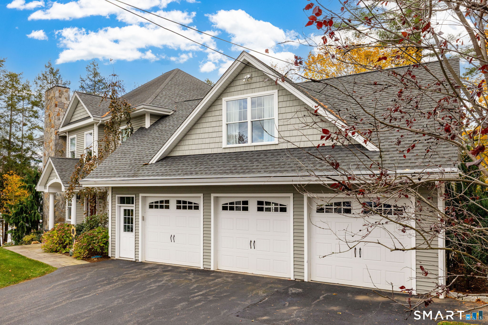 Situated in the glorious Deer Island Community of Bantam Lake, this beautiful three-bedroom home offers great space for everyday living and entertaining. The heart of the home is the main level, boasting a magnificent chef's kitchen complete with stainless steel appliances, a gas range, granite countertops, a breakfast bar, and a bright breakfast room. This culinary space flows seamlessly into an inviting turret dining room, perfect for hosting, and a great room featuring a soaring ceiling, a cozy fireplace, and a ceiling fan. Completing this level are a private office with elegant French doors, a convenient half bath, and a mudroom, all unified by beautiful hardwood flooring throughout. Upstairs, the residence transitions into a private sanctuary. The luxurious primary bedroom suite is a highlight, featuring a distinctive turret sitting room, a spacious walk-in closet, and a full bath with a private water closet. A slider from the suite offers access to a private deck. This floor also hosts two additional guest bedrooms with ceiling fans, a full guest bath, a dedicated laundry room, and a recreation room finished with wall-to-wall carpeting. The partially finished lower level extends the living space, offering a spacious family room with a second fireplace and an additional full bath, all carpeted for comfort. For convenience, the property includes an attached three-car garage. Outside, the grounds are equally impressive, featuring elegant stonewalls, a serene water feature, a charming koi pond and a relaxing hot tub. Enjoy all that the Deer Island Community has to offer including tennis, swimming, fishing and boating.