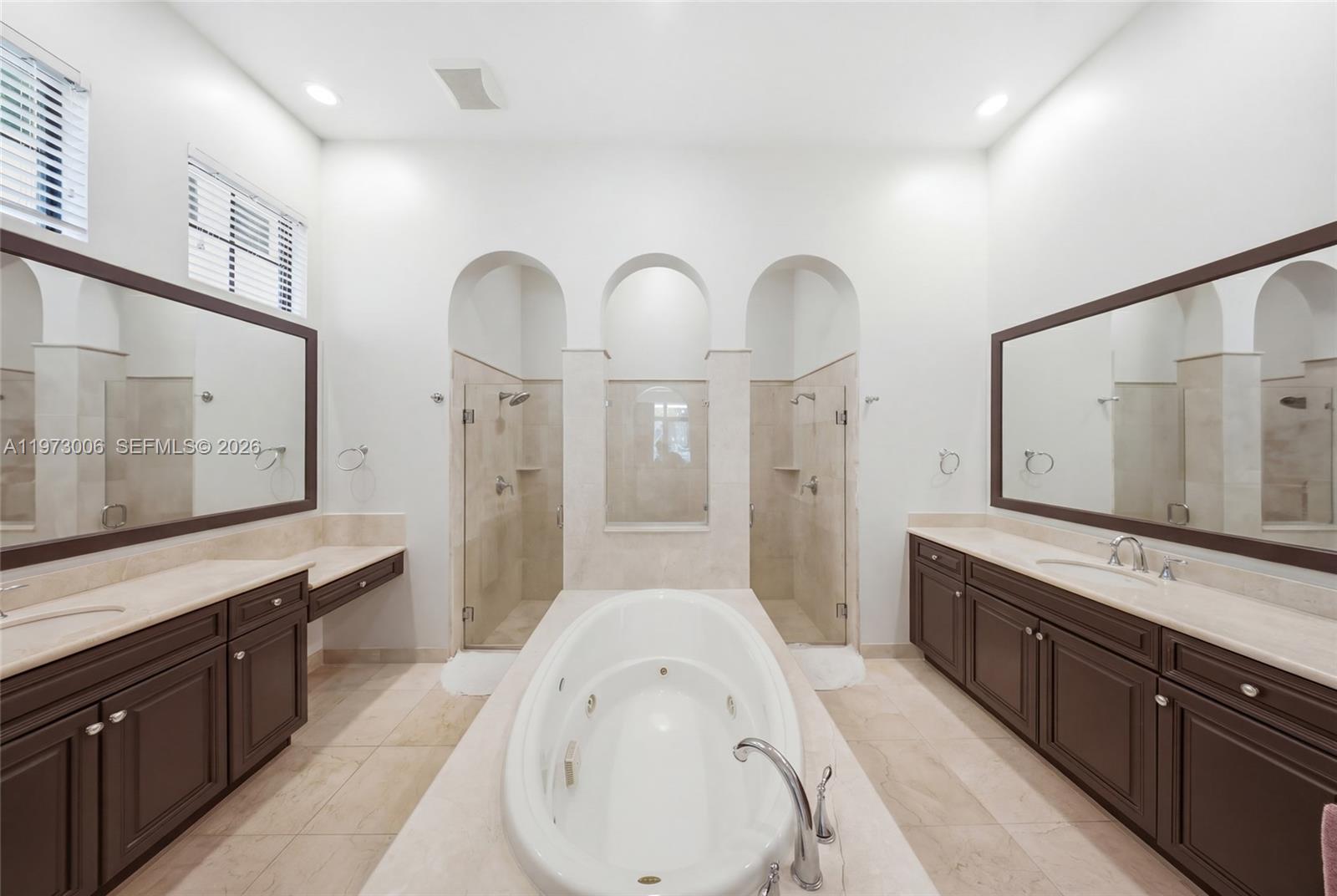 Tub, Large Dual Shower W/Frameless Enclosure, Dual Vanities. Recessed Lighting, Volume Ceilings, Upgraded Rod