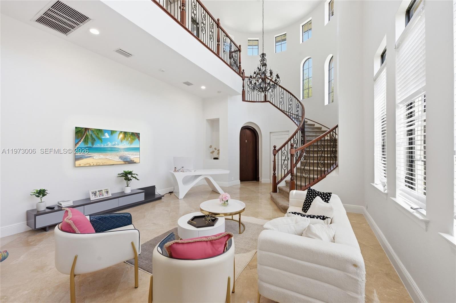 Iron/Wood Banister, Open Living Room, Dining Room, Family Room & Powder, Room. Granite Custom Kitchen
