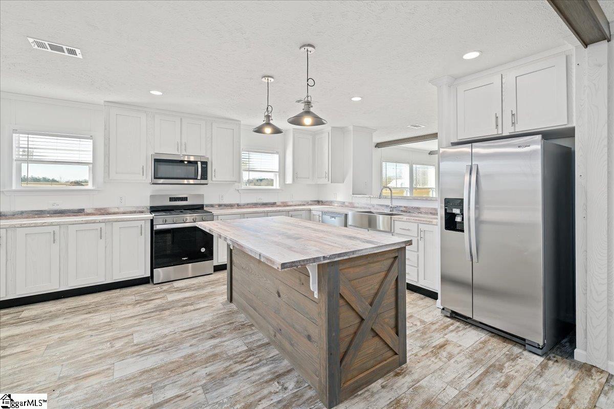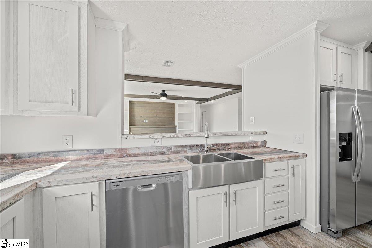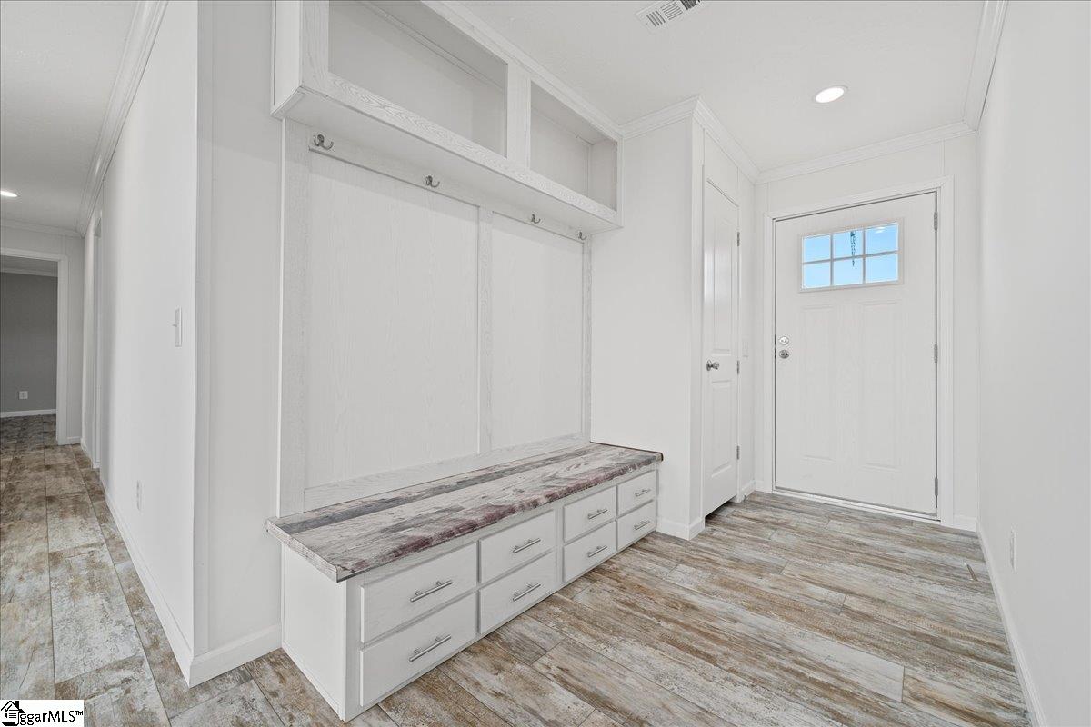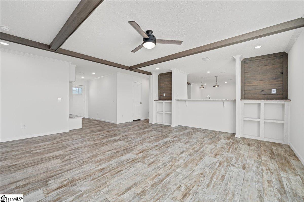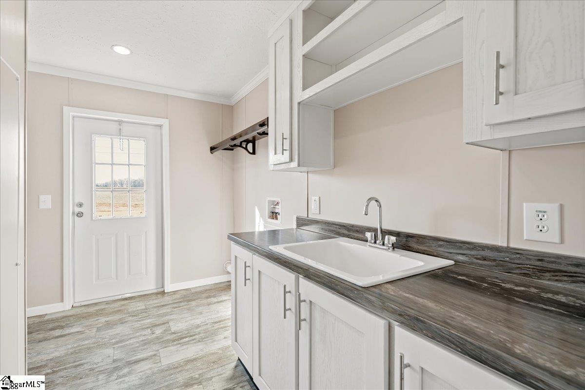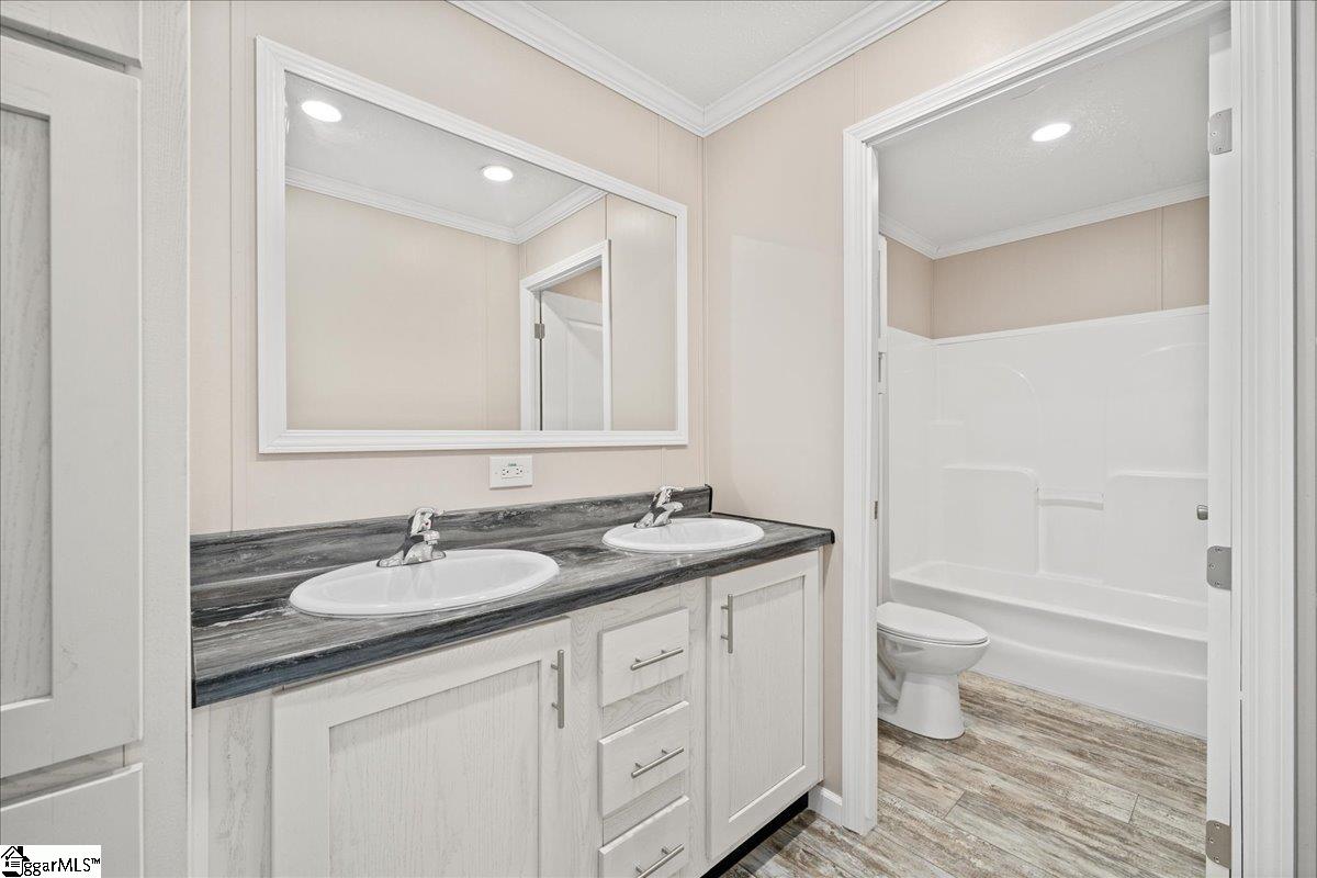 Brand new, fully customized, and sitting on . 60 acres with beautiful views of pasture land across the street — this Bravo Ruby is anything but ordinary. Offering 2, 280 finished square feet, 4 bedrooms, & 2 bathrooms, this move-in-ready home combines modern design, built-ins throughout, & is less than 6 miles to I-85 for an easy commute. From the moment you step into the entryway, you’ll notice the thoughtful customization. A built-in drop zone features a coat rack with shelving, drawers, & beadboard accents — blending style & everyday function. The spacious living area offers room for oversized sectional seating & showcases a built-in entertainment center with an electric fireplace, creating a cozy focal point. Recessed LED lighting & overhead ductwork add a clean, modern finish throughout the home. The kitchen is truly the heart of this home — with cabinets & counter space galore. You’ll love the extra-deep sink, soft-close cabinetry, wide coffee and serving bar, freestanding center island, & a generous pantry for added storage. The open layout allows clear sightlines into the living room, making it ideal for gatherings. There’s also plenty of space for a large dining table. The private primary suite is a showstopper. The massive walk-in closet features built-in cabinetry & is large enough to feel like an additional room. The en-suite bath includes a deep soaker tub, extra-wide fiberglass shower with glass door, elongated toilets, & double china sinks. On the opposite side of the home, three additional bedrooms share a well-designed guest bath complete with double sinks & a separate private toilet area — perfect for busy mornings. An oversized laundry room with cabinetry & a utility sink adds even more convenience. This home will be de-titled at closing, making it eligible for 100% USDA financing or FHA loans, & is completely move-in ready. With peaceful views, thoughtful upgrades, & an unbeatable combination of space and accessibility, this property truly stands out.