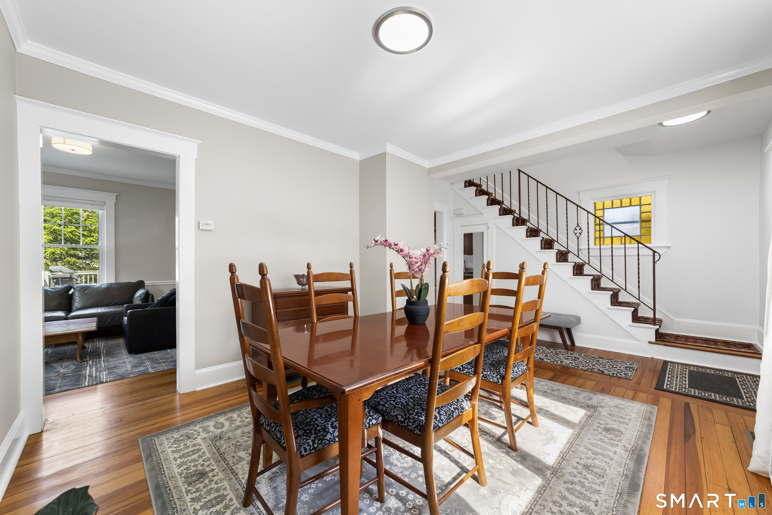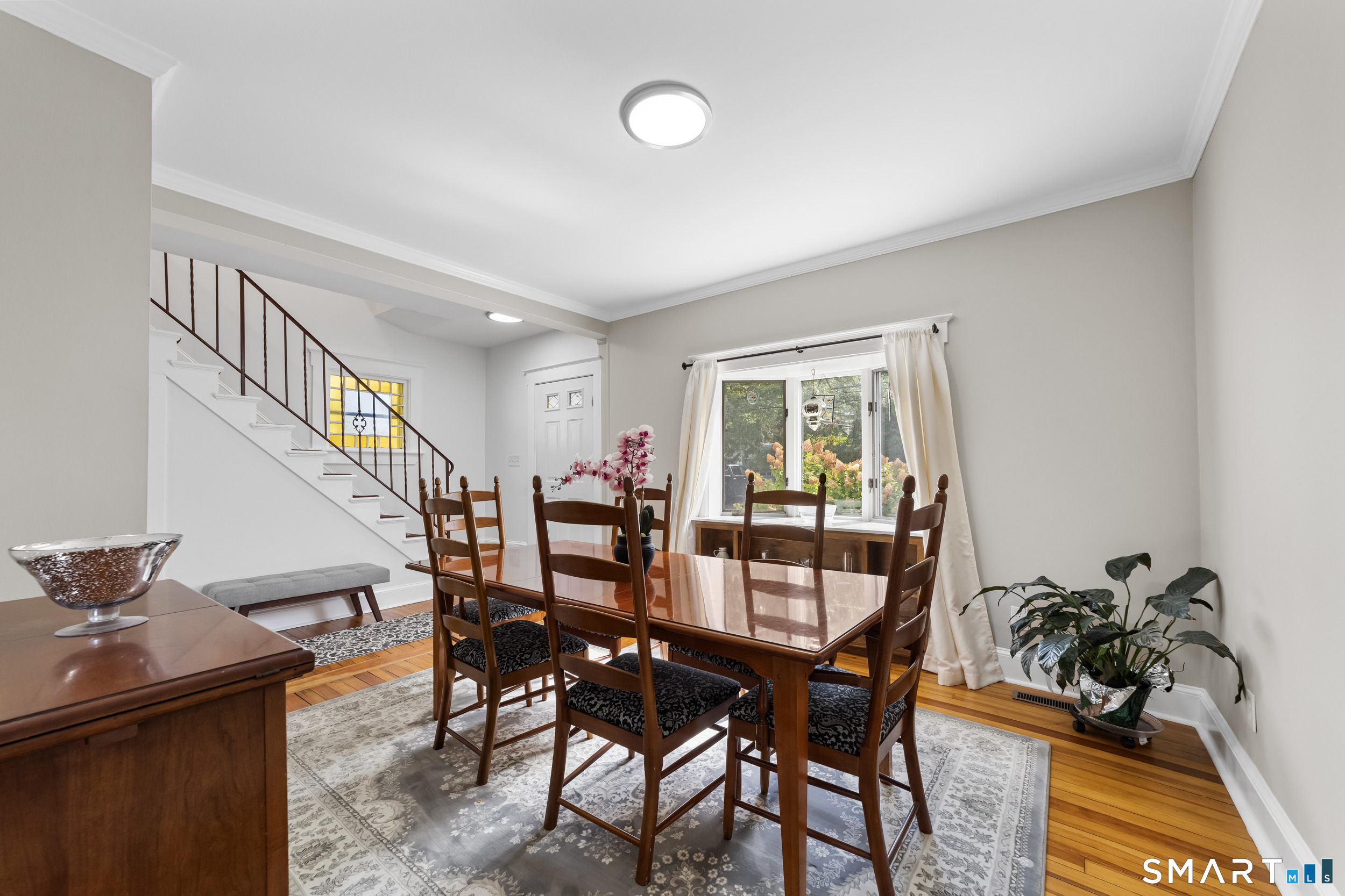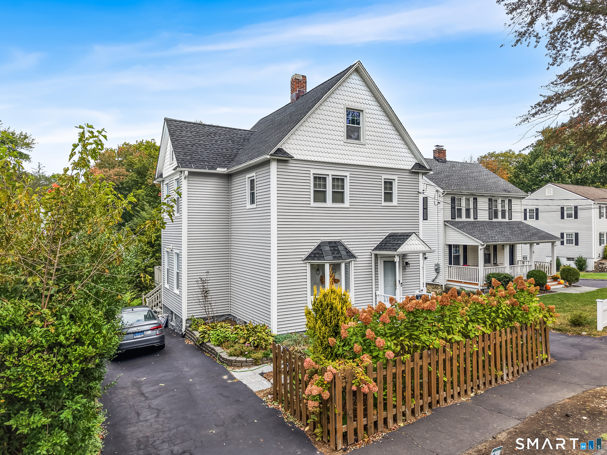 Prime Darien location offering easy access to the Noroton Heights train station, everyday shopping, and public beaches. This charming, older 3-bedroom, 2-full-bath Colonial blends classic character with practical modern updates. Interior features include high ceilings, central air, classic moldings, and hardwood floors throughout. The home has been updated with newly renovated bathrooms, refreshed bedrooms, and an eat-in kitchen fitted with new appliances and soft-close cabinetry. A spacious mudroom sits directly off the kitchen for convenient everyday storage. Exterior features include an inviting deck overlooking a private, level backyard. Detached one car garage and ample driveway parking.