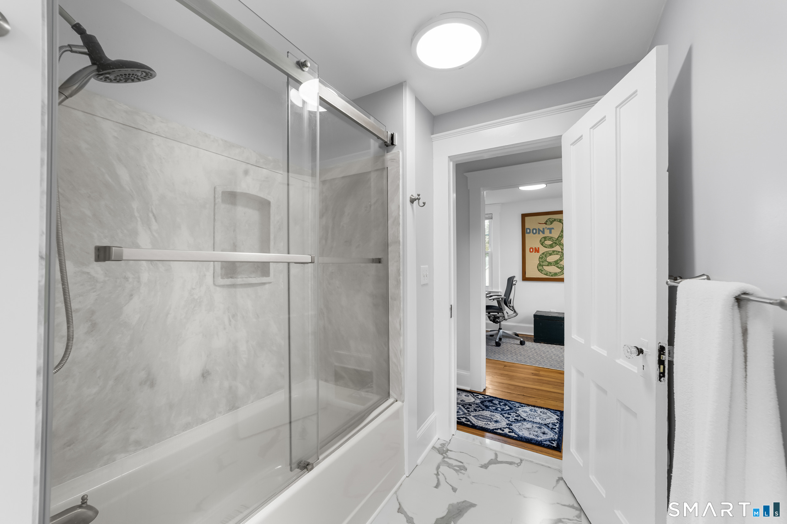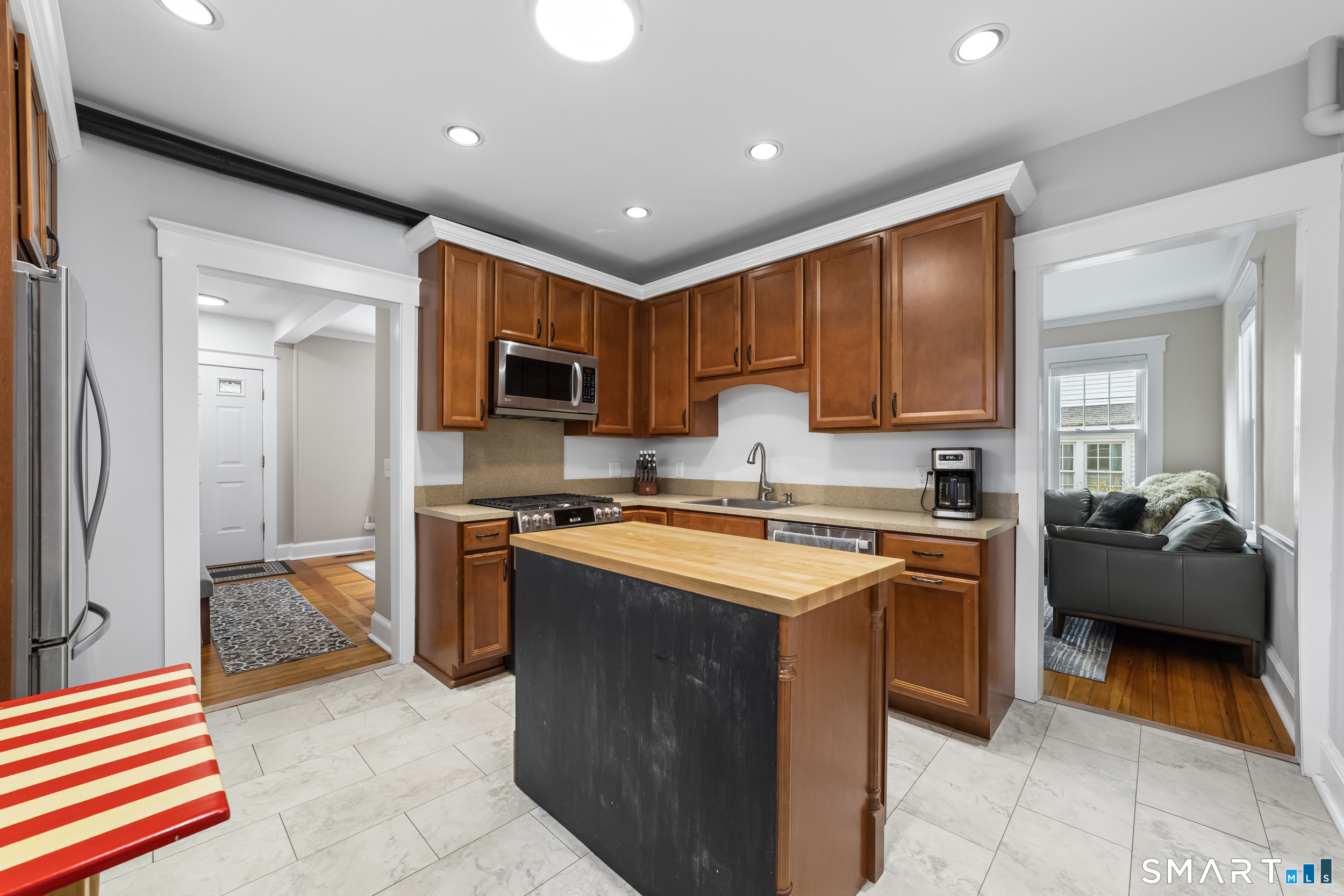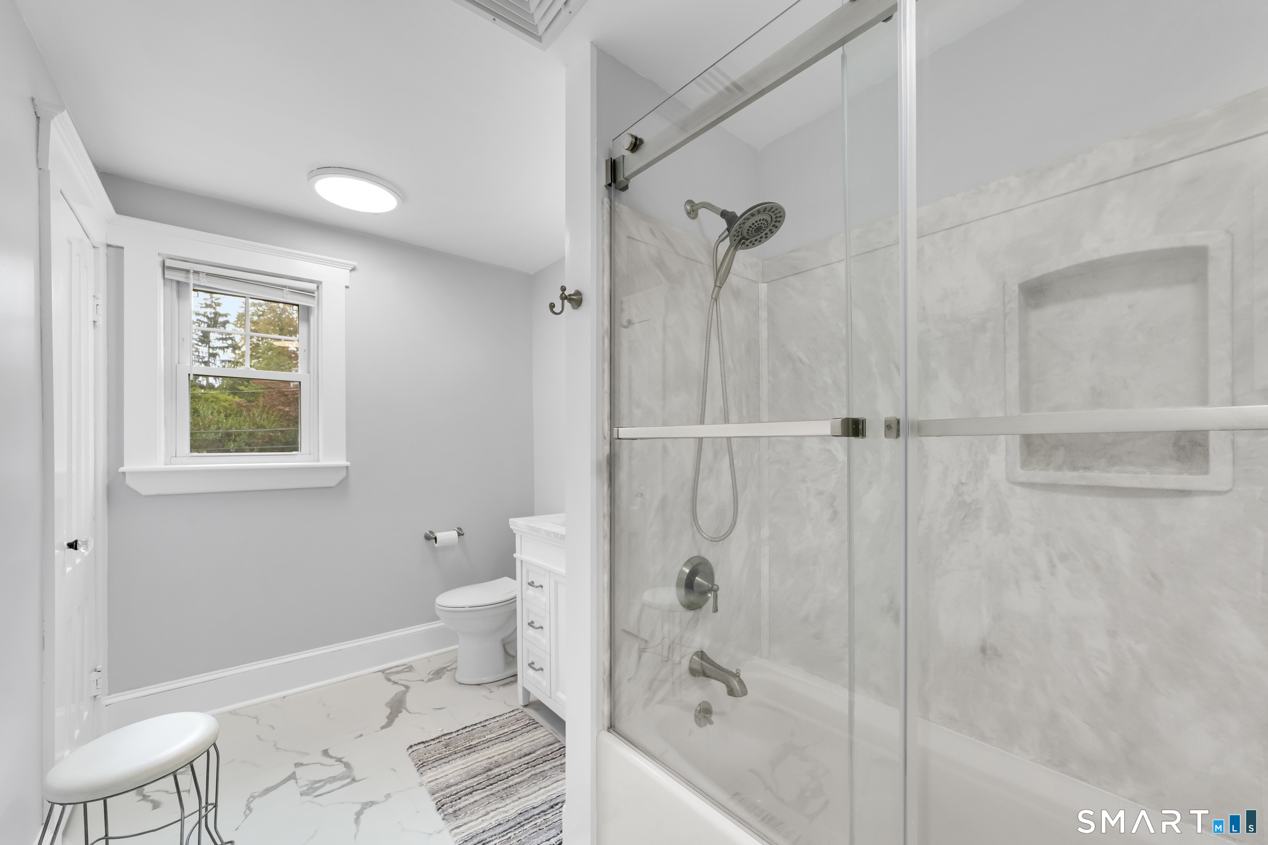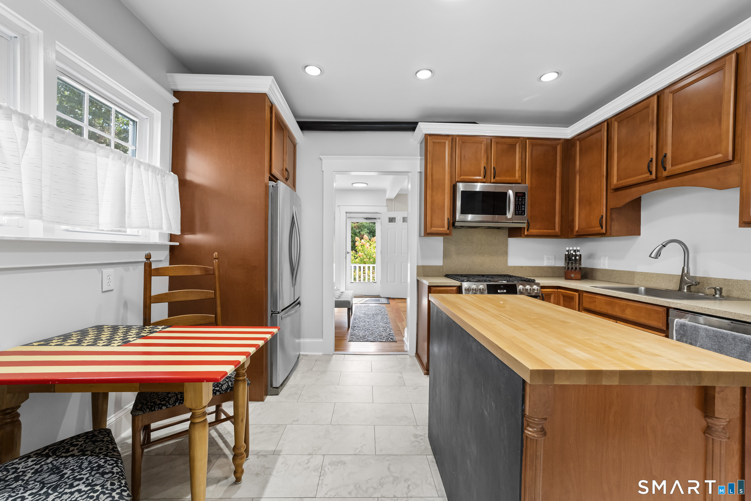 Prime Darien location offering easy access to the Noroton Heights train station, everyday shopping, and public beaches. This charming, older 3-bedroom, 2-full-bath Colonial blends classic character with practical modern updates. Interior features include high ceilings, central air, classic moldings, and hardwood floors throughout. The home has been updated with newly renovated bathrooms, refreshed bedrooms, and an eat-in kitchen fitted with new appliances and soft-close cabinetry. A spacious mudroom sits directly off the kitchen for convenient everyday storage. Exterior features include an inviting deck overlooking a private, level backyard. Detached one car garage and ample driveway parking.