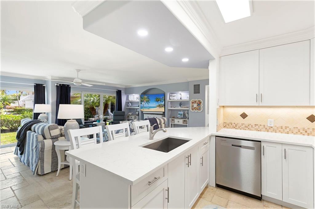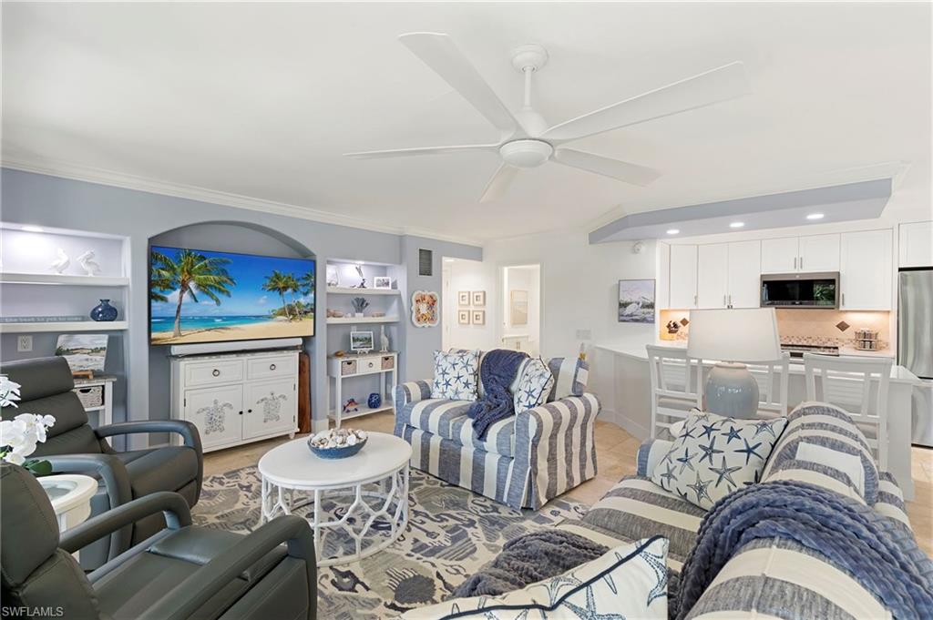 An exceptional opportunity awaits in Ville de Marco — a community of 100 residences where only eight were designed as double units. Even more compelling, just two are currently available, making this offering one of the rarest ownership opportunities in the entire complex. This beautifully reimagined 2-bedroom, 2-bath residence has been completely renovated with an emphasis on quality craftsmanship, functionality, and refined coastal style. The redesign enhances natural light and optimizes every inch of interior space. Improvements include impact-resistant windows, doors, and sliders; custom-designed kitchen cabinetry; upgraded appliances; elegant crown molding; plantation shutters; and the convenience of a private in-unit laundry area. Thoughtfully integrated bunk accommodations provide additional flexibility for guests or extended stays. The location within the community is a true advantage. Positioned on the quieter side of the property, the residence enjoys a more peaceful setting, away from evening restaurant activity, while still being just a short distance to Marco Island’s popular waterfront dining and local favorites. It’s a balance that truly enhances everyday living. Set along the scenic Marco River, the lifestyle here is what island dreams are made of. Enjoy frequent dolphin sightings, cast a line from the community fishing pier, gather at the waterfront clubhouse, or lease a boat slip and head out to explore the Gulf waters at your convenience. Whether you’re searching for a personal island retreat, a seasonal residence, or an income-producing investment, this distinctive double unit combines rarity, location, and lifestyle in one of Marco Island’s most charming waterfront settings.