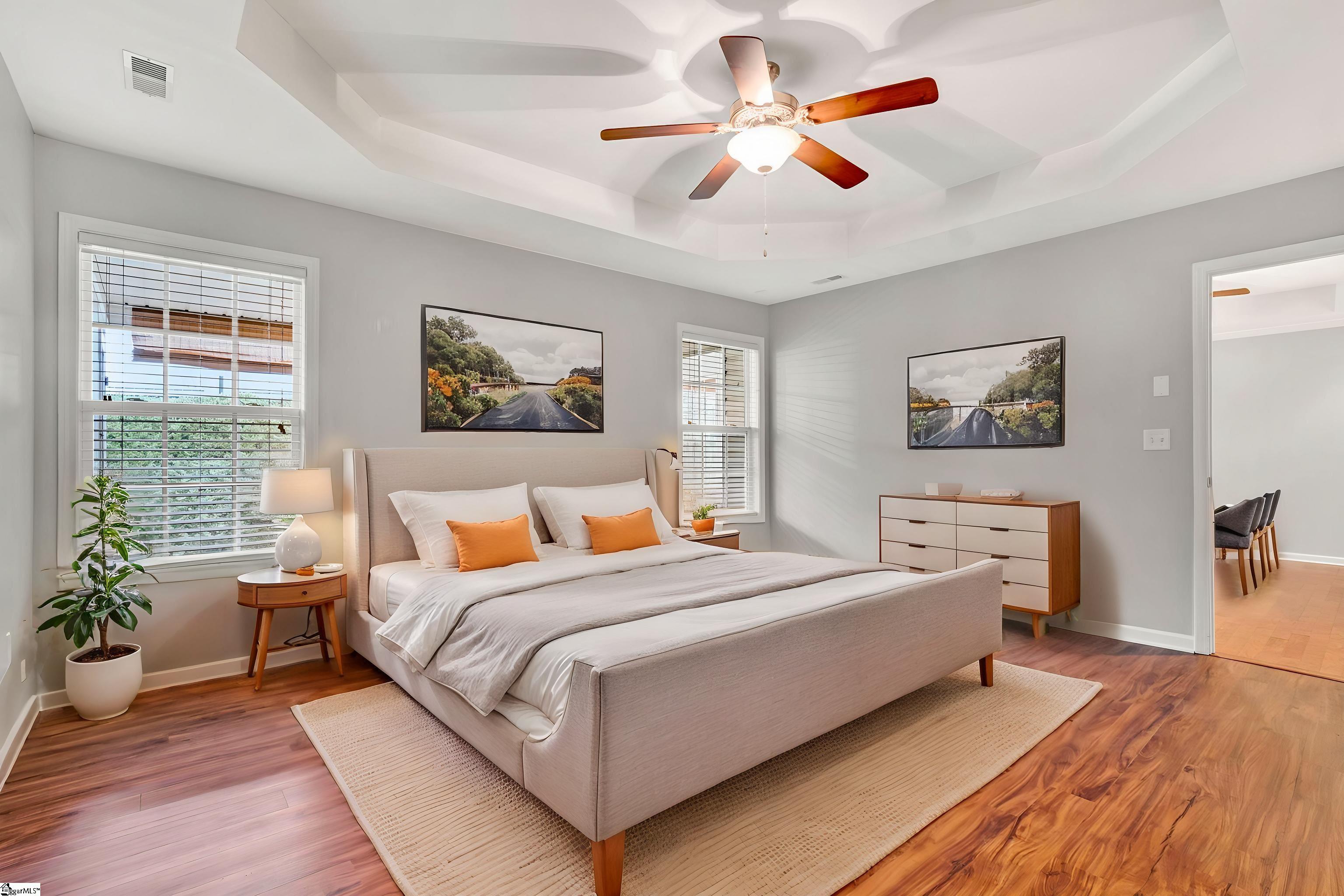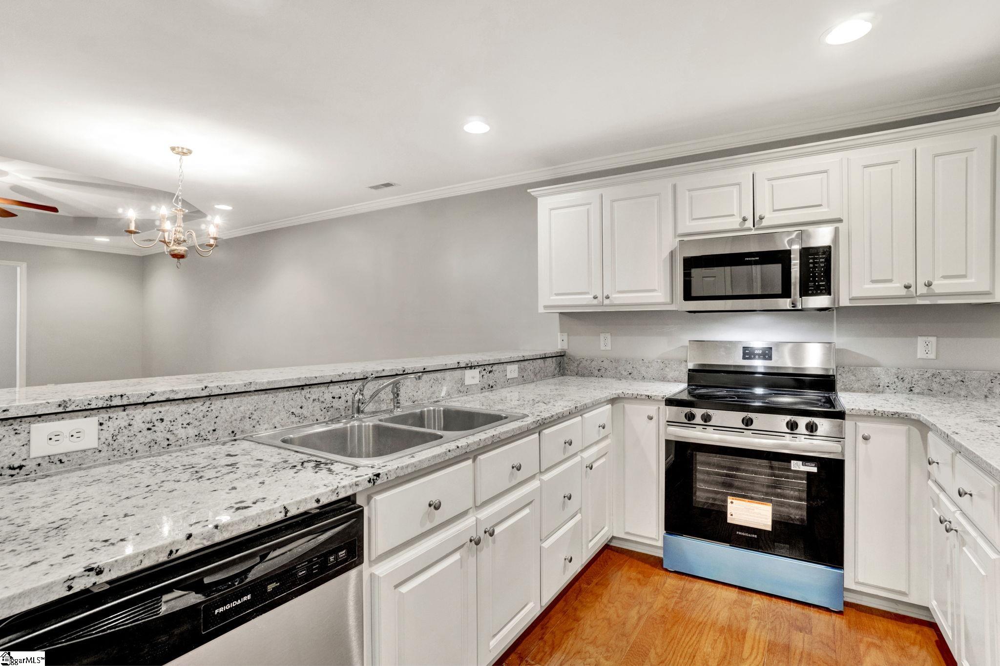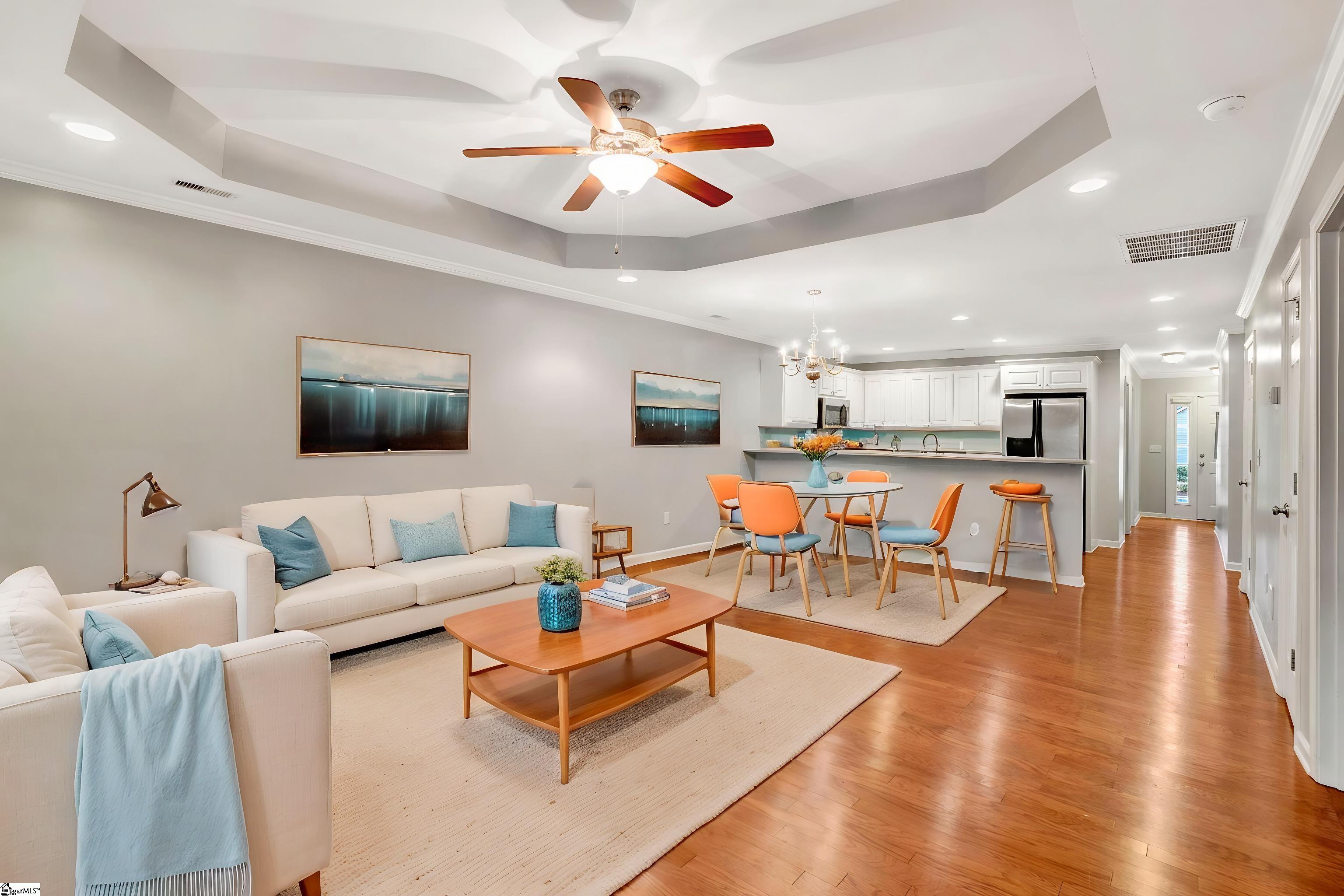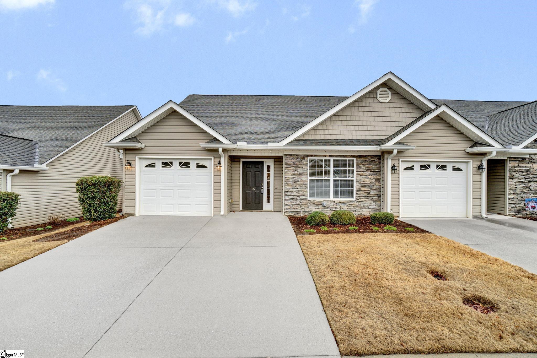 Looking for a home that stands out from the inventory crowd? This one delivers, not just with beautiful updates, but with true lifestyle advantages. Enjoy peace of mind with an HOA that goes far beyond basic lawn care. Exterior maintenance and landscaping are included, and the bylaws cover the repair, replacement, and care of roofs, gutters, downspouts, soffits, fascia, siding, trim, and even garage coach lights. That means less to worry about and more time to enjoy life. Even better, the parking lot was recently re-asphalted at no cost to homeowners, a valuable improvement already taken care of for you. Inside, updated floors, countertops, and appliances give the home a fresh, move-in ready feel. The open-concept living room, dining area, and kitchen flow beautifully together, offering generous flexibility for furniture placement and entertaining. The well-equipped kitchen features abundant cabinet and counter space, plus a peninsula large enough for barstools. It is perfect for casual dining or gathering with friends. The primary suite is conveniently located on the main level and showcases a trey ceiling, walk-in closet, and a spacious bath with soaking tub, separate shower, and double sinks. A second main-level bedroom, full bath, and laundry room add everyday convenience. One of the standout features is the bright sunroom just off the great room which could be ideal for a home office, reading nook, playroom, or formal dining space. It’s flexible square footage that truly sets this home apart. Upstairs, you’ll find a private third bedroom with a full bathroom. This is an incredible setup for guests, multigenerational living, a media room, or a dedicated hobby space. This upper-level retreat adds both value and versatility that’s hard to find at this price point. Relax on the screened porch with your morning coffee or unwind in the evening with a little bird watching. With exterior maintenance handled for you, weekends are yours again. Located just minutes from downtown Simpsonville’s shopping and dining, with easy access to I-385, Greenville, and Woodruff Road, this property is perfectly positioned for convenience. Whether you’re looking for an affordable primary residence or a strong investment opportunity in a desirable area, this is a rare find. Call today to schedule your showing today! This gem won’t last long.